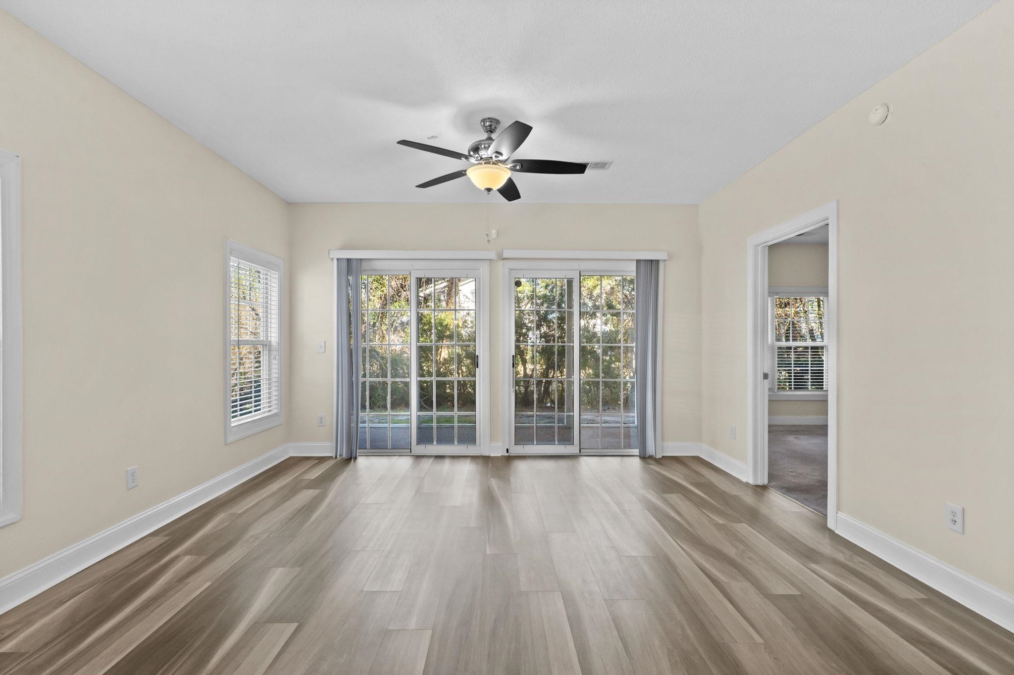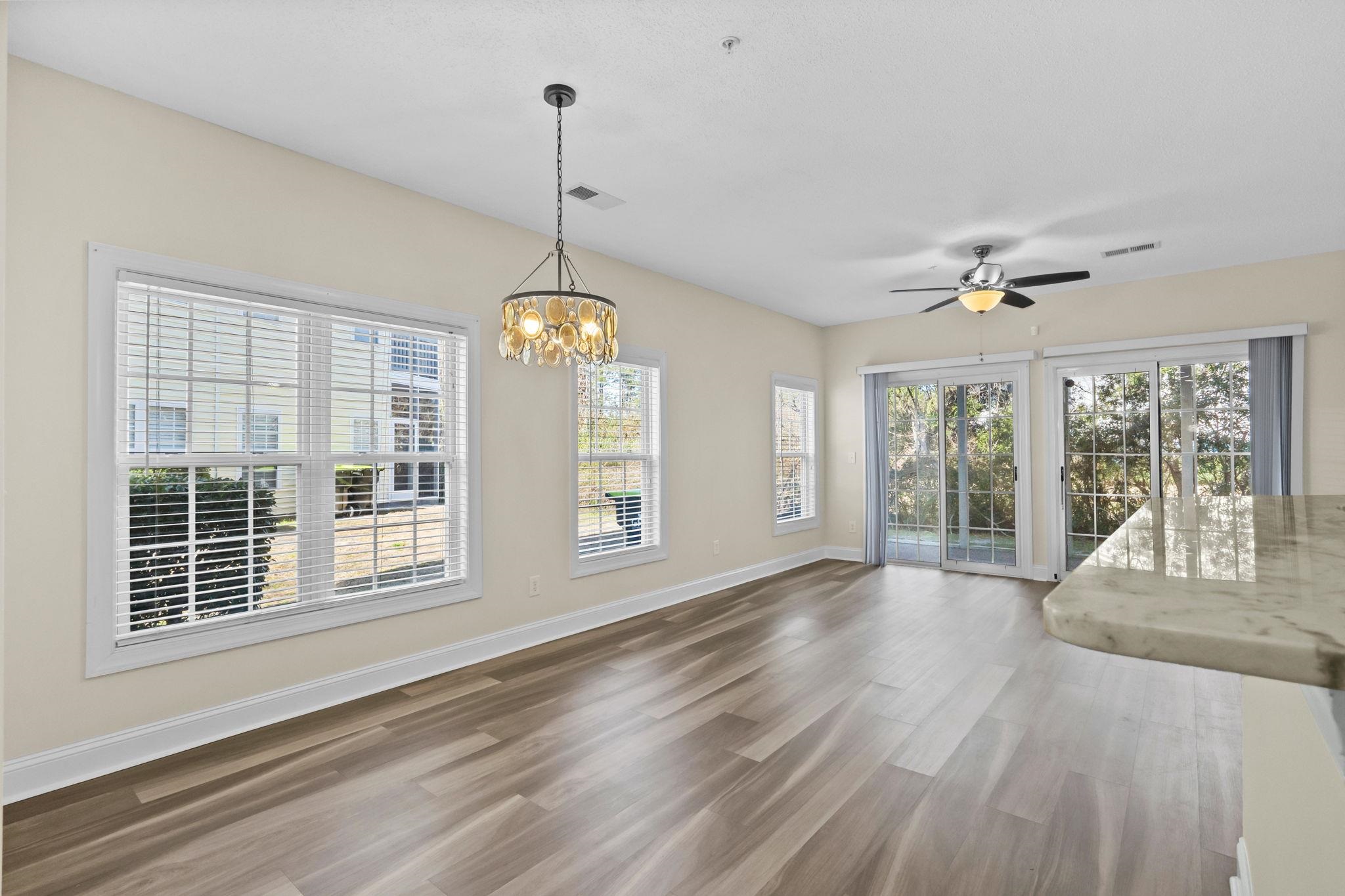 Beautifully updated first-floor corner unit located in a gated community just minutes from all that Myrtle Beach has to offer. This move-in ready condo features new flooring, warm neutral tones, and an open-concept floor plan with abundant natural light. The kitchen includes granite countertops, subway tile backsplash, stainless steel appliances, and a spacious adjacent laundry room with additional storage. The split-bedroom layout provides privacy, with two guest bedrooms and walk-in closets positioned at the front of the unit. The primary suite offers a walk-in closet, private bath with a beautifully upgraded tile shower, and direct access to the screened porch. Enjoy a peaceful wooded backdrop from the oversized screened porchideal for relaxing outdoors. Additional features include attached exterior storage and assigned parking spot just steps away from the unit for easy access. Conveniently located near Coastal Carolina University, Horry-Georgetown Technical College, and Conway Medical Center, and just a short drive to the beach, shopping, dining, and all of the entertainment Myrtle Beach has to offer. Square footage is approximate and not guaranteed. Buyer responsible for verification.
