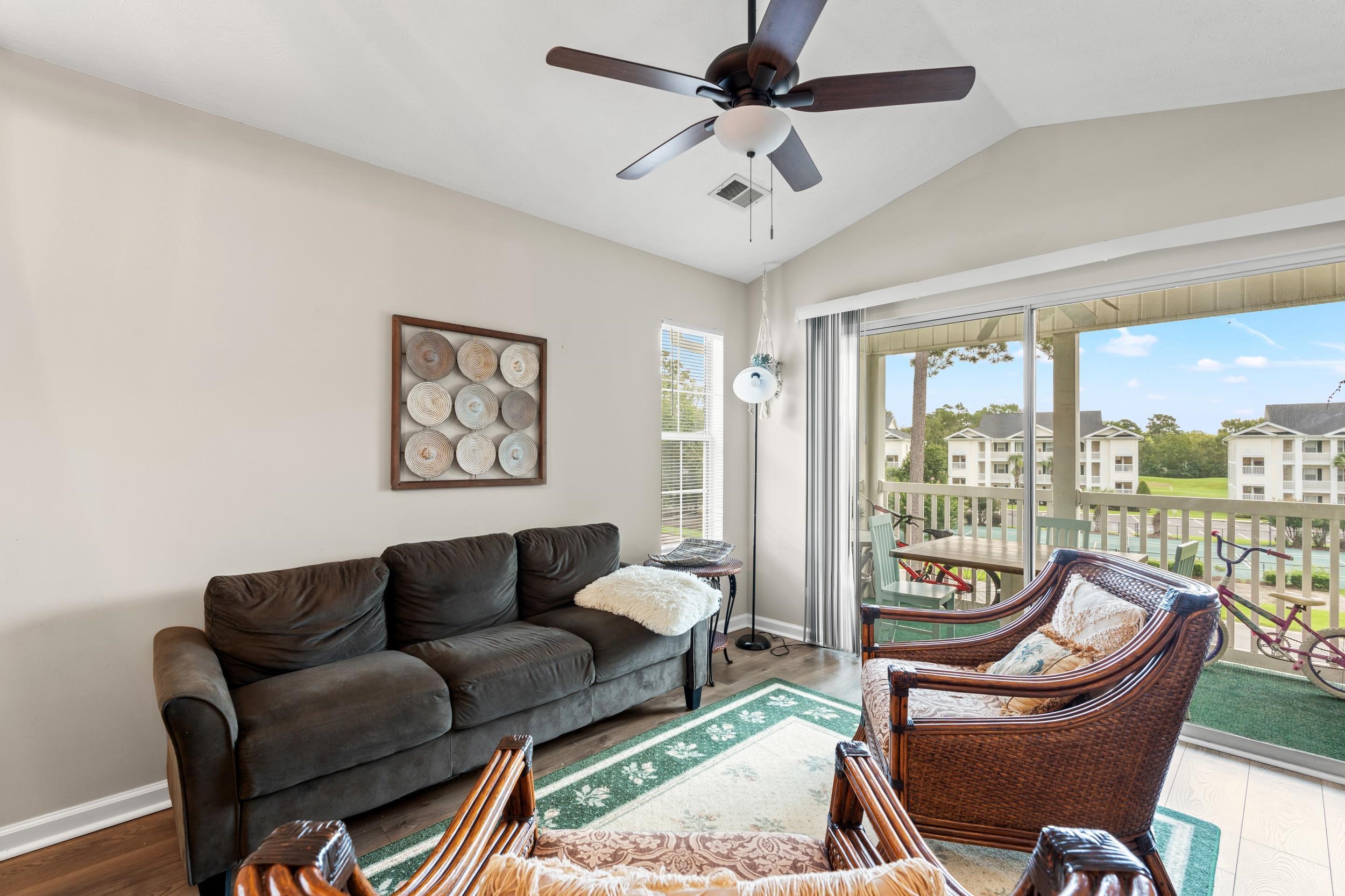 FULLY FURNISHED | INCOME-READY OPPORTUNITY | RIVER OAKS A rare opportunity in River Oaks, this beautifully maintained condo is being sold fully furnished and is ready for its next chapter whether as a primary residence, vacation retreat, or turnkey investment property. A tenant is currently in place on a month-to-month lease and would love to stay, offering immediate rental income potential for investors. This property is also well-suited for a 1031 Exchange. Inside, youll find updated laminate and designer tile flooring, granite countertops, decorative backsplash, stainless steel appliances, and a convenient breakfast bar perfect for casual dining. Both bathrooms feature modern vanities with oil-rubbed bronze finishes, creating a cohesive and updated feel throughout. The open-concept living and dining area flows seamlessly onto a private screened-in balcony the perfect space to enjoy your morning coffee or unwind after a long day. All major furnishings convey (excluding tenants personal belongings), along with a full-size washer and dryer for added convenience. Residents of River Oaks enjoy access to community pools, tennis courts, and walking paths, all just minutes from shopping, dining, medical facilities, and aprox. 4.5 miles to the ocean. Schedule your private showing today and explore the possibilities this property offers.