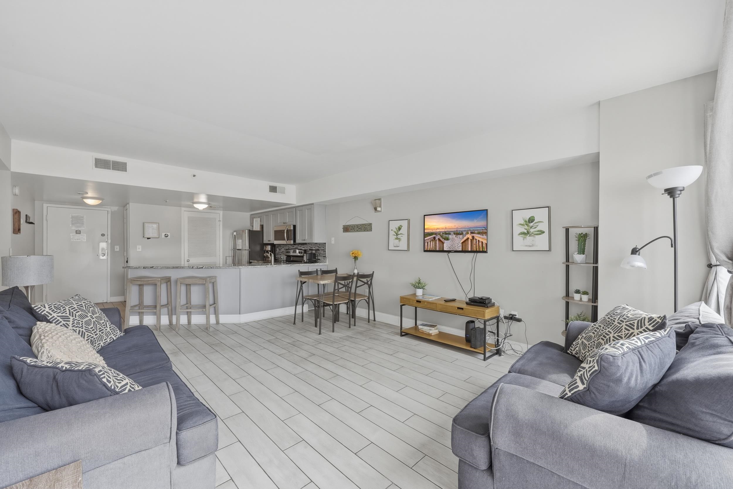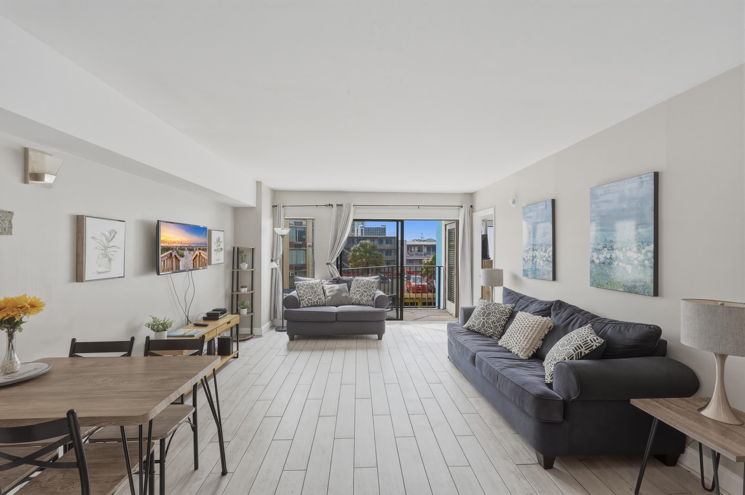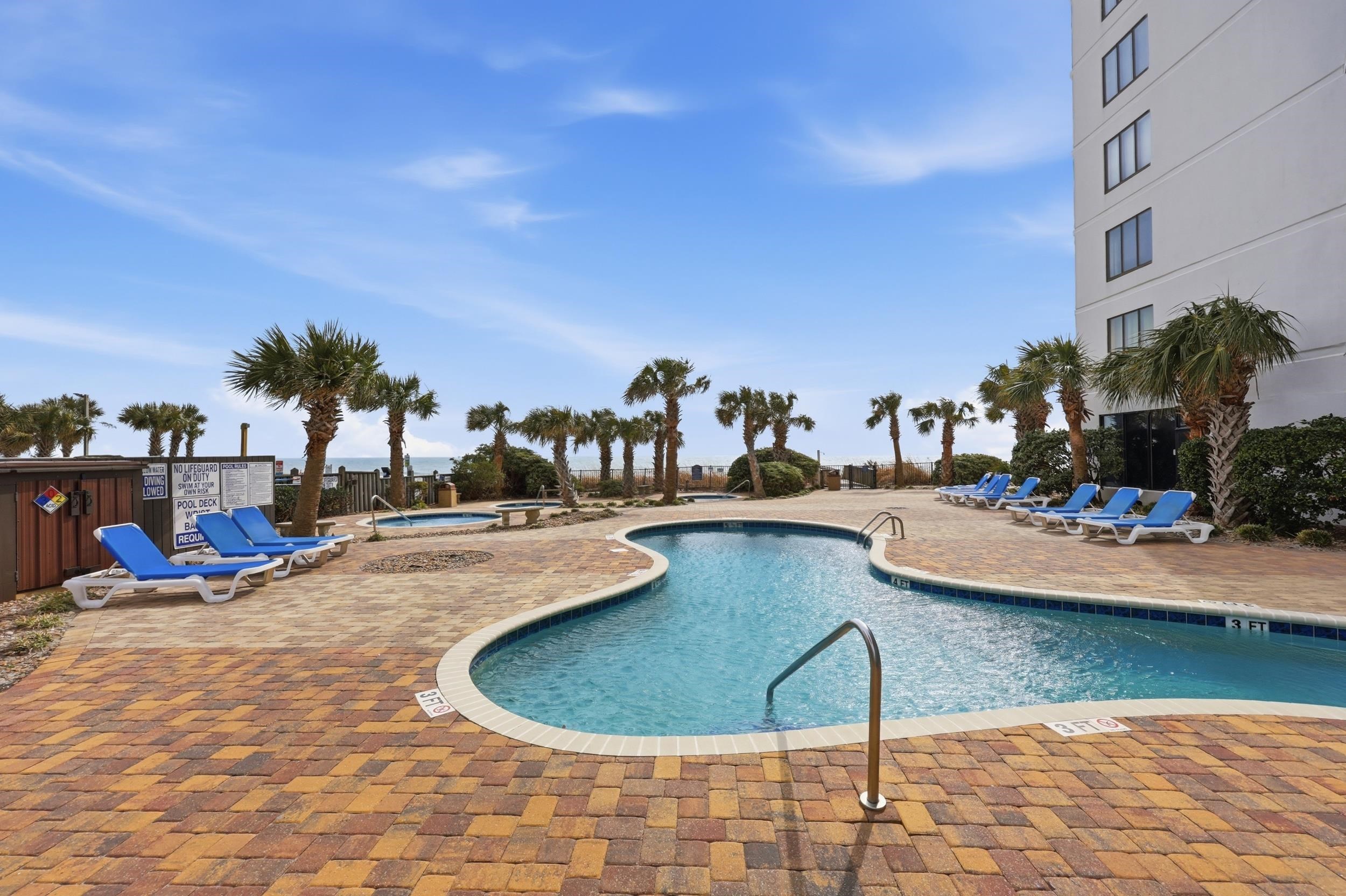 This Gorgeous remodeled ocean view 2 Bedrooms, 2 full baths condo located in The Palace comes fully furnished and offers a great rental history! The condo gives a very open welcome from the moment you walk through the front door with the open floor plan, updated kitchen, and great natural light! This floor plan allows for great entertainment space and complete privacy between master and guest bedrooms. Homeowners can also sit back and relax on the balcony overlooking the pool and ocean. Great rental history and income producing unit. The palace offers onsite restaurants, indoor/outdoor pools, steam / sauna rooms, putting green, workout facility, and an arcade room. The condo is located minutes away from the boardwalk , airport, shopping ,grocery stores, dining, golf courses, Intracoastal waterway, and more!
