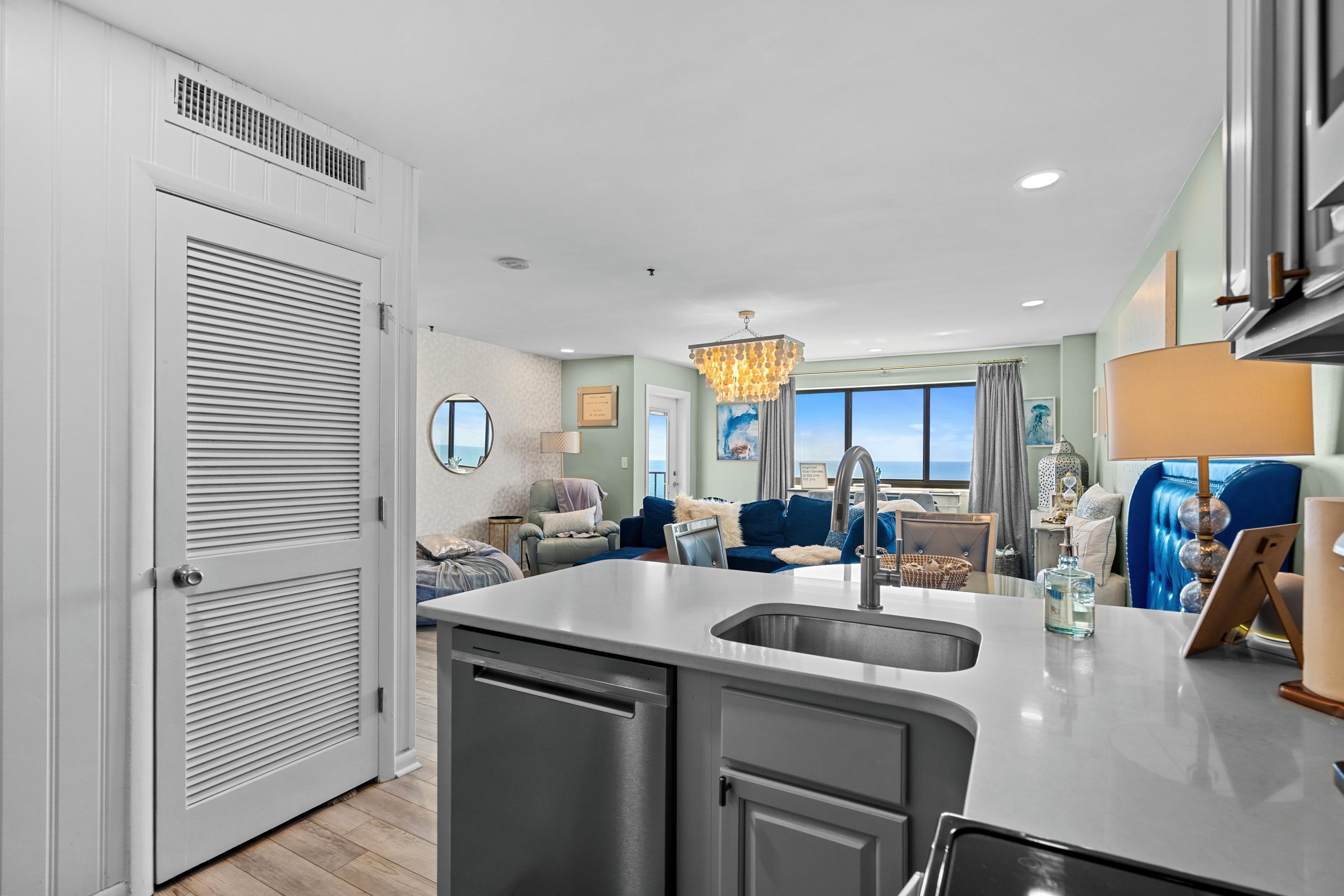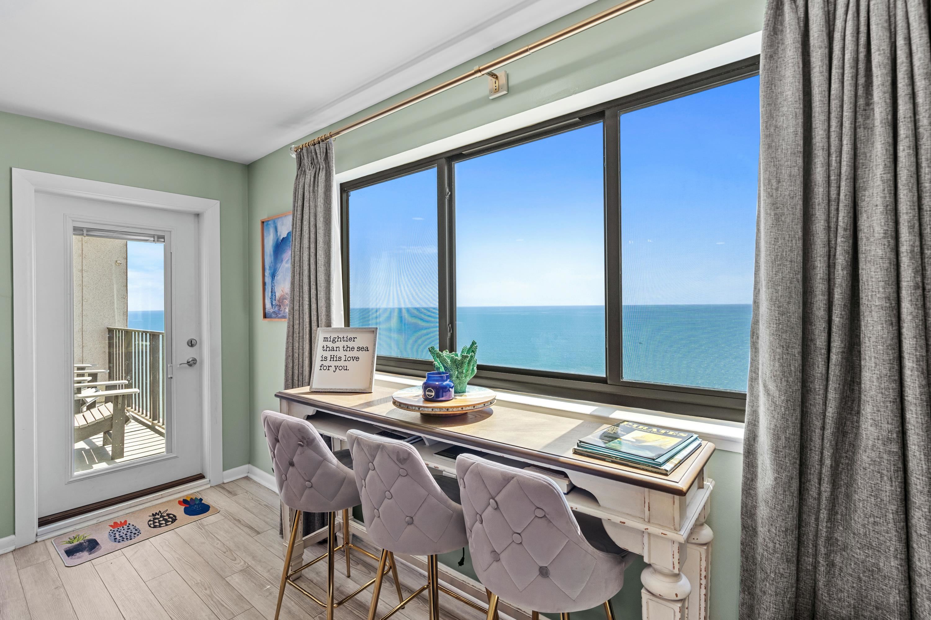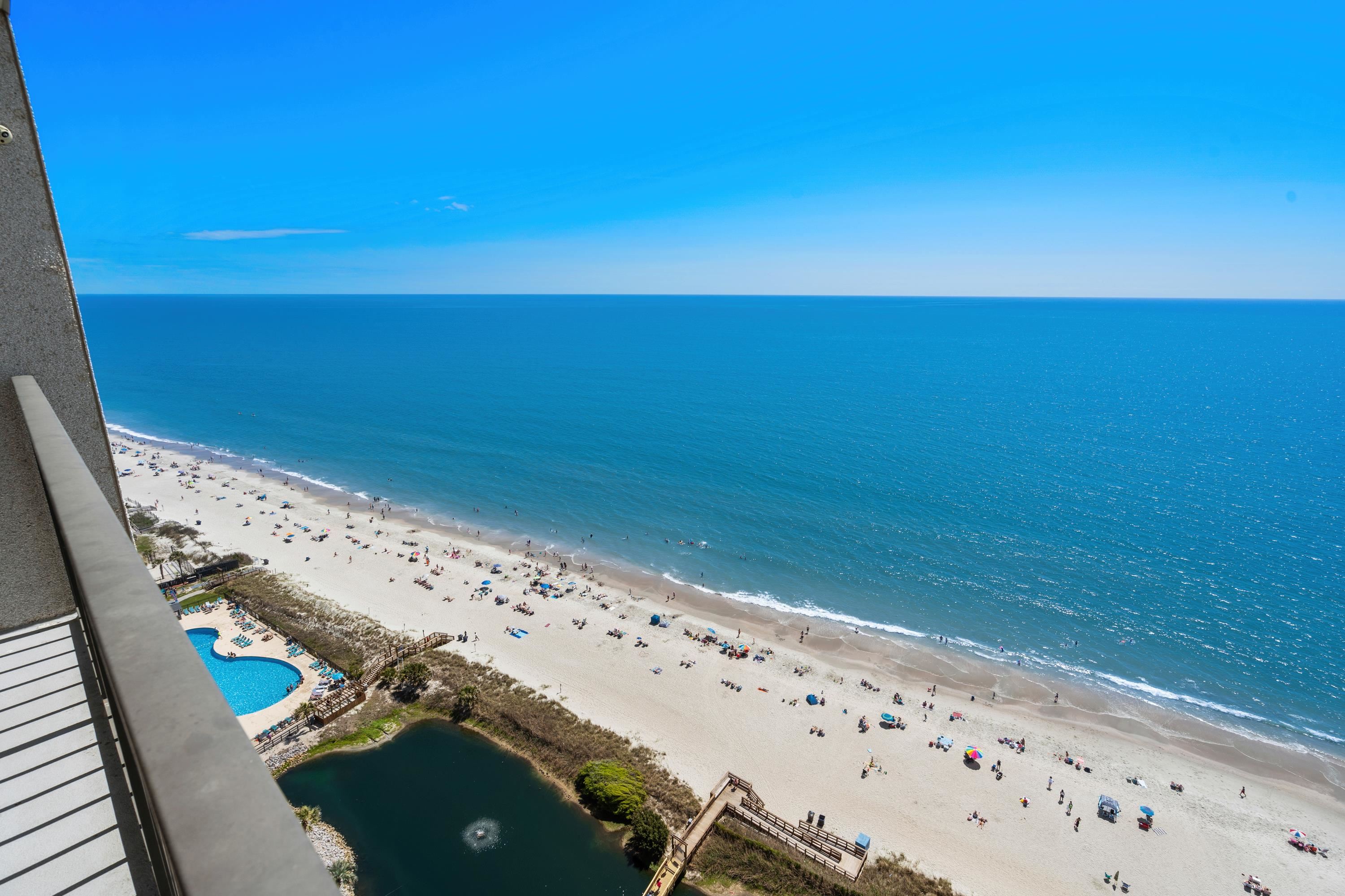 Wake up to the the most beautiful sunrises and enjoy tranquil moon rises along the Atlantic Ocean. Amazing views abound in this luxurious, top floor ocean front condo. This condo is mostly furnished and awaits its new owners. The 2 bedroom 2 bath property was updated in 2021 with features including granite counters, stainless kitchen appliances and tile plank flooring for ease of cleaning and maintenance. Geothermal central HVAC was installed in 2021 as well. You are sure to enjoy the open layout of the living and dining area along with the linear fireplace. Are you familiar with the Myrtle Beach Resort? Myrtle Beach Resort is a gated 33-acre ocean front community with many amenities including six pools with two indoors, a lazy river, hot tubs, saunas, tennis courts, fitness rooms, game room,24-hour security, playgrounds along with a beachfront bar & grill for you and your guests to enjoy. Square footage is approximate and not guaranteed. Buyer is responsible for verification.