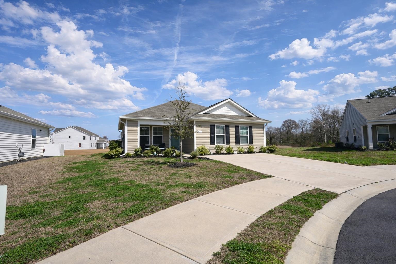 How cute is this home?! This beautifully maintained three bedroom, two bathroom home offers comfort, charm, and an absolutely stunning water view right from your backyard. Lightly used and showing like new, this home is truly move-in ready. The kitchen comes fully equipped with all appliances conveying, plus the washer and dryer stay as well. All blinds convey, and the seller has thoughtfully added gutters for extra convenience. Youll also love the upgraded landscaping, complete with fresh mulch and additional bushes that enhance the homes curb appeal and outdoor beauty. ""Per HOA"" - The new community pool and clubhouse is suppose to open May 2026 . Located at an estimate of 18 minutes from North Myrtle Beach, youre a short drive to the beach, shopping, entertainment, restaurants, and golfing, giving you the perfect balance of peaceful waterfront living and coastal fun. Buyer is responsible for all measurement verifications.