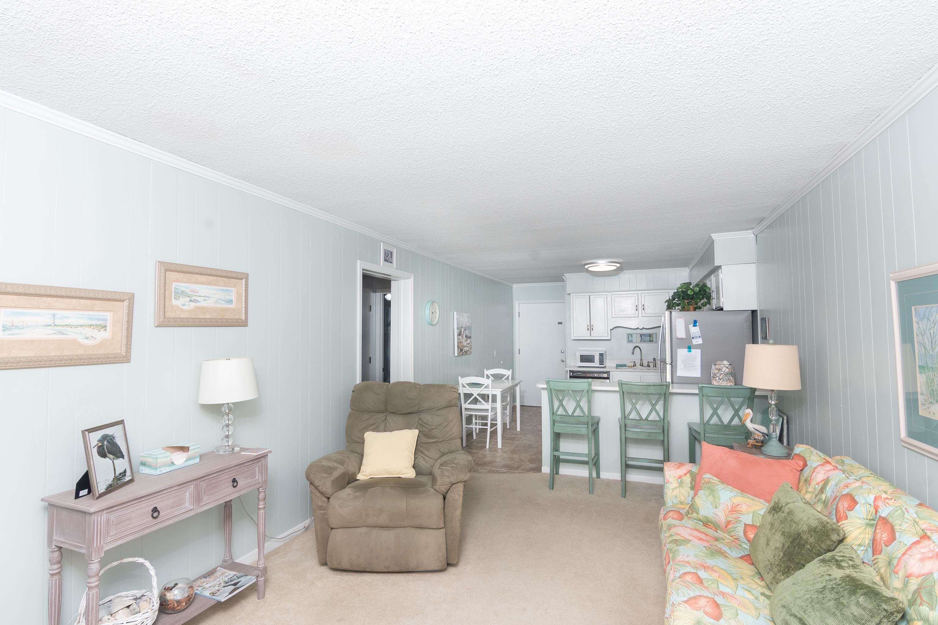 What a View from this 2 bedroom 2 bath condo right across the street (2nd row) from the beautiful Atlantic Ocean!!! Fully furnished and READY FOR SUMMER rental, investment or your very own beach home!! A rare find!! Have your morning coffee on private balcony and watch the waves come in! Two pools are available, one is located across the street by the ocean!! recent updates to the kitchen and the master bath. A walk to the famous Ocean Annie's outside bar and in the popular Arcardian Shores Area. Close to shopping and restaurants! What more could you ask for!!