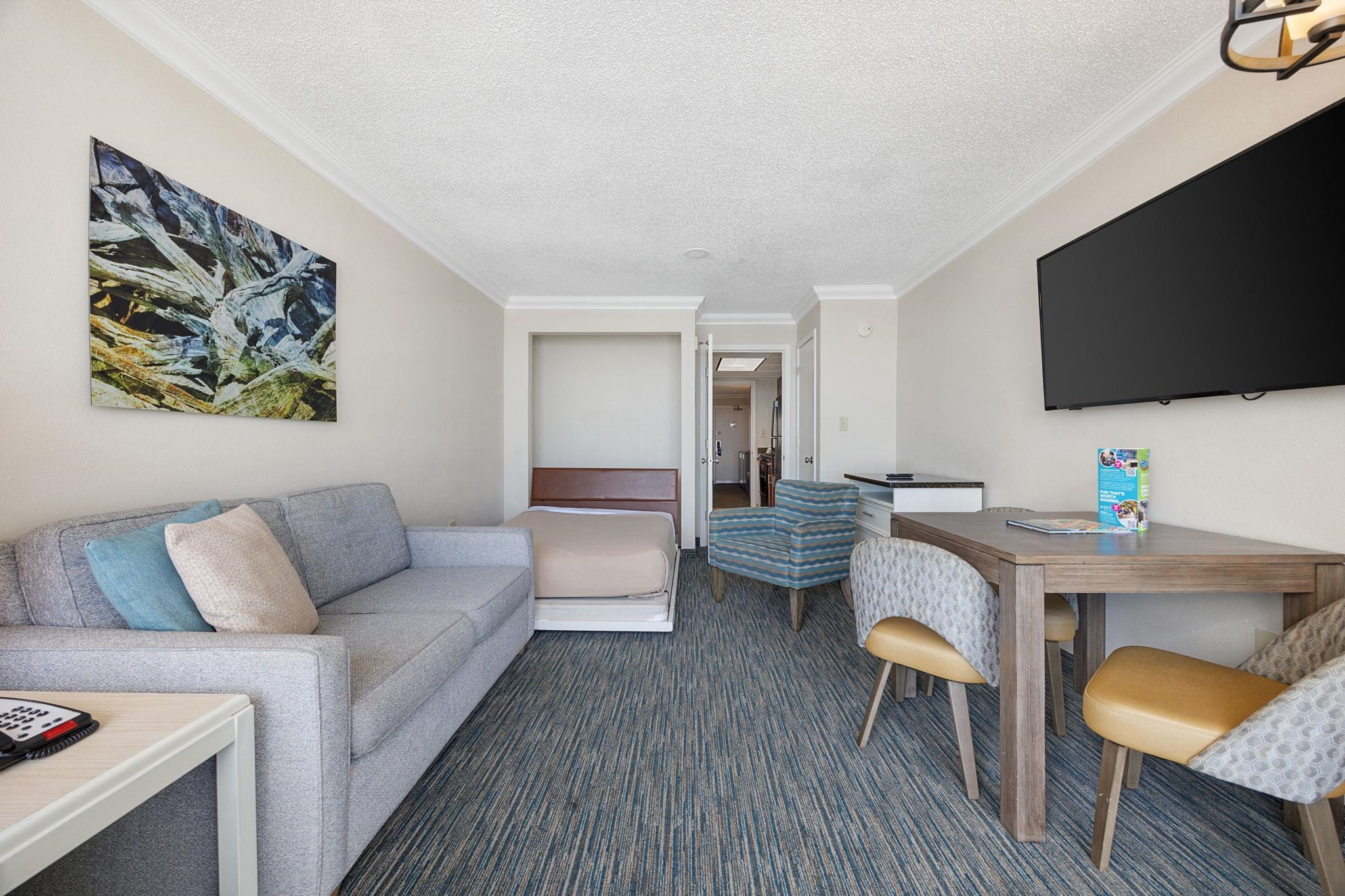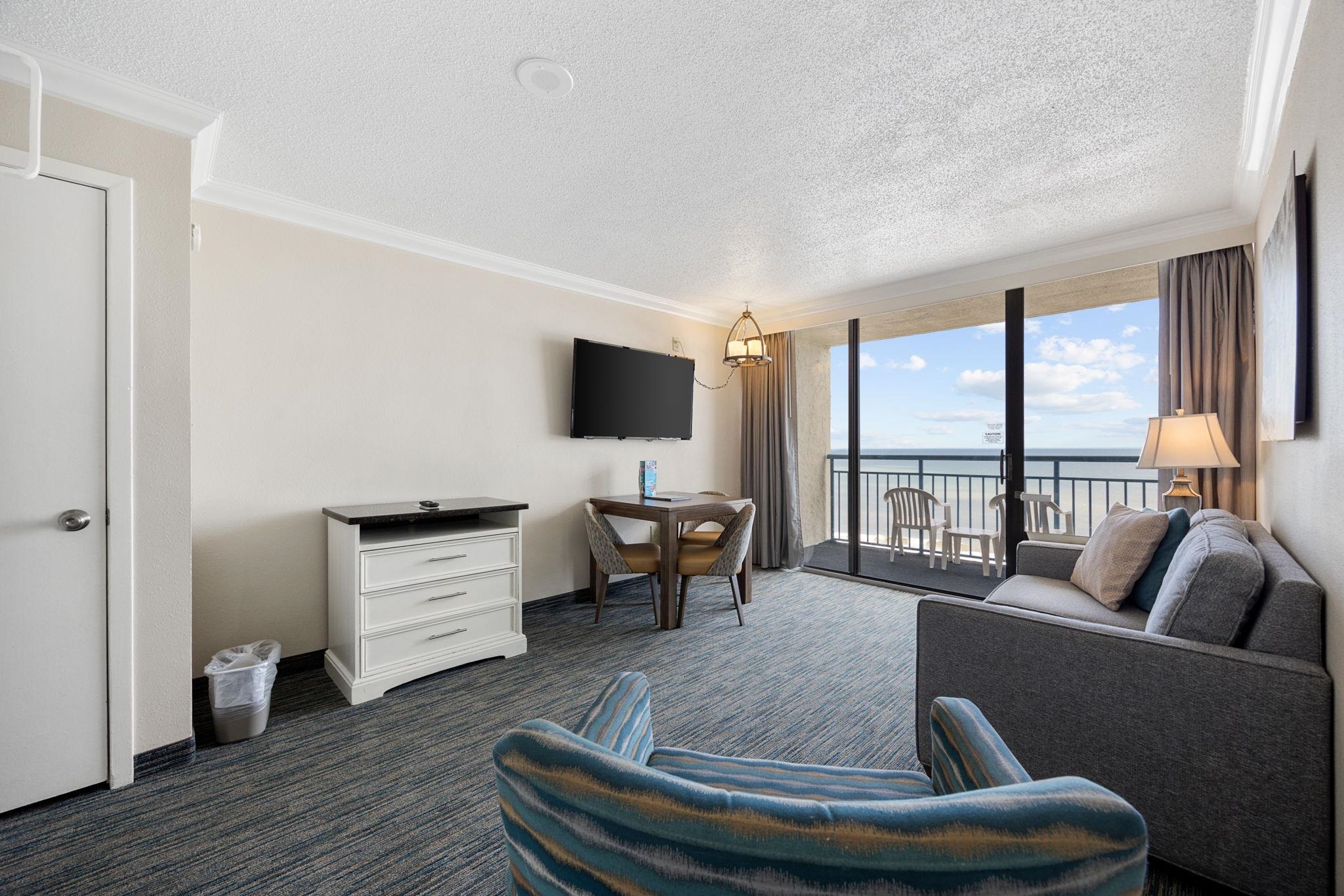 Experience the ultimate beachfront getaway with this beautiful 1 bedroom, 1 bath oceanfront unit at Coral Beach Resort, where you can wake up to breathtaking unobstructed views of the Atlantic Ocean from your private 9th floor balcony. This unit features two queen beds, a comfortable living room with a fold down Murphy Bed, and a fully equipped kitchen with modern appliances, perfect for extended stays or maximizing rental potential. This is an ideal setting whether you're relaxing on your balcony or enjoying the resorts top notch amenities, including indoor and outdoor pools, a lazy river, on-site restaurants and bars, a bowling alley, arcade, fitness center, and direct beach access. Perfect as a vacation home, rental property, or both, this oceanfront gem delivers coastal living at its best. Don't wait and schedule your private showing today!