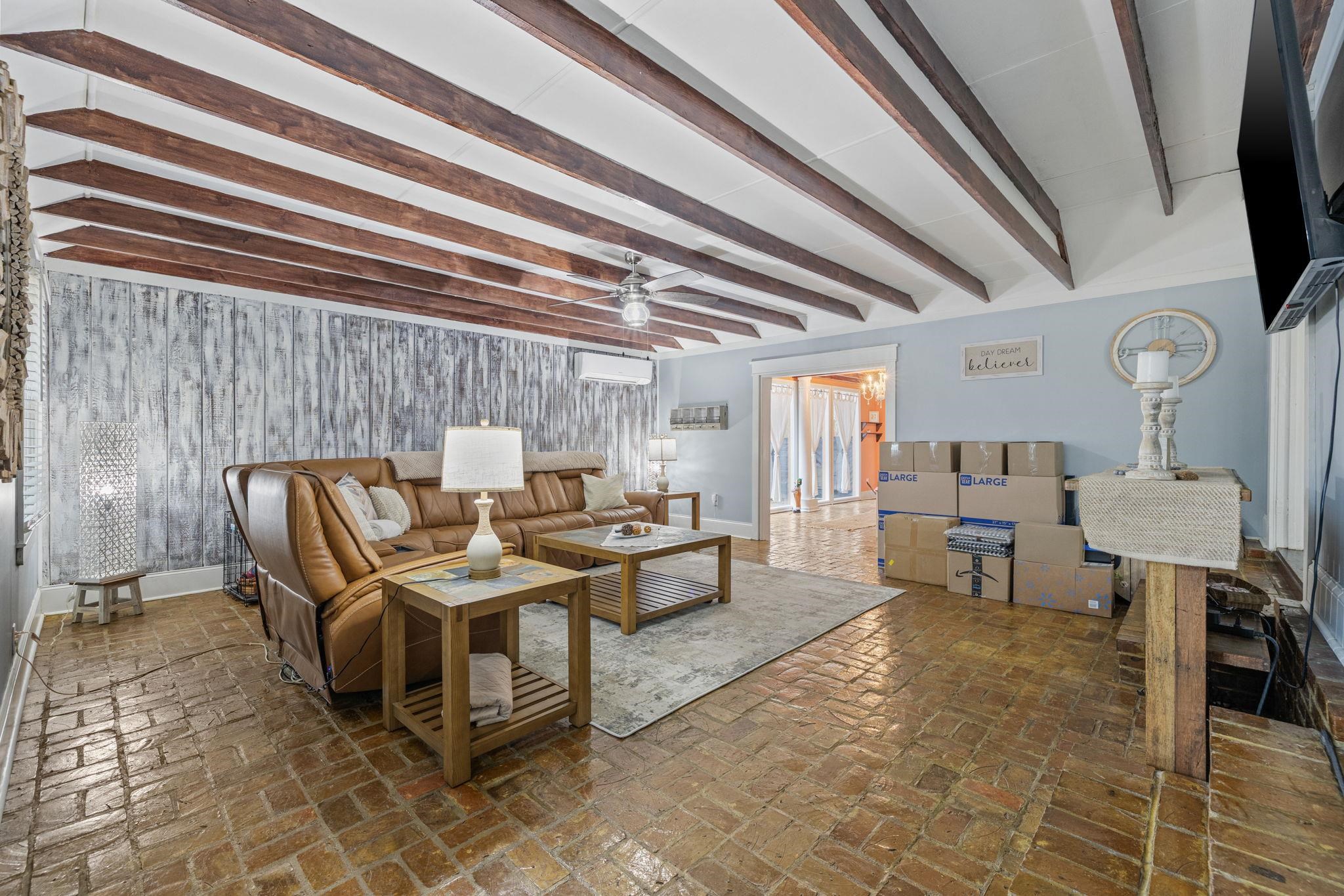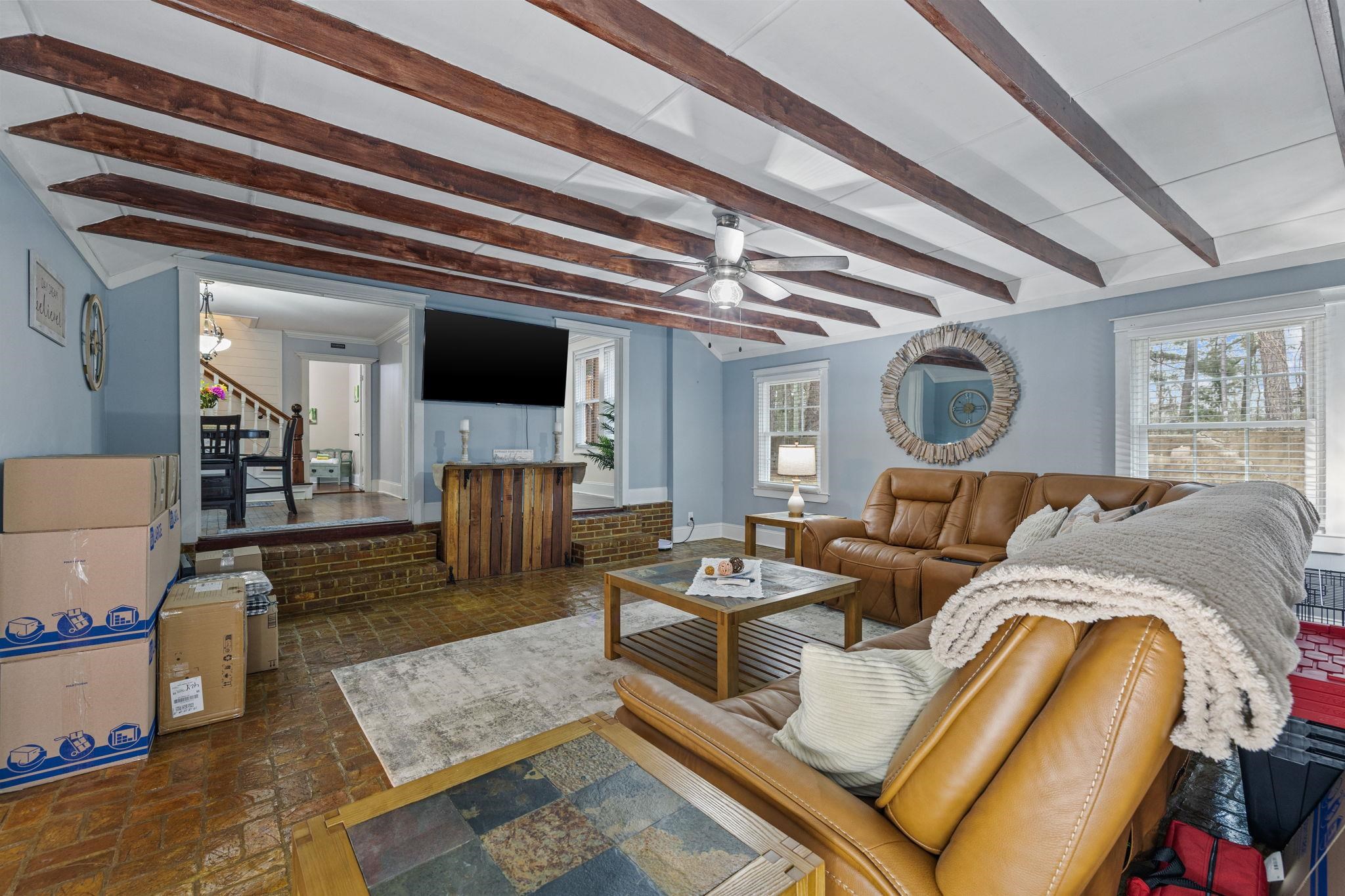 LivingRoom: BeamedCeilings, CeilingFans, SunkenLivingRoom
