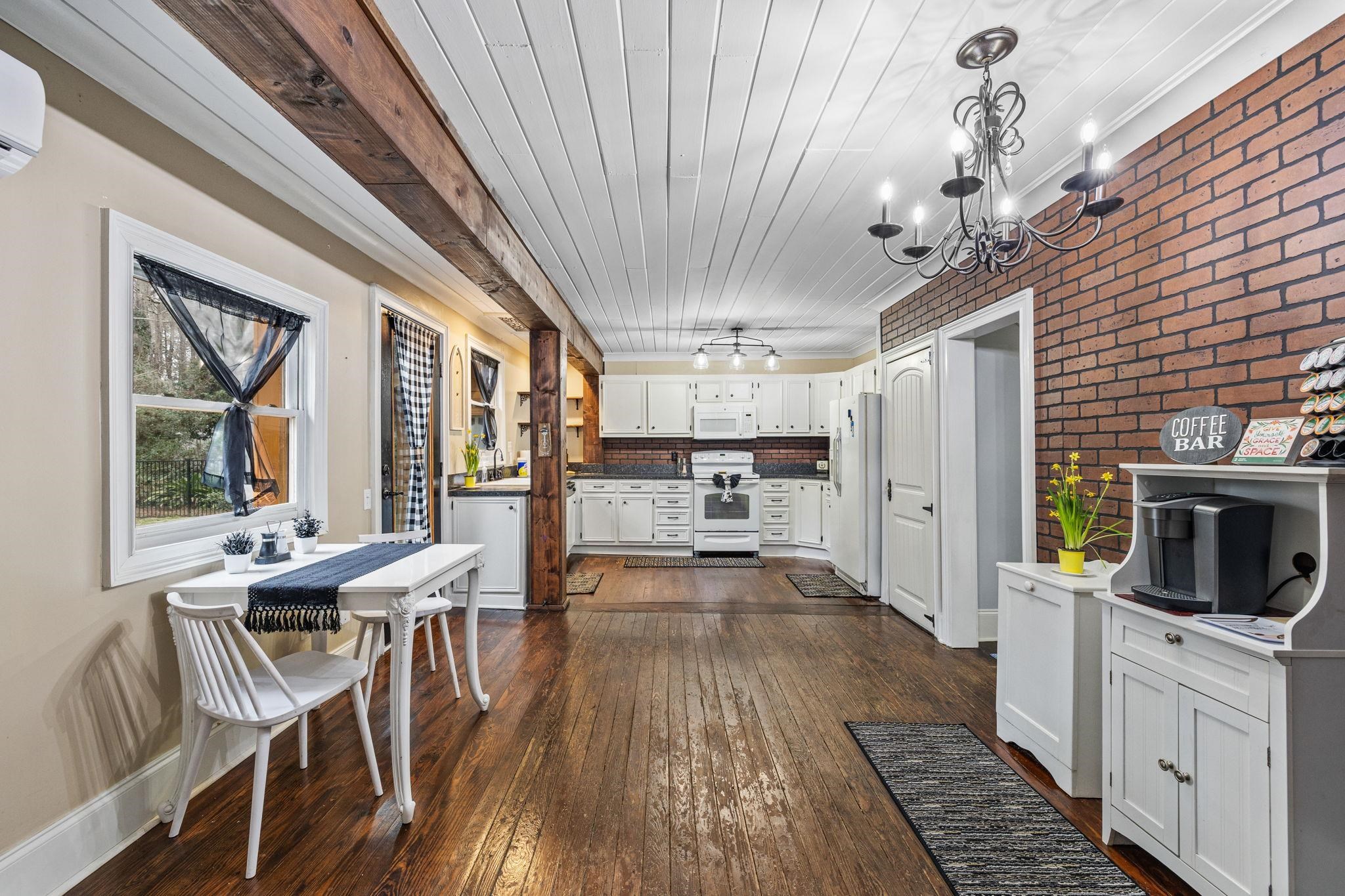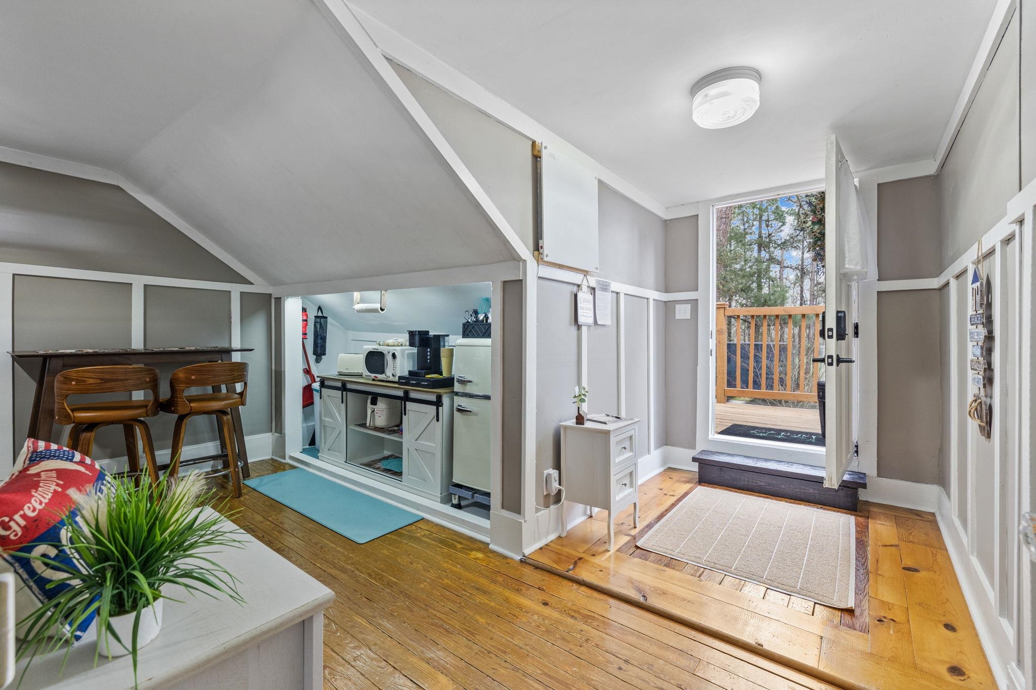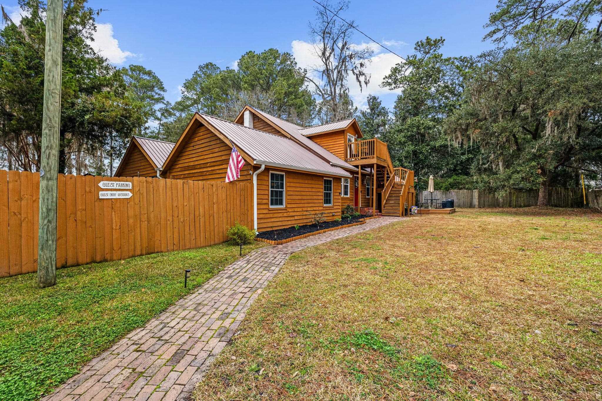 Like no other, this home greets you at your arrival by a true piece of American history: a wrought iron gate from the 1800s, from Charleston. The Crepe Myrtles along the driveway are sourced directly from the renowned Brookgreen Gardens, creating a storied entrance to this amazing property. Substantial, yet original, preserving renovations done to showcase reclaimed wood, shiplap and other unique features; this home radiates warmth. The main level features a spacious kitchen with abundant cabinetry, a pantry, coffee bar and a sprawling breakfast area. From the dining room, just off the kitchen you step onto rare historic, original Charleston brick used as an everlasting flooring in the spacious living room and the Carolina Room. A sanctuary featuring 6 floor-to-ceiling windows and a unique loft. The studio-sized primary suite features a bedroom, full bath, with a beautiful stained-glass window, 2 walk-in closets and a bonus room with a sliding glass door that would be perfect for an office or a 4th bedroom. A guest, full bath is on the main level featuring a classic clawfoot tub, antique sink cabinet and stained glass decor. The upstairs offers a private 2-bedroom, 1 bath retreat accessible by front steps with a deck and entry door. Inside is a common area with a kitchenette and living space that can easily serve as a 5th bedroom or playroom for extended family. This space has flexibility for multi-generational living or potential rental income. If bedrooms are needed for family living, the door can be easily converted back to a window and decking removed. The secured back yard is entirely enclosed with 5 foot black aluminum fencing. This area is built for living and entertaining. In this area you will find brick walkways, the patio, a fire pit and 2 dedicated grilling areas, all accented by beautiful rock areas and landscaping. Also, inside this area is a huge shed that can be used for whatever suits your fancy, and a seperate shed for your lawnmower and yard equipment. Don't forget the pond and a standalone greenhouse with a built-in misting system - both offering incredible potential with a little TLC. Bring your toys, boat landings and the Bucksport Marina are near by. You do not want to miss out on this rare 1.39 acre rare property located just 10 minutes from downtown Conway.