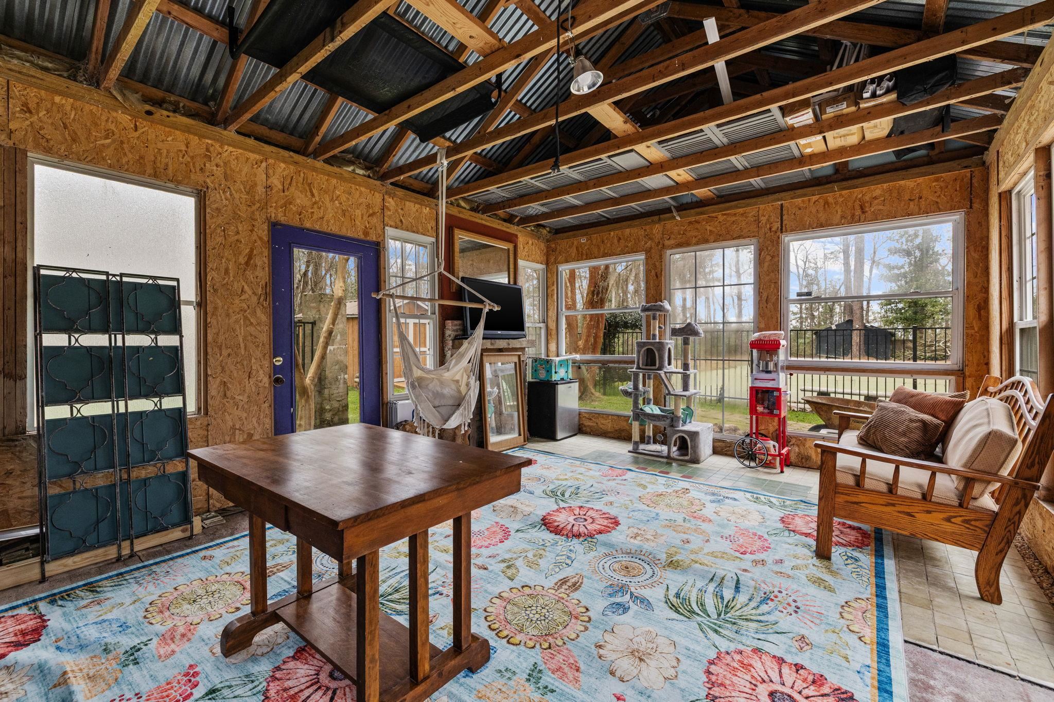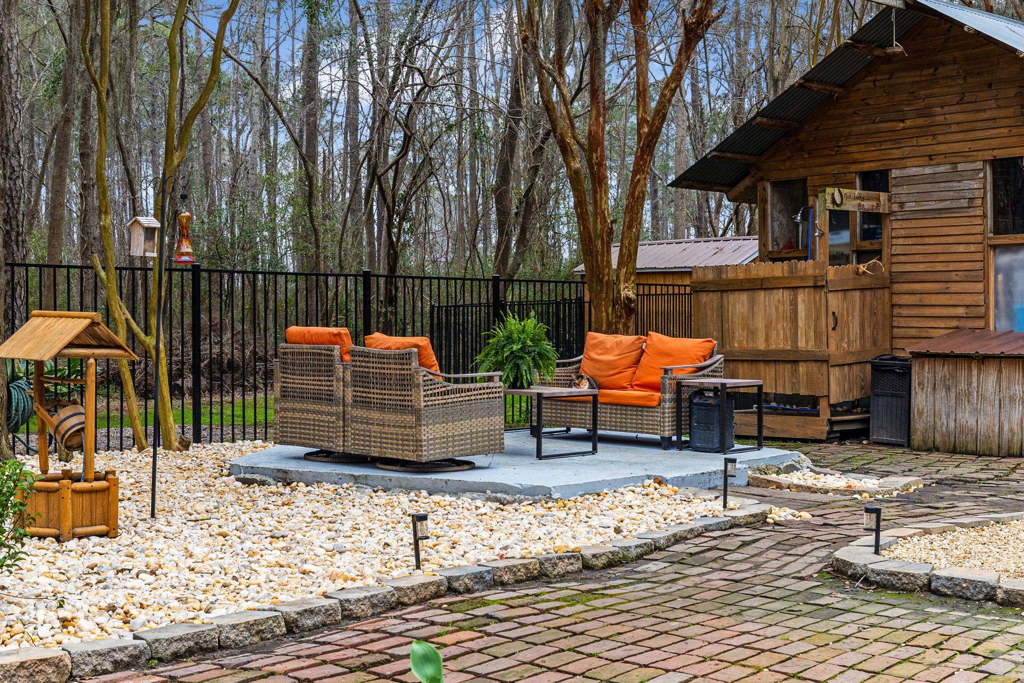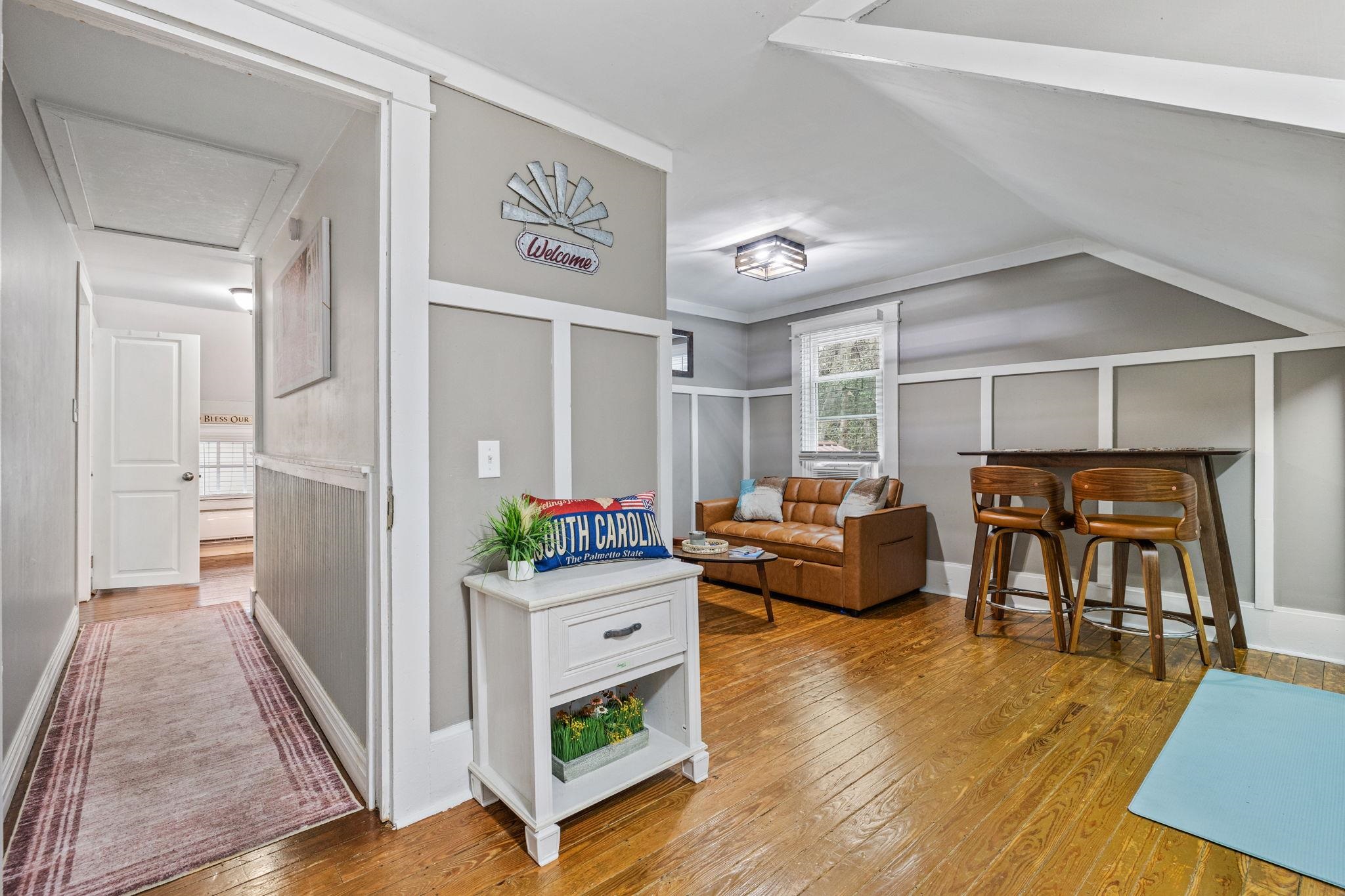 Like no other, this home greets you at your arrival by a true piece of American history: a wrought iron gate from the 1800s, from Charleston. The Crepe Myrtles along the driveway are sourced directly from the renowned Brookgreen Gardens, creating a storied entrance to this amazing property. Substantial, yet original, preserving renovations done to showcase reclaimed wood, shiplap and other unique features; this home radiates warmth. The main level features a spacious kitchen with abundant cabinetry, a pantry, coffee bar and a sprawling breakfast area. From the dining room, just off the kitchen you step onto rare historic, original Charleston brick used as an everlasting flooring in the spacious living room and the Carolina Room. A sanctuary featuring 6 floor-to-ceiling windows and a unique loft. The studio-sized primary suite features a bedroom, full bath, with a beautiful stained-glass window, 2 walk-in closets and a bonus room with a sliding glass door that would be perfect for an office or a 4th bedroom. A guest, full bath is on the main level featuring a classic clawfoot tub, antique sink cabinet and stained glass decor. The upstairs offers a private 2-bedroom, 1 bath retreat accessible by front steps with a deck and entry door. Inside is a common area with a kitchenette and living space that can easily serve as a 5th bedroom or playroom for extended family. This space has flexibility for multi-generational living or potential rental income. If bedrooms are needed for family living, the door can be easily converted back to a window and decking removed. The secured back yard is entirely enclosed with 5 foot black aluminum fencing. This area is built for living and entertaining. In this area you will find brick walkways, the patio, a fire pit and 2 dedicated grilling areas, all accented by beautiful rock areas and landscaping. Also, inside this area is a huge shed that can be used for whatever suits your fancy, and a seperate shed for your lawnmower and yard equipment. Don't forget the pond and a standalone greenhouse with a built-in misting system - both offering incredible potential with a little TLC. Bring your toys, boat landings and the Bucksport Marina are near by. You do not want to miss out on this rare 1.39 acre rare property located just 10 minutes from downtown Conway.