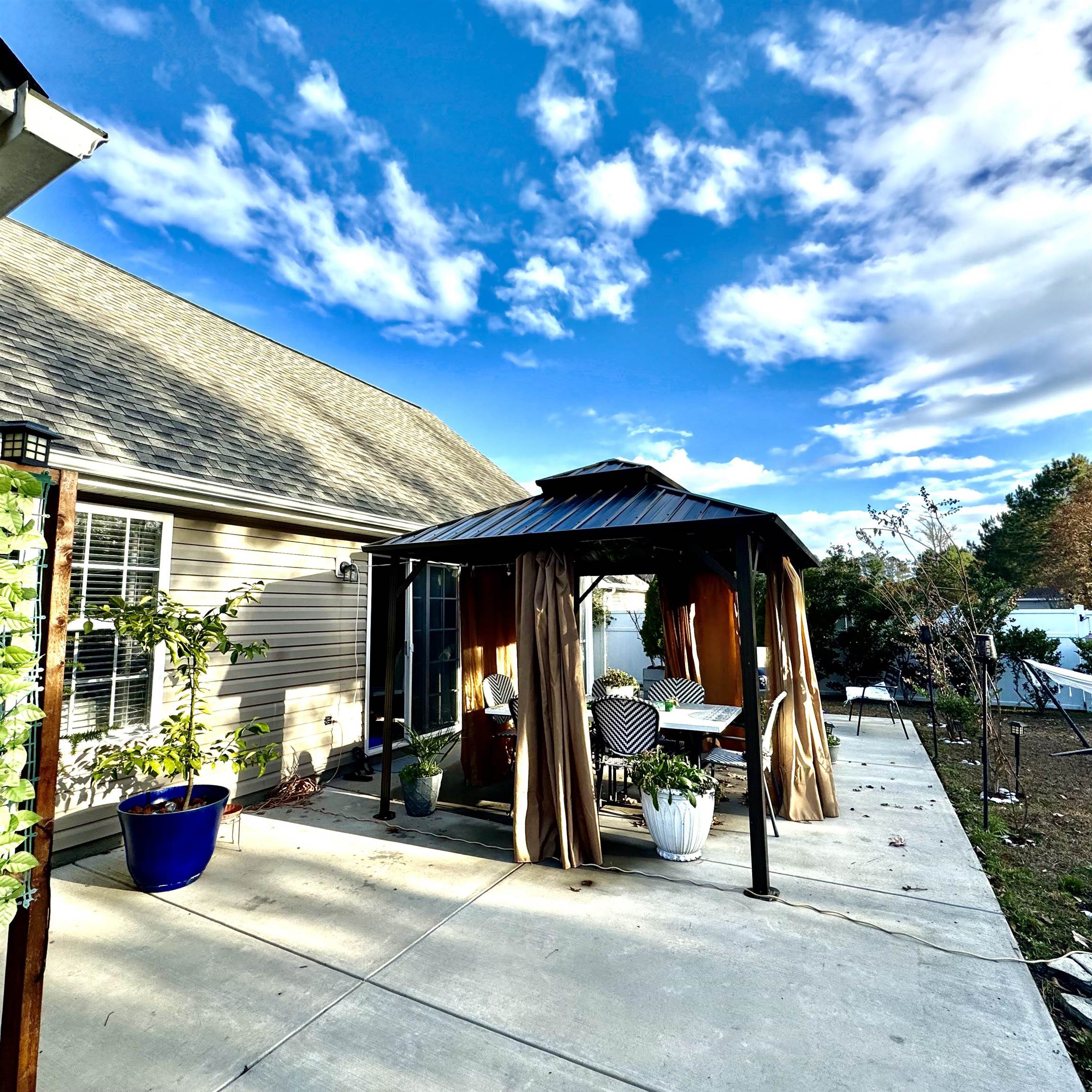 Rare Gem!!!!! This stunning, well-maintained corner home is located in the Highland Woods neighborhood. Enjoy the peace of your backyard with a pool above ground to refresh on the hot summer in Myrtle Beach, in addition to a screened porch with a ceiling fan. Enjoy the additional patio. Entering the house, you notice plenty of light, leaving room, and a dining room blend. The dark gray kitchen, along with the light fixture and the marble countertops, brings a sense of modernity. Stainless steel appliances. The washer and dryer are located in the garage. The luxurious vinyl floor brings style to the house. Master bathroom with double sink, marble countertop, and glass shower; tile on the floor; second bathroom with tub and shower combo; and a single sink with marble countertop as well. Tile on the floor. glass shower doors. An additional parking lot in front of the house was added.