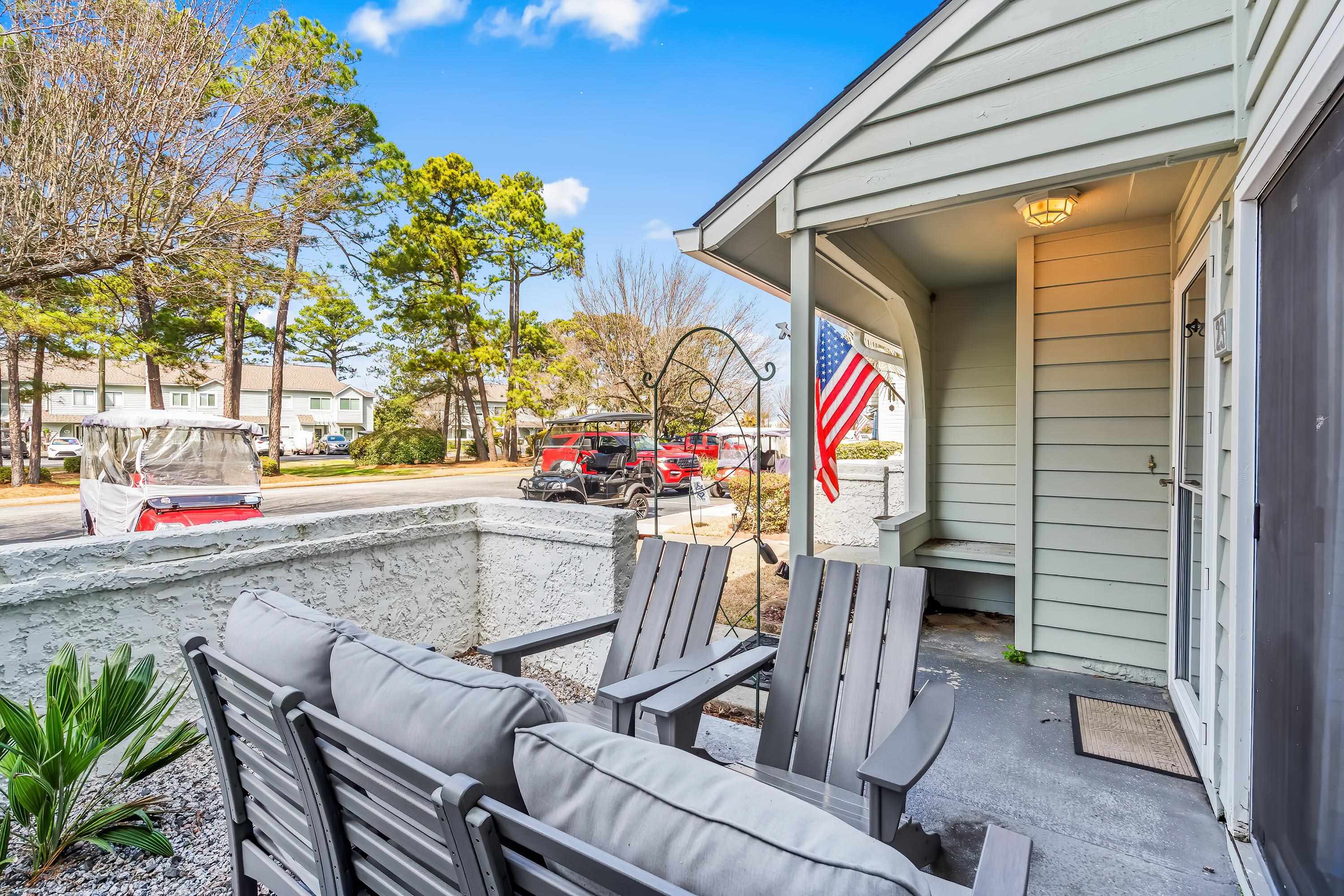 Experience the charm of coastal living in this beautifully updated 2-bedroom, 2.5-bath condo located in the sought-after ShadowMoss community. Just a quick golf cart ride from the beaches and popular shopping areas of North Myrtle Beach, this home offers the perfect combination of modern comfort and relaxed seaside living. The condo features spacious living areas and upgrades throughout such as LVT flooring is both stylish and durable, new rear sliding glass doors with internal blinds, an upgraded kitchen and more . This is a fantastic opportunity to own your own slice of the coast. Furniture and the golf cart may be negotiated.