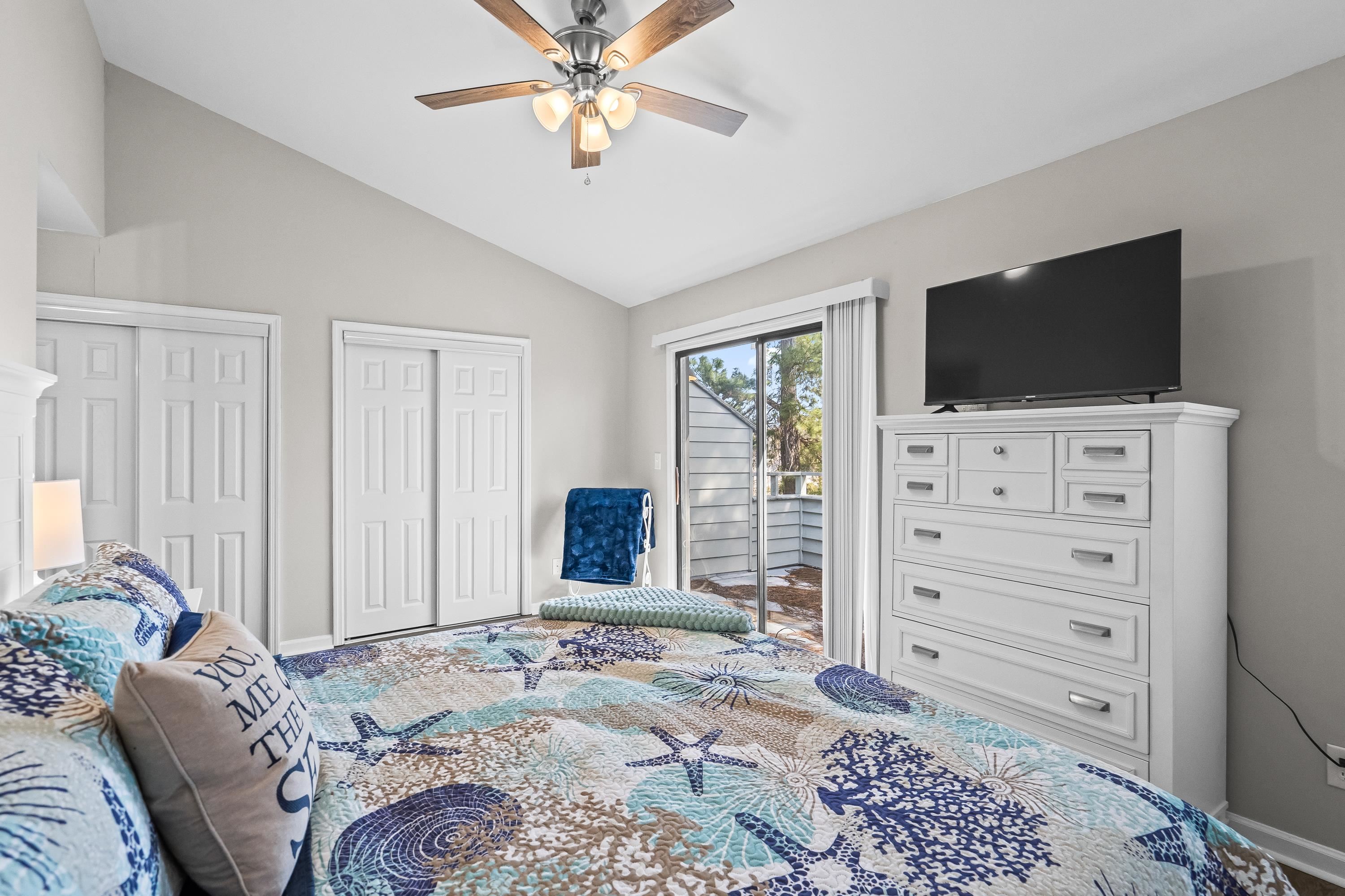 PrimaryBedroom: CeilingFans, VaultedCeilings