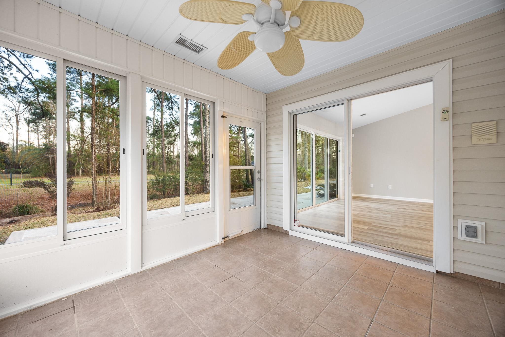 This charming single-level 3-bedroom, 2-bath home boasts new vinyl plank flooring and fresh paint throughout, creating a bright and inviting atmosphere. The exterior is nicely landscaped with several palm trees and curbscaping featuring white stone-filled flower beds, adding to its curb appeal. Inside, the kitchen shines with brand-new cabinets, granite countertops, stainless steel appliances, fixtures, a large breakfast bar, pantry, and cozy breakfast nook. The spacious open floor plan includes a large family room with vaulted ceilings, flowing seamlessly into a 4-seasons room that leads out to an oversized patio at the back. The generous owner's suite offers a vaulted ceiling and new ceiling fan, complemented by an en-suite bath with a large soaking tub, walk-in shower, dual walk-in closets, and a sizable vanity topped with new granite and cabinetry. Both guest bedrooms provide ample space with large closets and new ceiling fans, while the guest bath features a new vanity and granite countertop. Nestled in the desirable Inverness community just off River Oaks, this home is conveniently located a short drive from area schools, restaurants, shopping venues, attractions, and local beaches. Call today to schedule your showing!*Seller is licensed SC realtor*