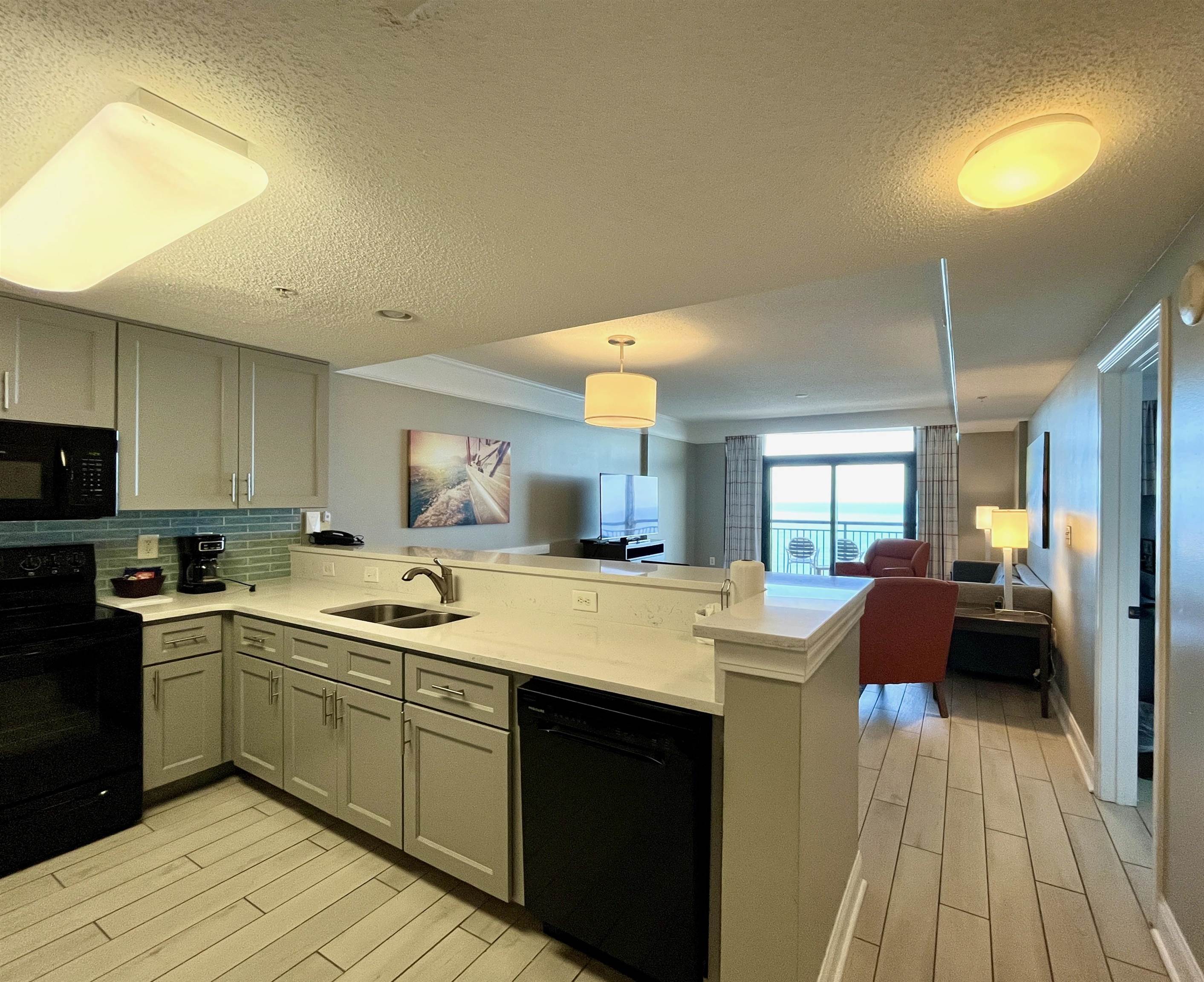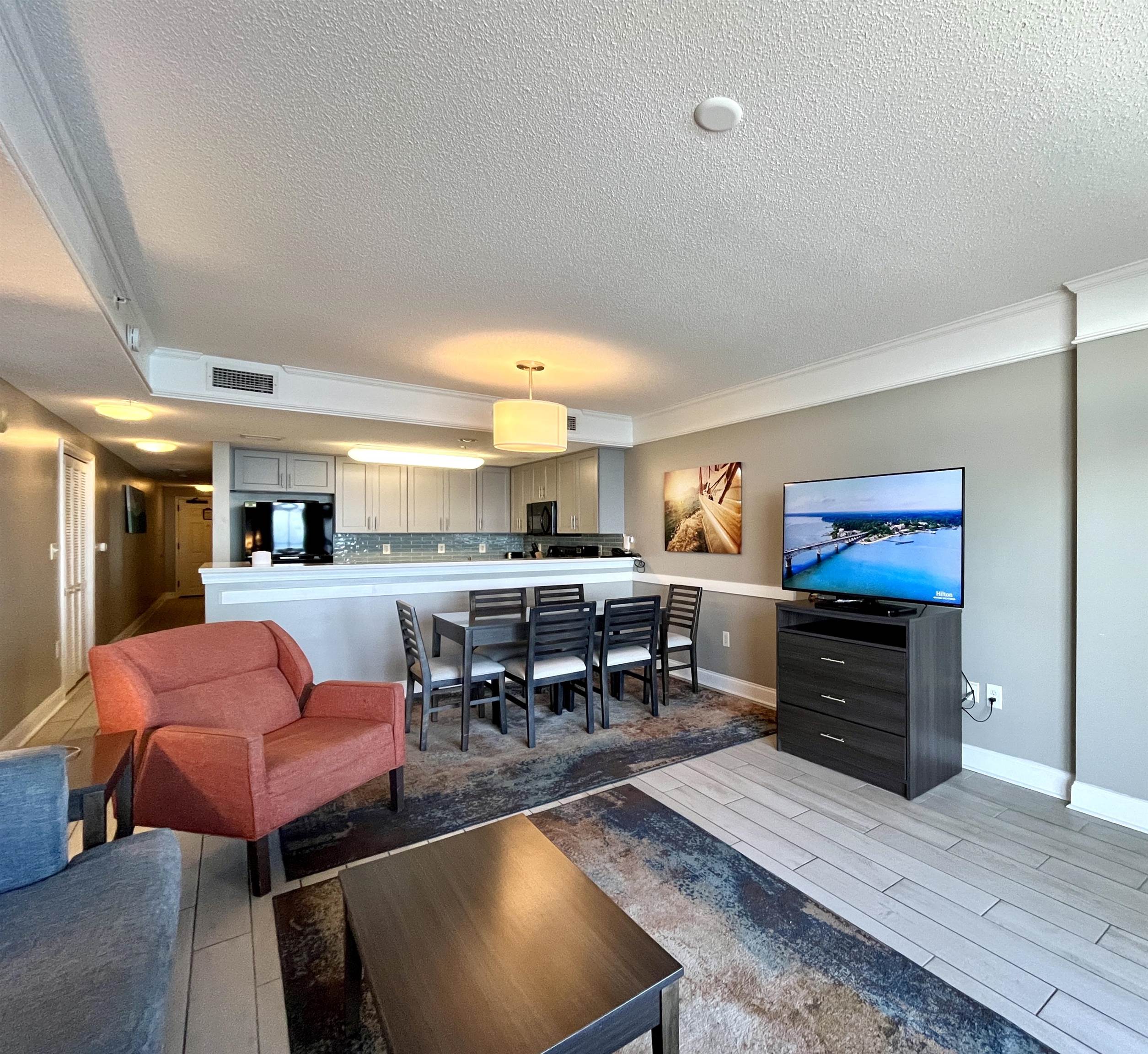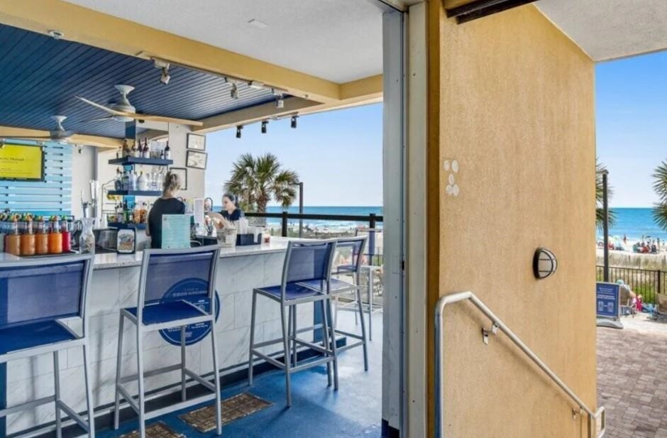 Welcome to your coastal retreat at the Anderson Ocean Club & Spa, perfectly situated in the heart of Myrtle Beach. This beautifully appointed 2-bedroom, 2-bath condo features an inviting open floor plan that seamlessly connects the kitchen, dining, and living areas ideal for both relaxing and entertaining. The well-designed kitchen offers abundant cabinet and counter space, and flows effortlessly into the dining area, which is conveniently located between the kitchen and living room. The bright and spacious living room is filled with natural light from expansive sliding glass doors that open to a private balcony, where you can enjoy beautiful ocean views and refreshing coastal breezes. Both bedrooms are generously sized and feature their own private bathrooms with tub/shower combinations, offering comfort and privacy for owners and guests alike. The Anderson Ocean Club offers a wealth of amenities, including full-service spas, a lazy river, tiki bar, heated indoor and outdoor pools, jacuzzi, fitness center, parking, and room service. Enjoy unlimited mini-golf right across the street from Anderson Ocean Club and Spa at Lost Mine Miniature Golf! Nestled in the heart of Myrtle Beach, this condo provides easy access to dining, shopping, and entertainment options, ensuring an unforgettable vacation experience. Whether you're seeking a personal retreat or an investment opportunity, this oceanfront oasis delivers the ultimate in coastal living. Don't miss your chance to own a slice of paradise at the Anderson Ocean Club! Square footage is approximate and not guaranteed. Buyer responsible for verification.