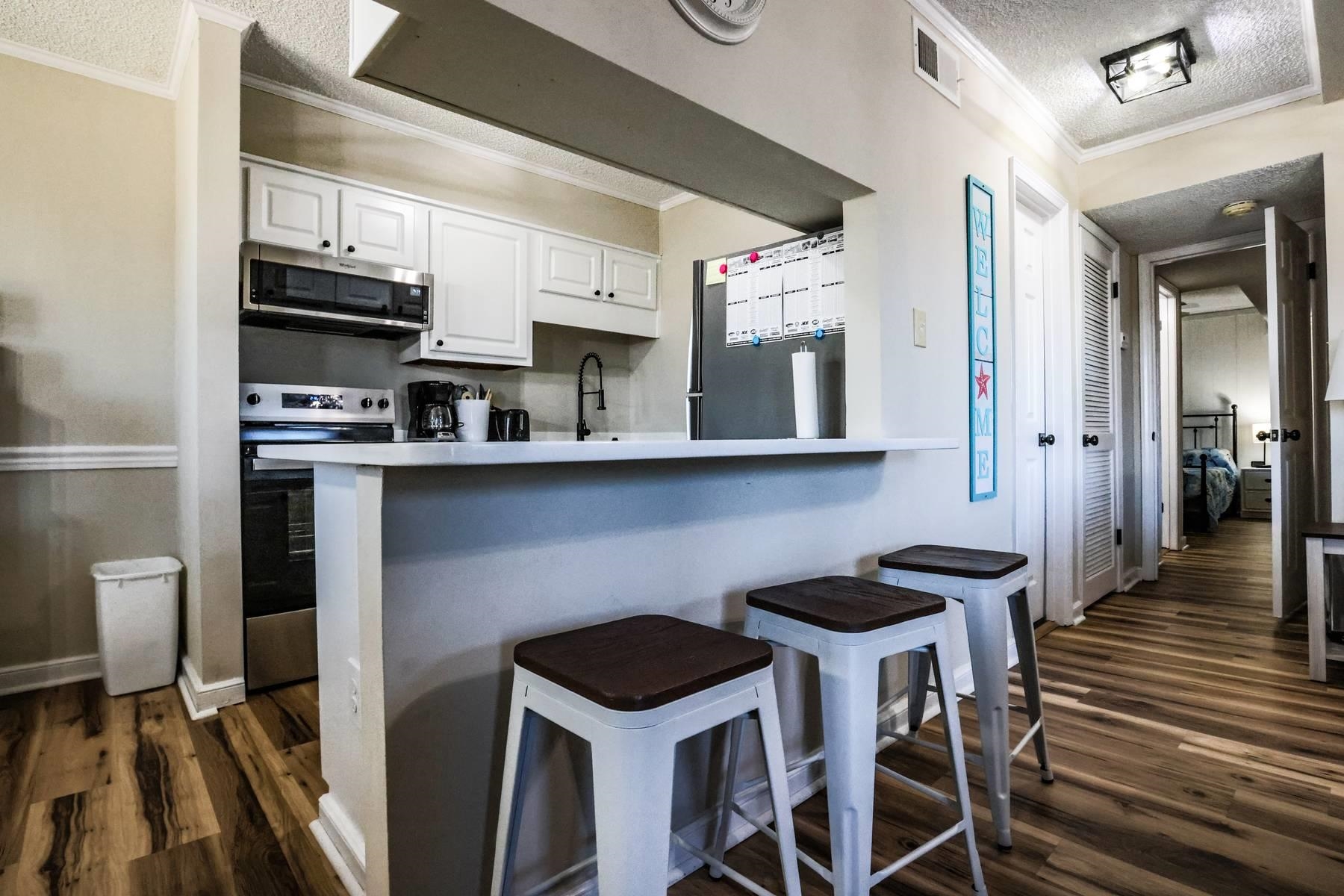 Welcome to this beautifully maintained and redone 2 bedroom, 2 bath, condo offering comfortable and convenient living. Living area filled with natural light and perfect for relaxing or entertaining guests. The kitchen new energy efficient appliances, windows updated in 2023 and 2024. Enjoy a private screened in balcony perfect for morning coffee or afternoon beverage after enjoying the beach.