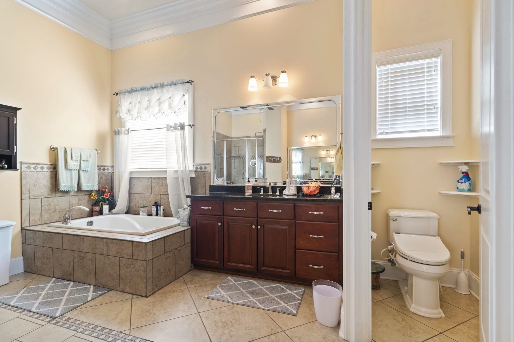 PrimaryBathroom: Bathtub, TrayCeilings, DualSinks, SeparateShower