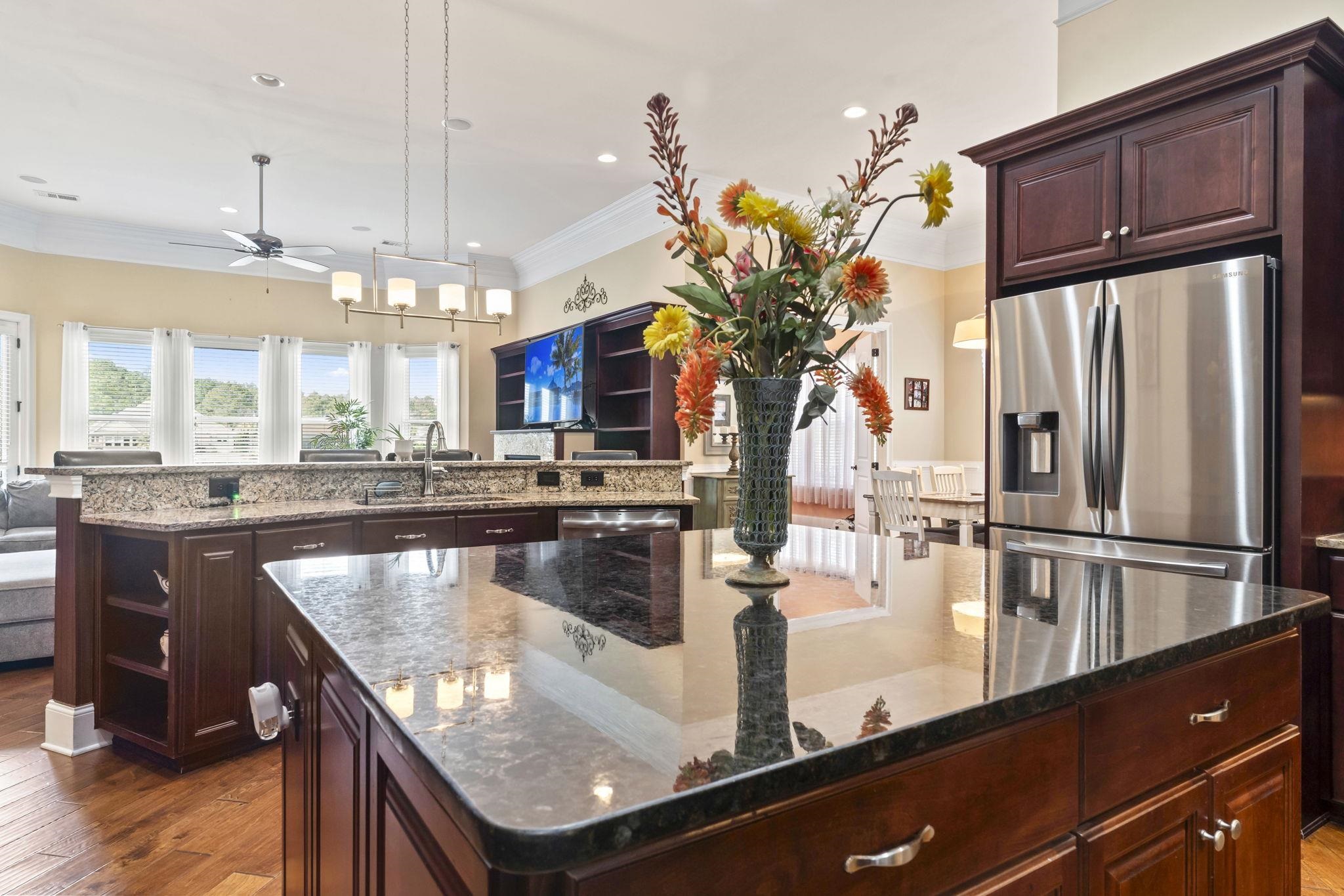 Kitchen: BreakfastBar, BreakfastArea, KitchenExhaustFan, KitchenIsland, Pantry, StainlessSteelAppliances, SolidSurfaceCounters
