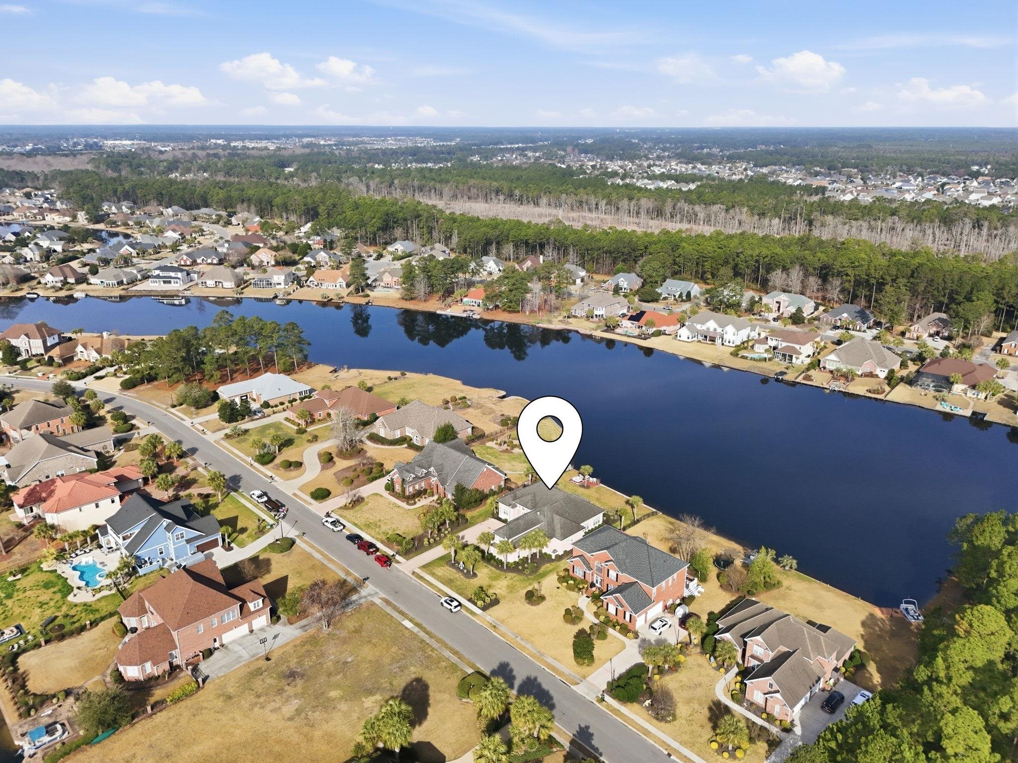 Lakefront Mediterranean-style 4BR/3.5BA home with amazing lake views. This bright, open floor plan is loaded with upgrades, including a custom kitchen cabinets with granite countertops, stainless steel appliances, a large work island and beautiful separate eating area. Enormous primary bedroom, with vaulted, trey ceilings, huge walk-in closet and lusurious tiled shower. Spacious secondary bedrooms and a large, versatile bonus room for a variety of uses. Includes a boat slip, so you can dock your pontoon boat in your backyard and boat the 15 miles of shoreline or cruise to the amenities center to enjoy the fitness center, pools, lighted tennis courts, and basketball courts. Yes, the Ocean is just minutes away, plus shopping, restaurants, and all that Myrtle Beach has to offer. All measurements are approximate.