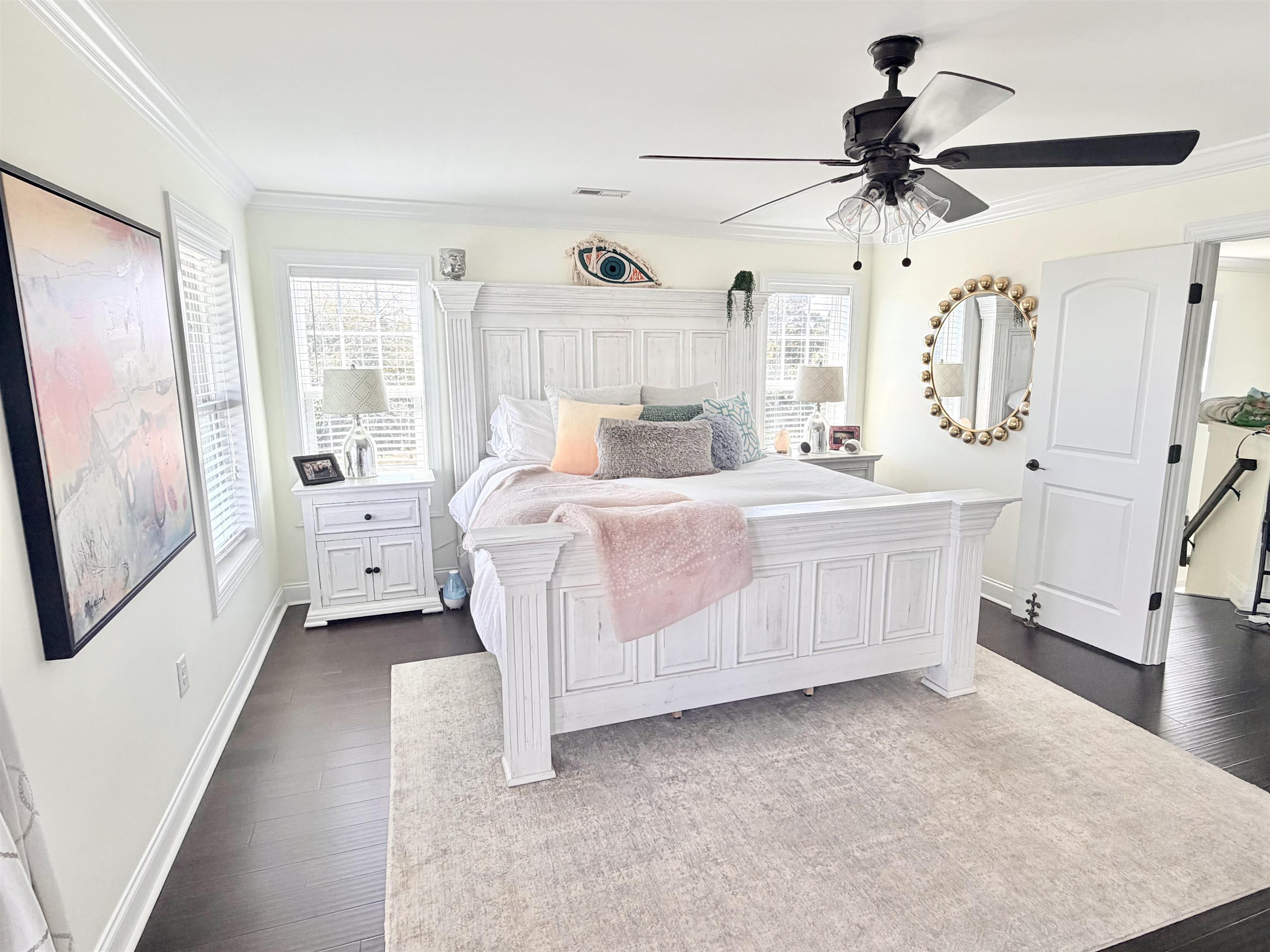 Here is an amazing 4BR 3.5 home in the gated neighborhood of The Battery on the Waterway. This home has 2 master suites. One is downstairs and the other is upstairs with a view from the porch of the Intracoastal Watery in Myrtle Beach. The home has an open floorplan with generous walk-in closets, hardwood floors, granite countertops, stainless steel appliances, split bedrooms, 3 porches to enjoy the beach breeze, a hand painted Crystal Frye powder room, and much more. The neighborhood has boat storage, a boat ramp and dock, a gazebo, and a large lake. There are walking trails nearby and also a mountain bike trail. The beach is just a short bike or car ride away.