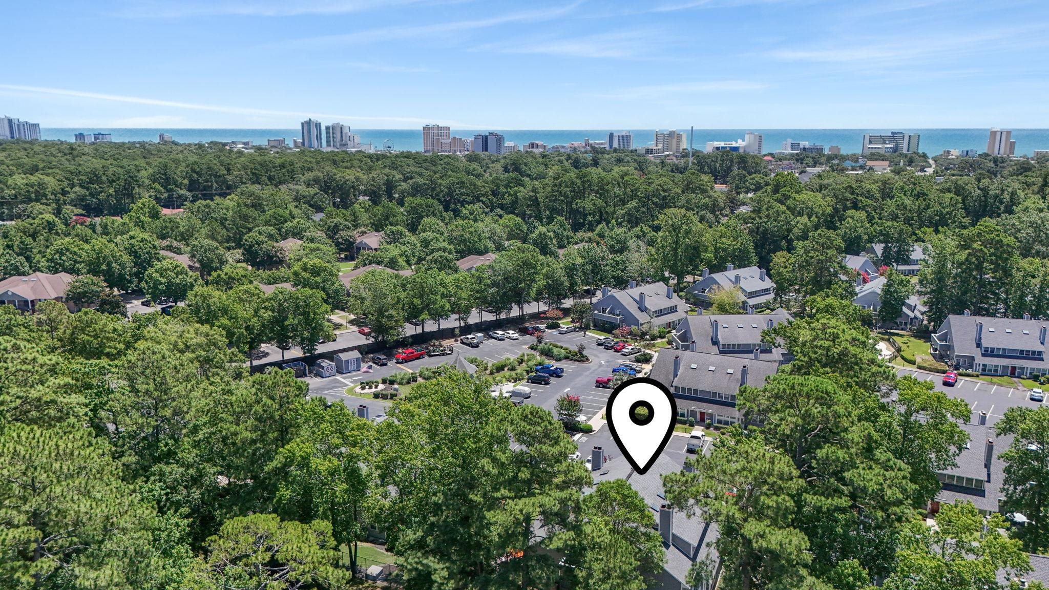 Just minutes from the beach, this charming 2-bedroom, 2-bath condo offers the perfect blend of comfort, style, and coastal convenience. Step inside to a bright and airy living space highlighted by vaulted ceilings, a cozy wood-burning fireplace, and large windows that flood the home with natural light. The open-concept layout seamlessly connects the kitchen, dining, and living areas creating an ideal space for entertaining or relaxing after a day by the ocean. The primary suite is conveniently located on the main level and features two closets along with direct access to a private balcony, perfect for enjoying the coastal breeze. The main level bathroom includes a tub/shower combination and a full-size stacked washer and dryer for added convenience. A striking spiral staircase leads to the loft area, which includes an additional bathroom and offers flexible space for guests, a second living area, or a private retreat. Whether you're searching for a beach getaway, golf retreat, or strong investment opportunity, this condo checks all the boxes. Community amenities include a picnic area and gazebo ideal for relaxing outdoors with the HOA indicating that a security gate and community pool are planned for the future. Pets unfortunately are not allowed. Located just minutes from the beach, the airport, Market Common, shopping, dining, and Myrtle Beach's top attractions, this semi-furnished condo is move-in ready and waiting for its next owner. Schedule your showing today and start enjoying the coastal lifestyle!