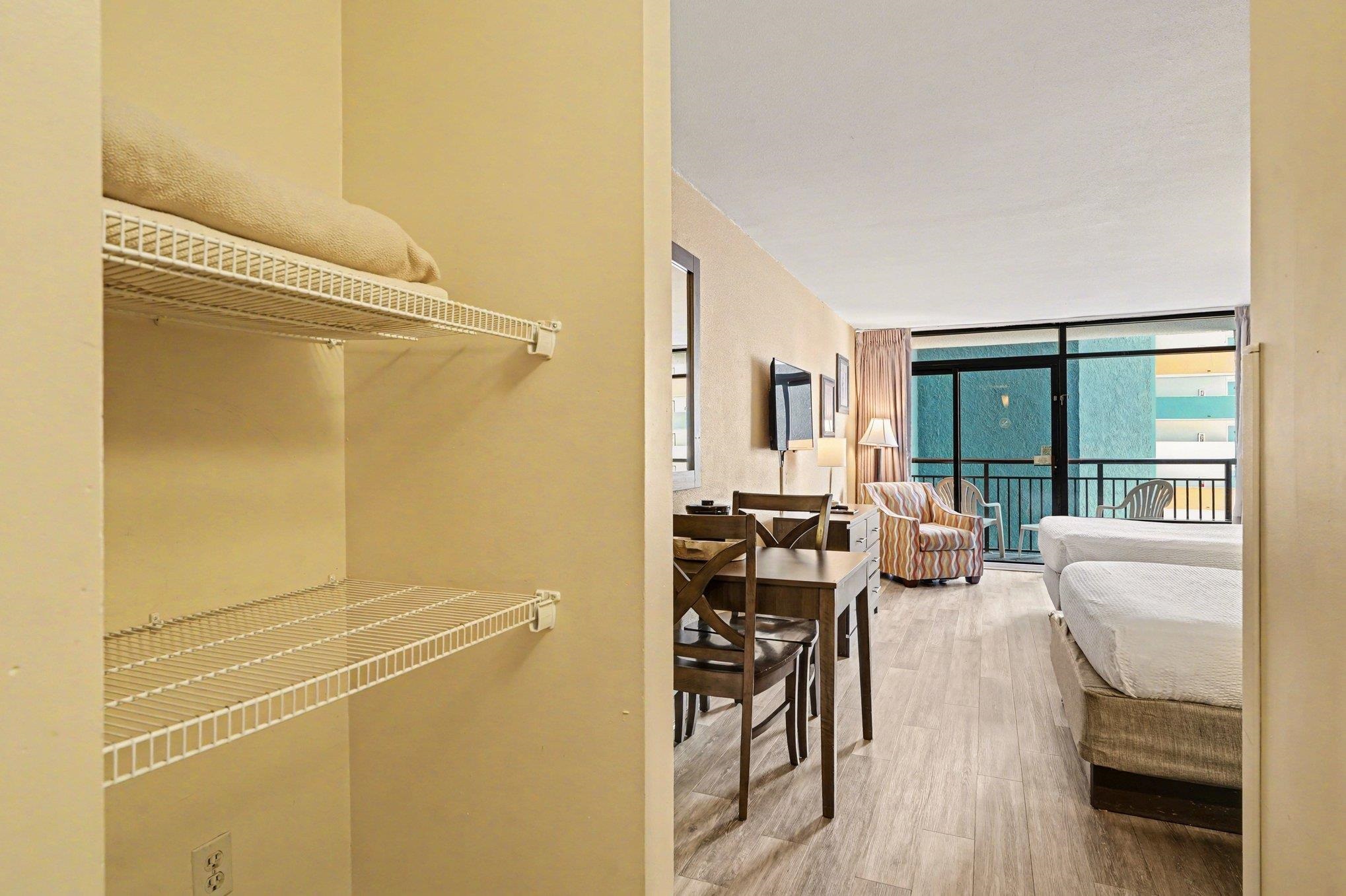 Welcome to the Landmark Resort, and this well-appointed efficiency unit located in one of Myrtle Beachs most amenity-rich oceanfront resorts. Whether you're searching for a vacation getaway, rental investment, or combination of both, this unit offers comfort, convenience, and access to the best of the Grand Strand. Inside, the efficiency layout is designed to maximize space and functionality. The unit features two beds, a dining area, and durable flooring throughout, creating a comfortable environment for relaxing after a day at the beach. A private balcony provides beautiful views of the surrounding resort, offering the perfect place to enjoy your morning coffee or unwind in the evening. The Landmark Resort is known for its incredible list of amenities that keep guests returning year after year. Owners and guests enjoy multiple indoor and outdoor pools, a lazy river, hot tubs, and one of Myrtle Beachs most exciting on-site waterparks with large slides and splash areas. Additional amenities include restaurants, an arcade, fitness center, and direct beach access. Located on the south end of Myrtle Beach, the resort is just minutes from the Myrtle Beach International Airport, the Myrtle Beach Boardwalk, Market Common, golf courses, shopping, dining, and entertainment. Whether you're looking for a turn-key vacation property or a rental opportunity, this efficiency unit at Landmark Resort places you right in the heart of Myrtle Beachs oceanfront lifestyle. Buyer is responsible for verification