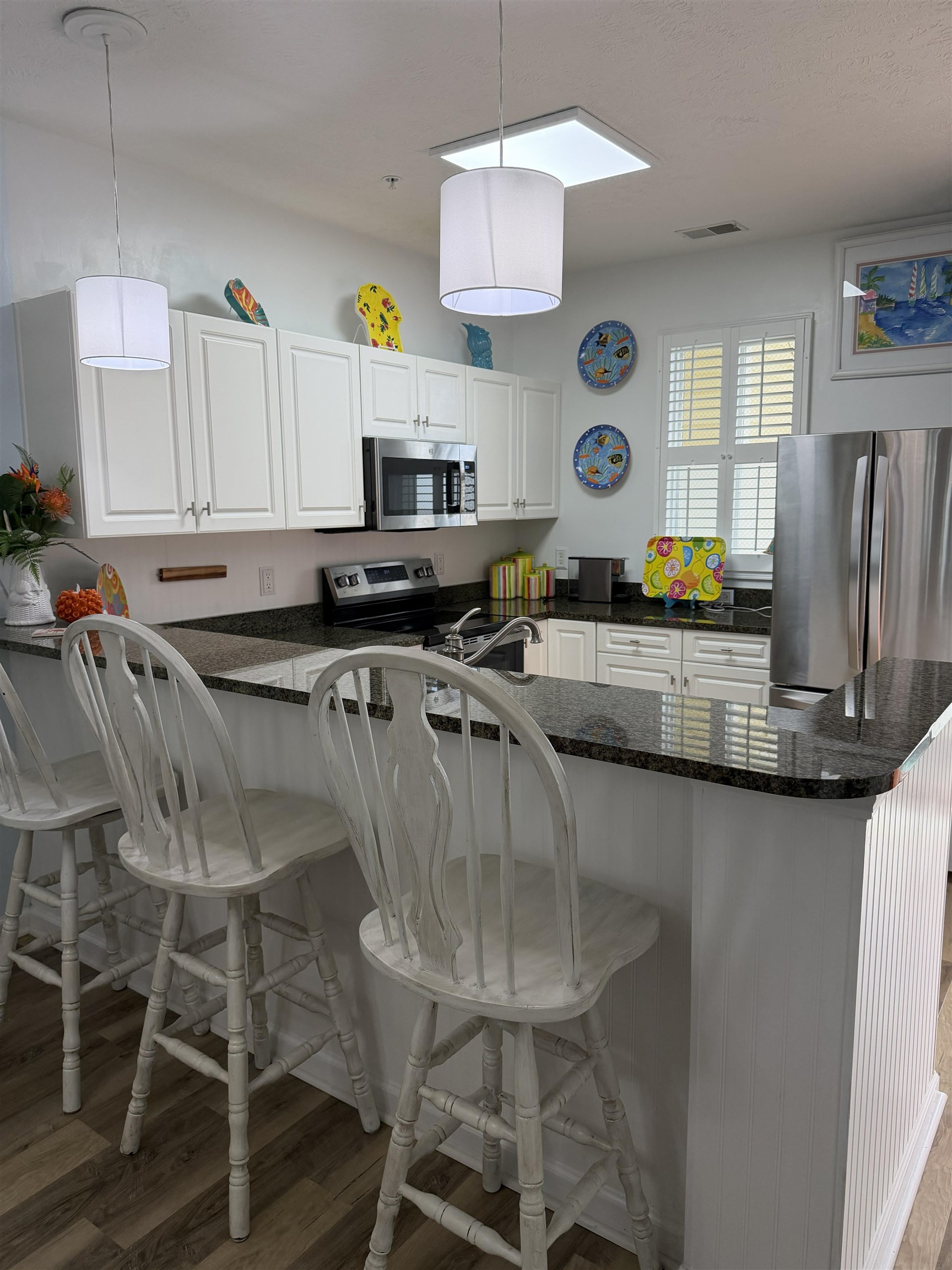 Welcome to this beautifully furnished 2-bedroom, 2-bath second-floor condo located in the gated community of Ocean Keyes of North Myrtle Beach. Just a short golf cart ride or walk to the beach, this move-in-ready home offers the perfect blend of comfort, convenience, and coastal charm.This recently renovated condo features brand-new appliances, granite countertops in the kitchen, and quartz countertops in the bathrooms. Luxury vinyl tile flooring and neutral colors throughout create a modern, bright, and inviting space. It is beautifully decorated, exceptionally clean, and meticulously maintained.Simply bring your clothes and start enjoying beach living.Relax on the screened-in porch overlooking one of the community pools and mature, shaded trees, creating a peaceful and private setting. Ocean Keyes offers outstanding amenities including multiple pools, tennis courts, pickleball courts, a fitness center, and outdoor grilling areas. Whether you're looking for a full-time residence, a vacation getaway, or a great rental income opportunity, this property checks all the boxes.