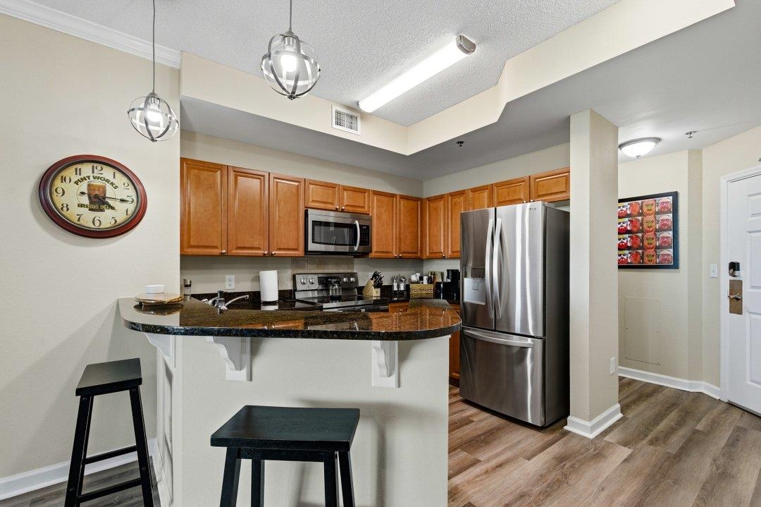 OPEN HOUSE ON SATURDAY 3/21 11AM - 1PM talk to the front desk on the first floor to gain access to the 5th floor. Welcome to The Horizon on 77th Avenue, where comfort, style, and coastal living come together. This 5th-floor ocean-view condo offers 2 bedrooms, 2 bathrooms, and 1,095 heated square feet, and is one of the select floors in the building featuring 9-foot ceilings, creating a more open and spacious feel. The kitchen features granite countertops, stainless steel appliances, and ample cabinet space, flowing nicely into the main living area. Luxury vinyl plank flooring runs throughout the unit, offering both durability and a clean, modern look. The entire condo has also been freshly painted, making it move-in ready. The primary bedroom provides direct access to the oversized balcony, where you can enjoy relaxing ocean views. The primary bathroom includes a large tiled shower and double vanity sinks, adding both comfort and functionality. Recent updates include an HVAC system replaced approximately two years ago. The Horizon offers fantastic resort-style amenities including a lazy river, outdoor pool, outdoor jacuzzi, indoor pool, indoor jacuzzi, and a fitness center. Located just a few hundred yards from the beach, this condo is also close to shopping, dining, golf, and all the entertainment Myrtle Beach has to offer. Whether you're looking for a primary residence, vacation getaway, or investment property, this ocean-view condo checks all the boxes.