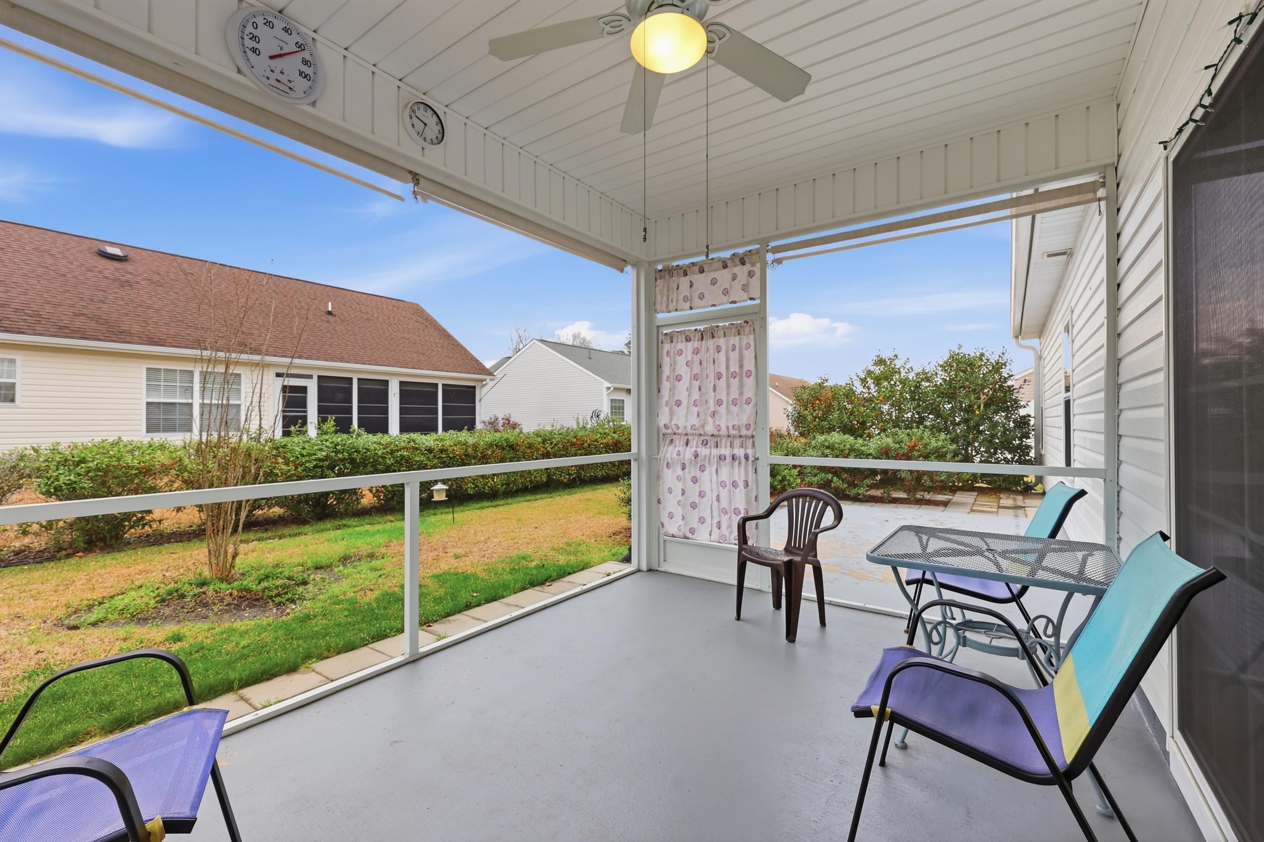Welcome home to easy coastal living in the quiet, welcoming community of Myrtle Lakes North. This charming 3-bedroom, 2-bath ranch-style home offers comfortable single-level living with an attached two-car garage and a layout designed for everyday convenience and relaxation. A welcoming front porch invites you inside, where you'll find LVP flooring throughout and a bright, open feel. The living room features vaulted ceilings that create an airy, spacious atmosphere. Just off the living room is the dining area accented with classic wainscoting and sliding glass doors that open to the screened back porch, making indoor-outdoor living and entertaining easy. The kitchen is conveniently located just inside the garage entry door, perfect for bringing in groceries, and the home also features a laundry closet with washer and dryer hookups. The additional bedrooms share a full bath and offer comfortable space for family or guests. The primary suite serves as a private retreat, complete with a tray ceiling, walk-in closet, and an ensuite bathroom with a tub/shower combination. The attached garage includes extended space ideal for a workshop or extra storage and already features workbenches and pegboards ready for tools and projects. The refrigerator and freezer currently located in the garage will convey with the home. Step outside to enjoy a screened back porch along with an additional backyard patio, offering multiple spots to relax, grill, or unwind after a long day. Outside, enjoy the peaceful neighborhood setting where neighbors walk, bike, and truly feel at home. Myrtle Lakes North features a community pool and a relaxed residential atmosphere tucked away from traffic and crowds, yet youre still just minutes from everything the Grand Strand offers. Located only about 12 miles from the Atlantic Ocean, you can spend your mornings on the beach, afternoons shopping and dining in North Myrtle Beach, and evenings back home in a quieter neighborhood setting. Golf courses, restaurants, grocery stores, and entertainment are all nearby, giving you the perfect balance of convenience and coastal escape. Whether you're looking for a primary residence, retirement home, or a place to enjoy weekends at the beach, this property delivers the lifestyle buyers come to Myrtle Beach to find. Come see why so many homeowners love calling Myrtle Lakes North home.