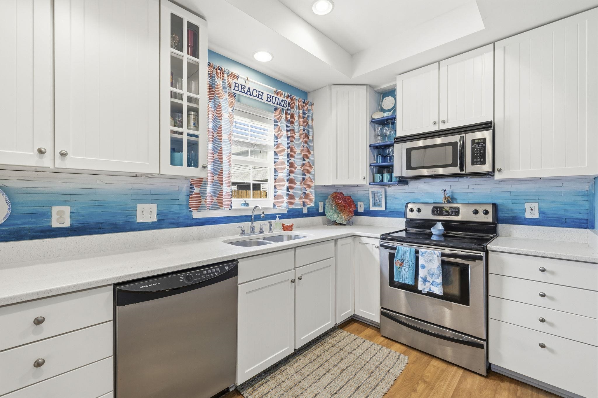 Charming 3-bedroom, 2-bath cottage-style home located in an intimate community, only 0.1 miles from the beach, with a public beach access at the end of the road and golf cart parking available. This inviting home features beautiful chair rail molding throughout, adding a touch of classic character. The vaulted living room creates a bright, open feel, while the stunning Carolina room offers the perfect place to relax and enjoy coastal living. The dining room includes sliding glass doors that open to a private patio, ideal for entertaining or quiet mornings. The kitchen is equipped with stainless steel appliances, and the laundry closet includes a washer and dryer for added convenience. Upstairs youll find an open loft area along with two spacious bedrooms and a full bath, providing comfortable separation of living space. A rear balcony offers another peaceful outdoor retreat. Outside, enjoy an outdoor shower, perfect after a day at the beach. A detached storage shed in the backyard provides additional storage, and the community takes care of landscaping for easy, low-maintenance living. Enjoy coastal living just moments from the sand, dining, and local attractions.
