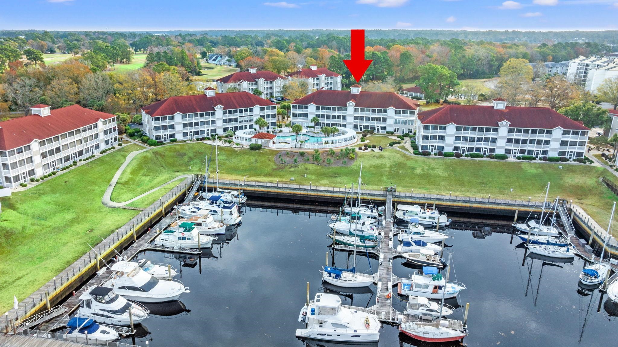 Ideally situated 2nd floor condo overlooking resort-like pool, hot tub and marina. Quiet location to enjoy coffee on the screened in balcony. Two large bedrooms with beautifully updated bathrooms. Enjoy cooking in your well appointed kitchen with granite countertops, stainless steel appliances and stone backsplash. Entertainment is a breeze with the open floorplan and easy-to-maintain FLP flooring. Enjoy the beautiful landscaping and endless walking paths in this well established community! Minutes from Cherry Grove Beach and fine dining is only steps away! Long term rentals are allowed in this lovely community. The harbor below leads to the ICW and into the Atlantic with boat slips available for purchase in the marina.