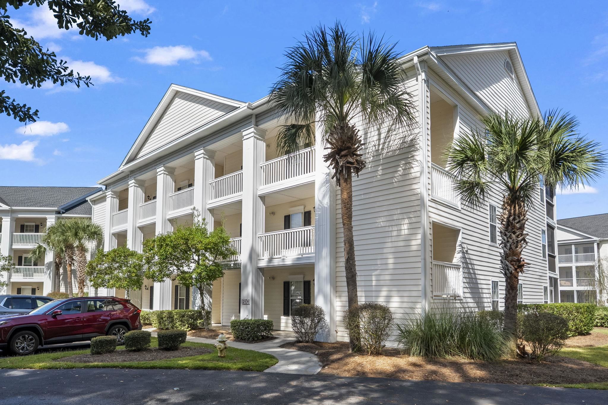 Sun-soaked living spaces and modern finishes make this 3-bed, 2-bath condo an exceptional coastal retreat. The spacious living and dining area features vaulted ceilings and flows seamlessly into the bright kitchen, complete with crisp white cabinetry and a convenient breakfast bar. Luxury vinyl plank flooring runs throughout the home for a clean, modern look, while tile adds durability in both bathrooms and the laundry room. The primary suite offers a relaxing retreat with a walk-in closet, private bath, and direct access to the balconyperfect for enjoying morning coffee or evening breezes. Two additional bedrooms provide ideal space for guests or a home office. Step onto the open balcony and take in peaceful lake views that create a serene outdoor escape. Jasmine Lake presents a true coastal lifestyle with a community pool and clubhouse overlooking the water, and youre just 1.2 miles from the beach. This prime location places you close to restaurants, medical facilities, Surfside and Garden City piers, golf courses, the MarshWalk, the airport, and all South Carolina state parks. Only 90 miles north of historic Charleston, this turnkey condo offers the perfect blend of comfort, convenience, and low-maintenance coastal living. Schedule your showing today and experience it for yourself. Measurements are not guaranteed. Buyer is responsible for verifying.
