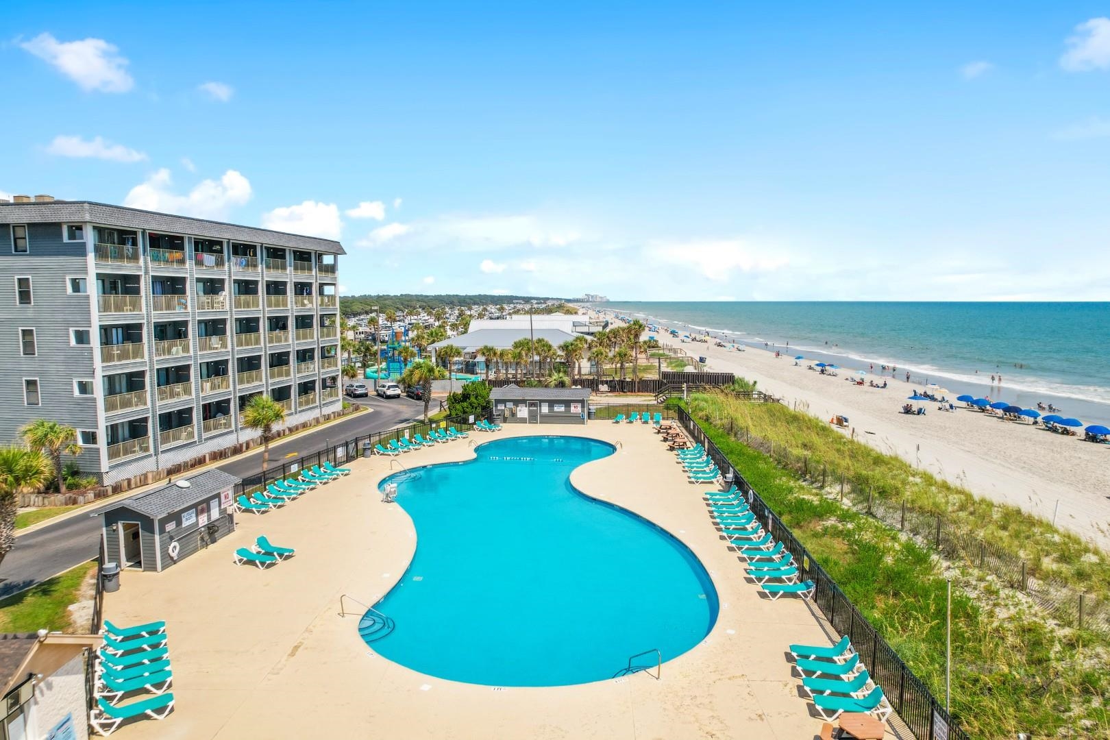 Nestled in the peaceful, wooded Five Seasons section of the gated MB Resort community, this updated 2-bedroom, 2-bath condo offers a quiet retreat just moments from the ocean. It's the kind of place where you can slow down, enjoy the surroundings, and still have all the excitement of beach life right at your fingertips. Inside, the home has been refreshed with a clean, modern look. New durable flooring in soft gray tones runs throughout, complemented by upgraded kitchen cabinets and countertops (2023) that give the space a fresh, functional feel. One standout feature you won't find in many of these units is the addition of overhead lighting and ceiling fans in both bedrooms and the living area---making the space brighter and more comfortable year-round. Both bathrooms have also been updated with new vanities and toilets (2024), and the bedrooms come furnished with brand-new mattresses and box springs (2024), so it's ready to enjoy from day one. The private balcony overlooks a peaceful courtyard, with two of the community's six pools just steps away---an easy spot to relax, read, or wind down after a day at the beach. Set within a 33-acre oceanfront resort, you'll have access to an impressive list of amenities including multiple pools, a lazy river, hot tubs, tennis courts, fitness centers, playgrounds, a game room, and a beachfront bar and grill. Plus, you're just a short walk to direct beach access, making it easy to spend your days by the water whenever you like. Whether you're searching for a low-maintenance getaway, a second home, or a rental opportunity, this condo offers a comfortable and convenient way to enjoy coastal living.