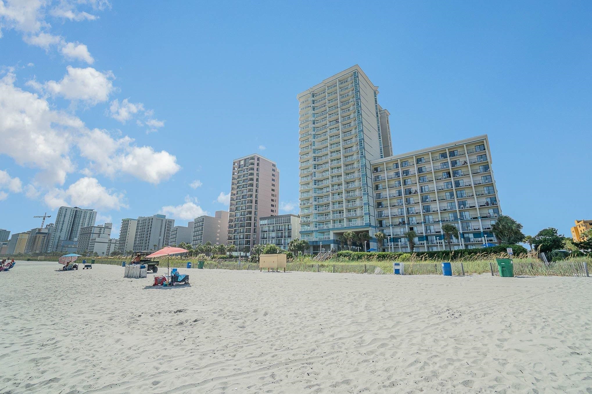 This is a beautiful, sun-filled, fully furnished 1-bedroom, 1-bath ocean view condo in the heart of Myrtle Beach! This updated unit features an open floor plan with tile flooring throughout, and includes a washer/dryer for added convenience. The full kitchen offers granite countertops, all appliances, and a breakfast bar, ideal for casual dining. The spacious bedroom includes a large ensuite bath and a private balcony with stunning ocean views, perfect for relaxing to the sound of the waves. This condo would make an incredible primary residence, investment property or vacation home. Located at the Carolinian Beach Resort, enjoy top-tier amenities including indoor/outdoor pools, a lazy river, hot tub, kiddie pool, and fitness center. Just steps from the beach and minutes to Broadway at the Beach, Topgolf, dining, shopping, and more!