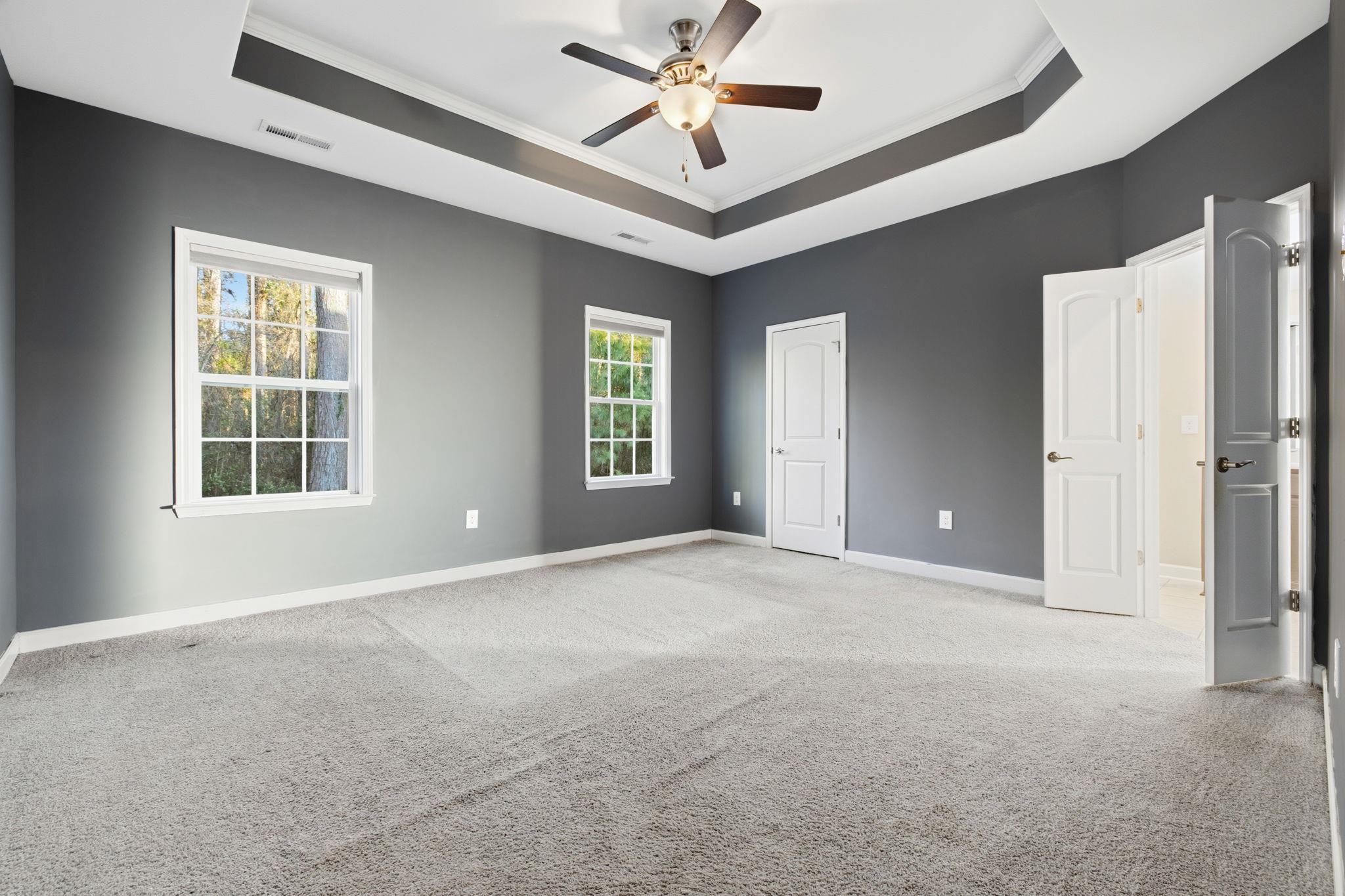 PrimaryBedroom: TrayCeilings, CeilingFans, MainLevelPrimary, WalkInClosets