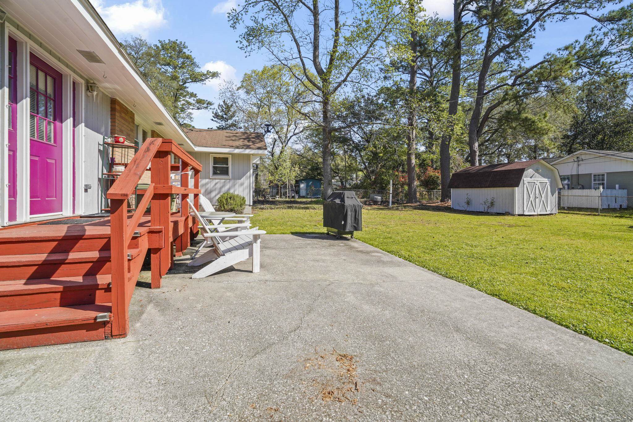 Charming 4-bedroom home situated on a spacious corner lot shaded by beautiful palmetto trees and live oaks. This inviting property features a bright kitchen that flows into a step-down dining area, creating a warm and functional space for everyday living and entertaining. Inside, youll find hardwood floors and classic knotty pine paneling that add character and charm throughout. The laundry room is conveniently located just off the primary bedroom for added ease. Outside, the mature trees provide a peaceful setting, while the fenced backyard with gates offers privacy and flexibility. A storage barn in the backyard adds extra space for tools, hobbies, or equipment. Located just a short distance from the elementary school, this home offers both comfort and convenience.