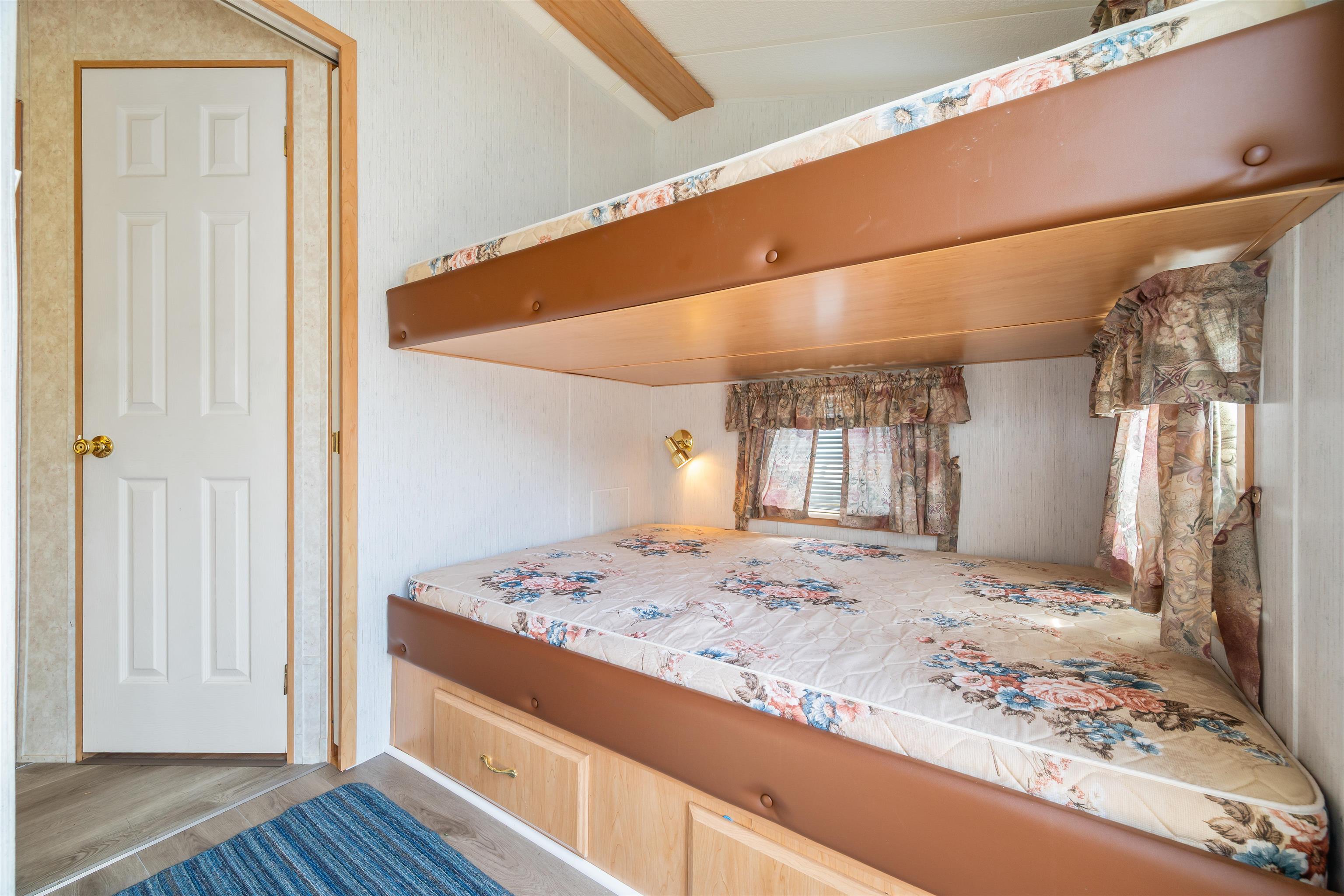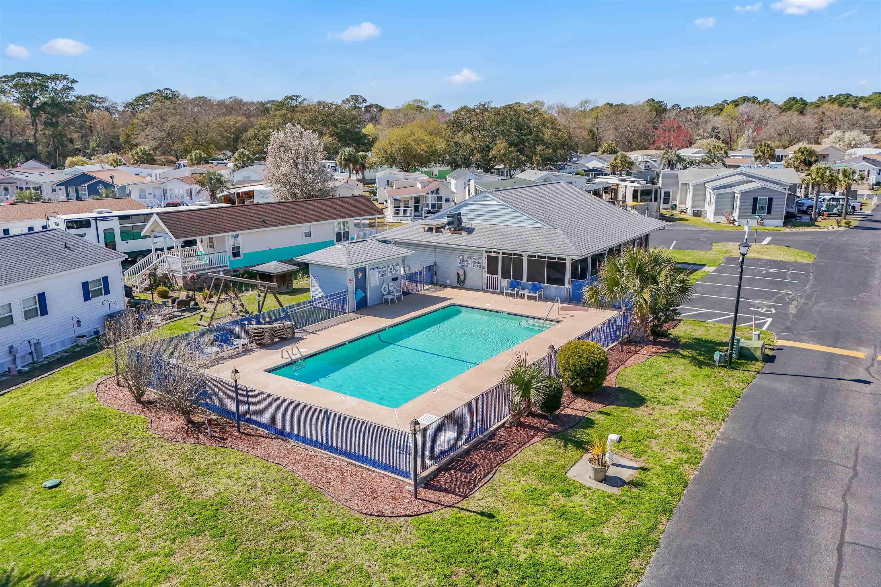 This charming and surprisingly spacious retreat is nestled in the vibrant Myrtle Beach RV resort community. This unique property is on its own deeded land and delivers the feel of a cozy cottage with all the amenities you need, just minutes from the beach. Inside you'll discover a bright, open living area with vaulted ceilings, LVP flooring throughout, and a ceiling fan to keep the coastal breeze going. A charming loft above is accessed by a wooden ladder and provides extra sleeping space or the perfect storage nook for all your beach gear. The well appointed galley kitchen features a gas range, over the range microwave, full sized refrigerator, ample cabinetry with hardware accents, and a full size sink, everything you need to cook up your catch of the day. A built in entertainment center and dining nook make the main living area as functional as it is cozy. The primary bedroom accommodates a queen size bed with built in overhead storage and cabinets, while the second bedroom features built in bunk beds which are perfect for extra guests. The full bathroom includes a single vanity, toilet, and a full tub/shower combo. HOA fees cover cable TV, internet, water and sewer, and lawn service, leaving electric as your only utility expense. Residents enjoy resort style amenities, including a 2 swimming pools, two community clubhouses, a mini golf course framed by swaying palms, tennis courts, pickleball, shuffleboard, corn hole, a fitness center, a new playground, basketball court, a game room and beautifully maintained common areas, including a gazebo with beautiful marsh views. This is a community that knows how to enjoy the good life. Sold with the land, no lot rent! Whether you're looking for a full time residence, a weekend escape, or an investment property, this is beach living at an approachable price point. Your beach getaway awaits!