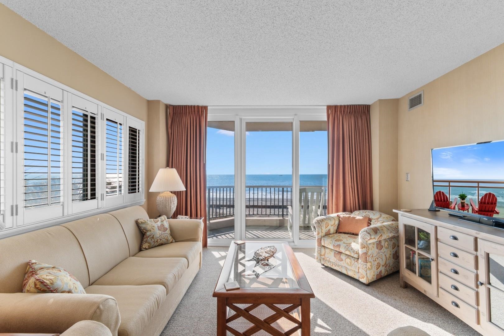If you've been waiting for that just right oceanfront condo---the one that feels special the moment you walk in---this is it. Welcome to a rare 3-bedroom, 2-bath end unit in Carolina Winds, set along the highly sought-after Golden Mile in Myrtle Beach. Opportunities like this don't come around often---especially one that's been lovingly cared for as a second home and never rented. Step inside and you'll notice how bright and open the space feels, thanks to its end-unit location and extra windows. Natural light fills the home, highlighting thoughtful touches like plantation shutters and a kitchen with granite countertops---perfect for gathering and unwinding after a day at the beach. The oceanfront primary suite is where this home really shines. Wake up to sweeping views of the Atlantic Ocean, step onto your private balcony with coffee in hand, and take in miles of coastline. The ensuite bath features a tiled walk-in shower and radiant heated floors for added comfort. The additional bedrooms offer a relaxed coastal feel, making it easy for family and guests to settle in and feel at home. And then there's the balcony---arguably your favorite ""room."" This is where mornings begin, afternoons slow down, and evenings end with the sound of the waves. Beyond your front door, the resort-style amenities at Carolina Winds elevate the experience with indoor and outdoor pools, a lazy river, hot tubs, a fitness center, and direct beach access. Being sold fully furnished, this home is truly move-in ready---ideal as a primary residence, vacation getaway, or investment. All of this, just minutes from golf, dining, shopping, and everything the Grand Strand has to offer---yet tucked into one of the most desirable stretches of beach.