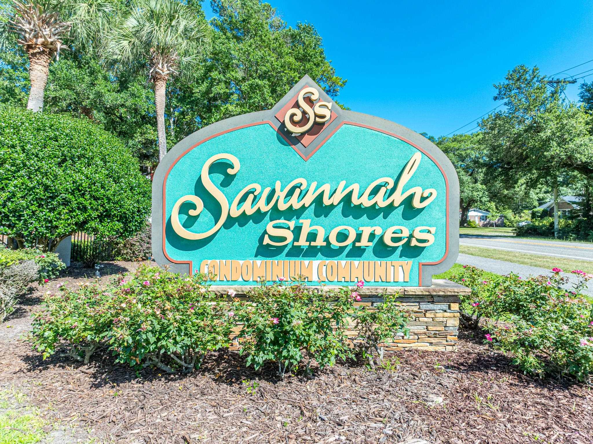 Second floor end-unit, two-bedroom, one bath condo located in the gated community of Savannah Shores. This unit features a welcoming foyer entry, wood and tile flooring. Kitchen is equipped with white cabinets, stainless steel appliances, and a cozy breakfast nook. The living room offers vaulted ceilings with a fan and a fireplace for added comfort. Enjoy the bright Carolina room with picture windows that let in abundant natural light and include a closet for additional storage. The sizable primary bedroom also boasts vaulted ceilings, two picture windows, and a closet. The bathroom has a vanity and a tub/shower combo and is accessible from both the bedroom and the living room. Savannah Shores offers resort-style amenities including a clubhouse, pool, tennis and pickleball courts, putting green, shuffleboard, car wash area, outdoor grilling, playground, fitness center, and golf cart parking. Conveniently located just a short drive to the beach. Square footage is approximate; buyers should verify.
