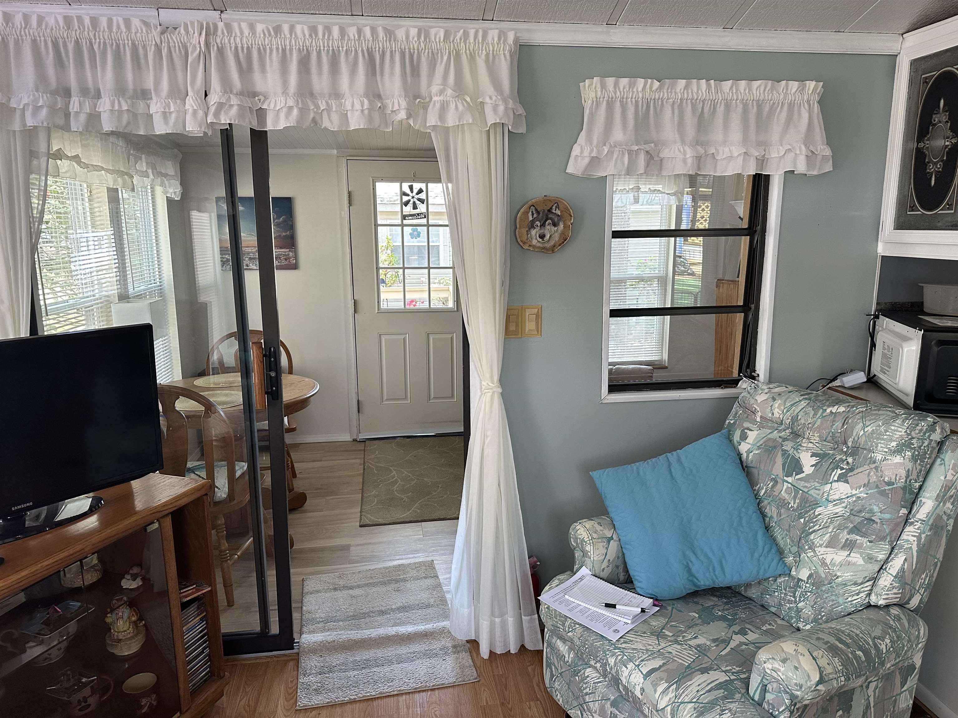 Charming 1992 Mallard park model with Carolina Room addition with a front porch, being sold fully furnished and move-in ready! Unit has a brand new propane gas stove never used and brand new refrigerator. Located just three blocks from the beach - an easy golf cart ride away - in a 55+ community where both electric and gas golf carts are allowed. This well-maintained 1 bedroom, 1-bath home features washer inside the unit for added convenience. Enjoy the relaxed coastal lifestyle with fantastic community amenities including a pool, splash pad for the kids, and a jump pad. Conveniently located close to shopping, dining, and the airport. No short-term or long-term rentals permitted, making this the perfect low-maintenance beach retreat for snowbirds in the winter or beach lovers in the summer. Dont miss this opportunity to own your slice of paradise just minutes from the ocean!