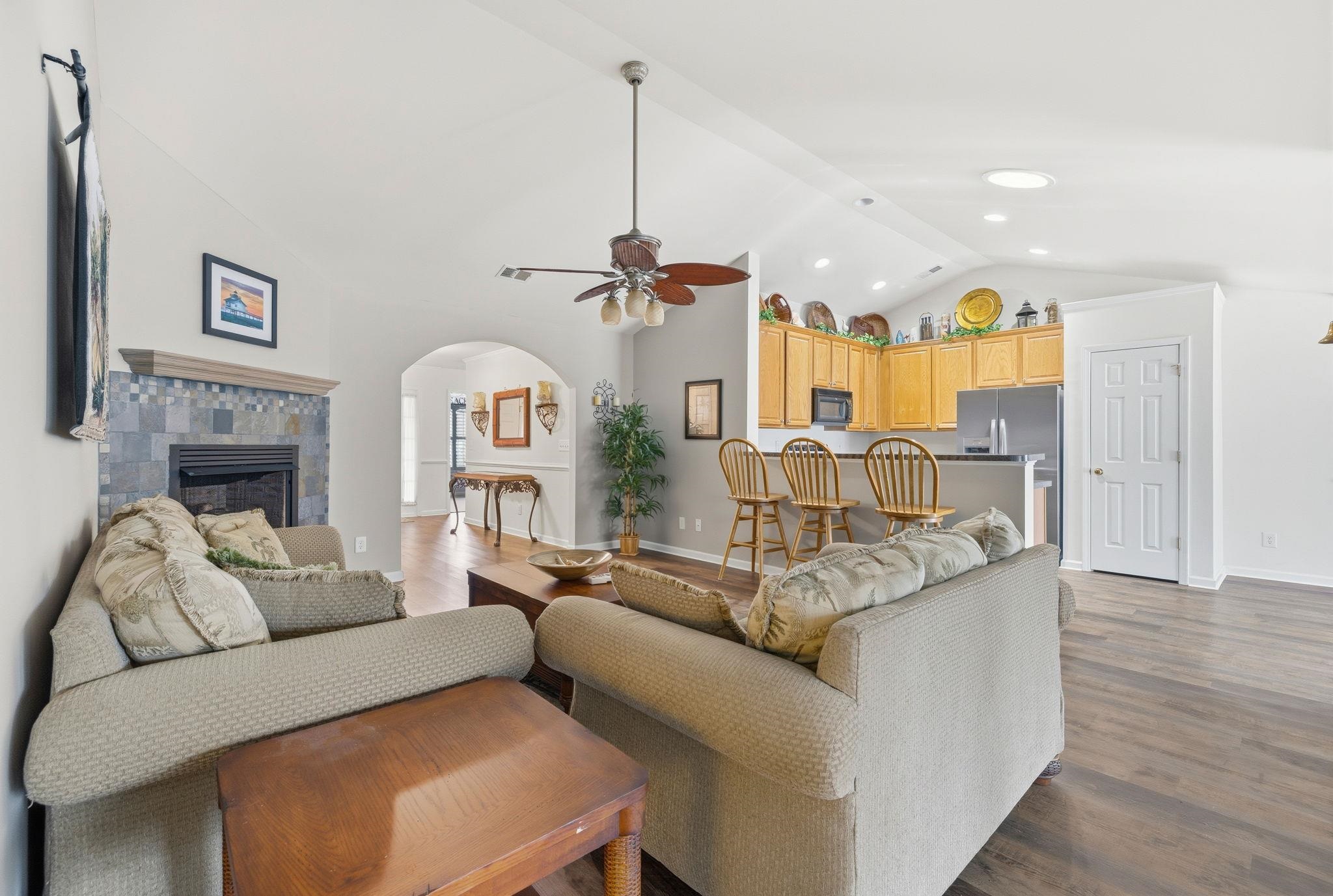 LivingRoom: CeilingFans, Fireplace, VaultedCeilings