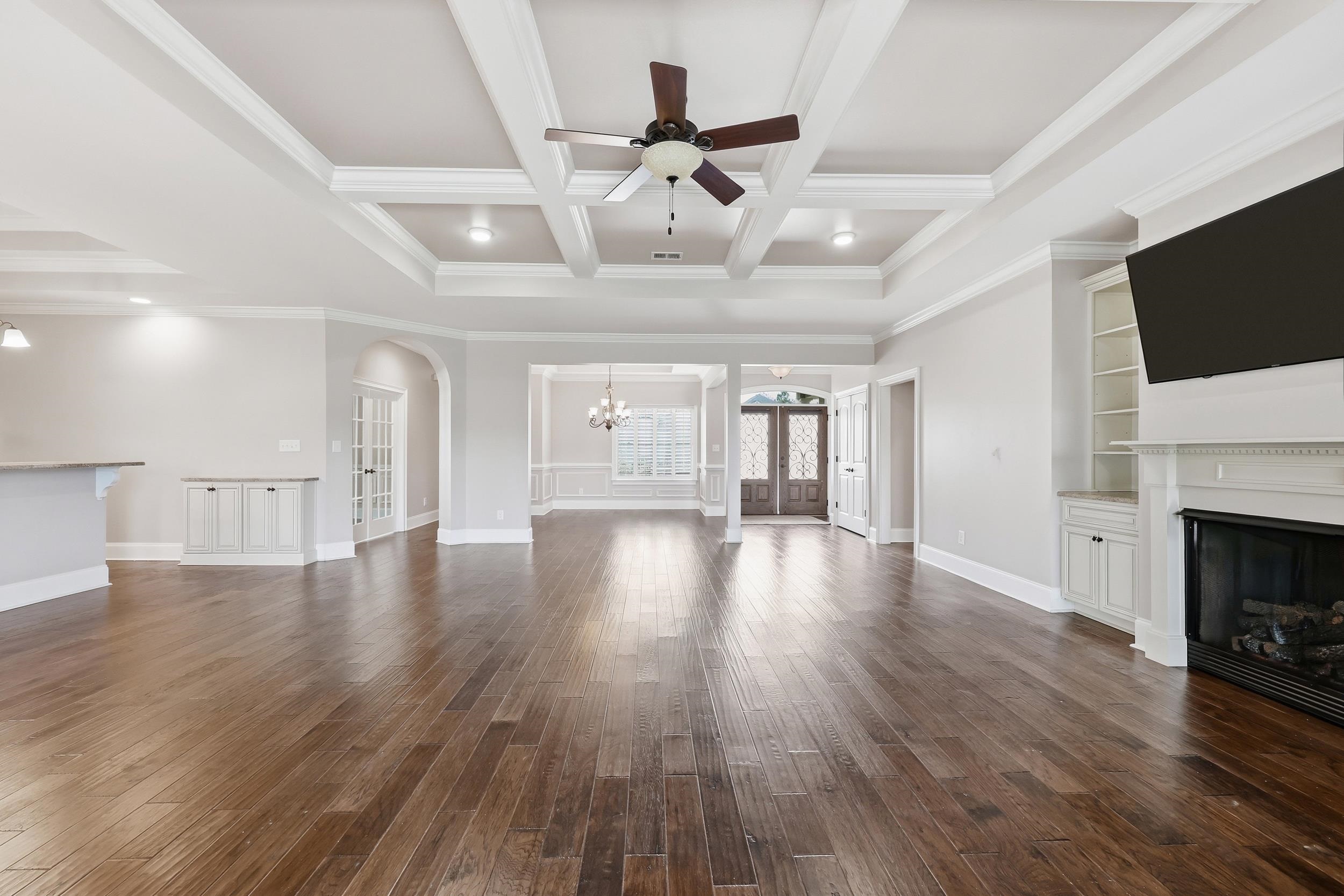 FamilyRoom: TrayCeilings, CeilingFans, Fireplace