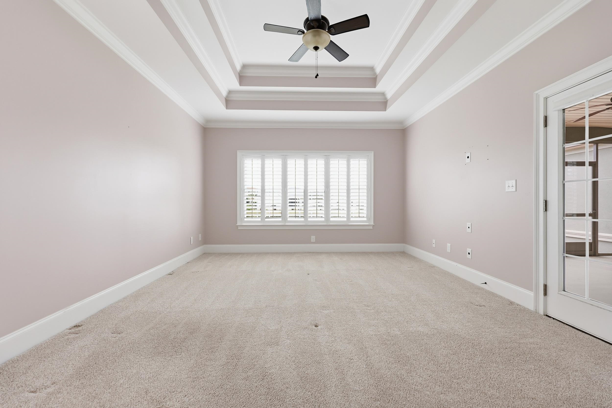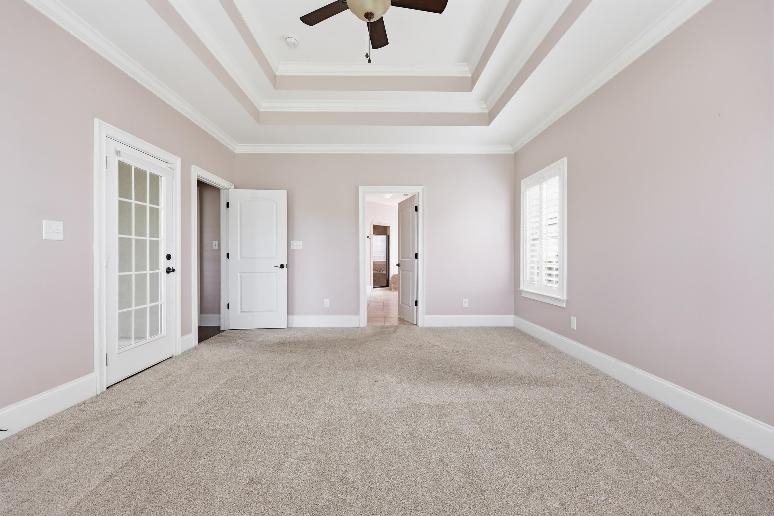 PrimaryBedroom: TrayCeilings, CeilingFans, MainLevelPrimary, WalkInClosets