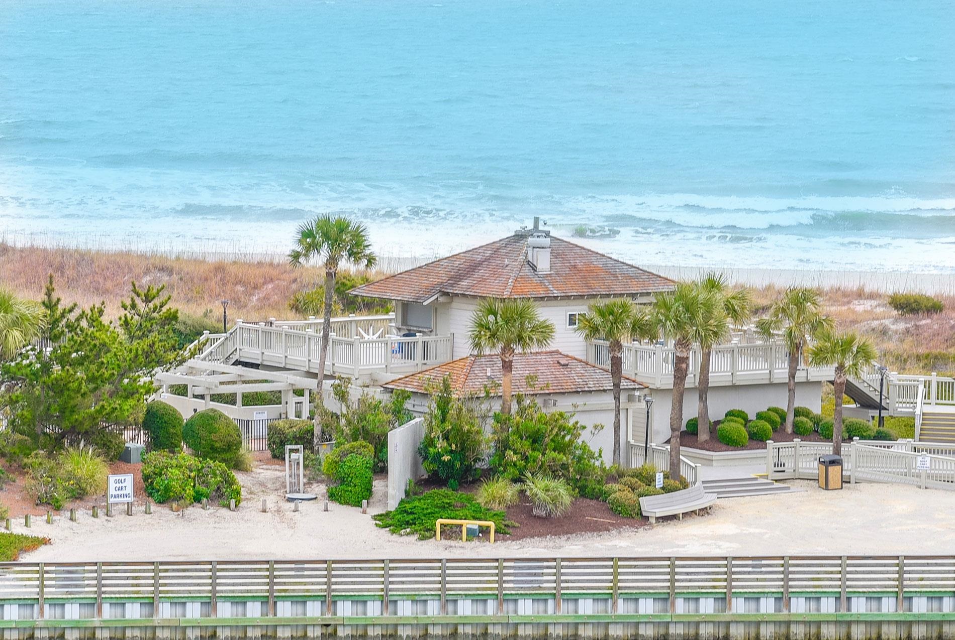 Check out the gorgeous views of the ocean and Ocean Creek from the second floor of Tower South! EE2 was totally and completely renovated in 2018 with new granite throughout, all new cabinets and tile floors, a lighted tray ceiling in the entrance way and beautiful crown molding throughout. Master bedroom has a 50 TV on the wall, a king bed and a new balcony door with screen so you can be lulled into peacefull sleep by the ocean waves. The second bedroom has a pull down queen size Murphy Bed with a comfy upgraded mattress as well as a pull down desk, 6 drawers, a file drawer and shelves for decorating. Another 9 foot granite countertop desk enlarges the hallway and offers lots more storage with cupboards, drawers and places to add your own decorations. The livingroom has a 65 TV on the wall, 2 recliners and the loveseat pulls out into a twin bed. A new furnace was installed in December 2025. All appliances work beautifully, the refrigerator was purchased new in 2022, and the washer/dryer in 2018. Enjoy your ocean view with lots of palmtrees and greenery while you rest in one of the plush thick cushioned chairs with adjustable backs or in the matching glider/rocker love seat on the balcony. This condo was not a rental and the owners occupied it less than 50% of the time so the unit and contents are in very good and clean condition. Its well equipped to start you out with dishes, pots and pans, and silverware. Bring your own bedsheets, blankets and towels. Everything you see in the pictures goes with this unit. Come and make memories and friends in the South Tower at Ocean Creek Plantation! Immediate occupancy.