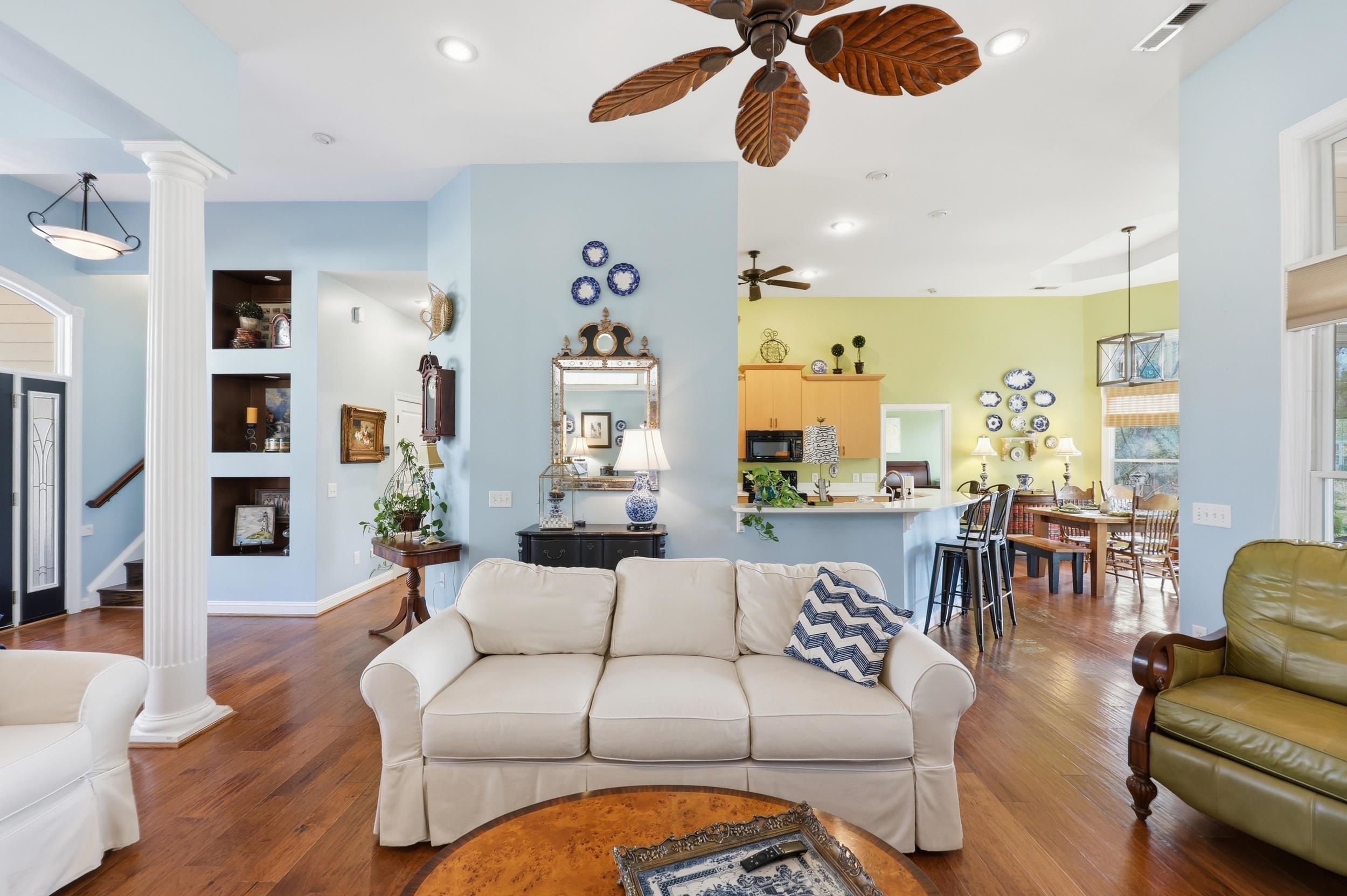 Beautiful 3BR 2.5BA Lowcountry style home in Tidewater Plantation featuring rare pond views and a private wooded setting. Enjoy peaceful water views from the living room, breakfast area, screened porch, and main level primary suite. Open floor plan with vaulted ceilings, engineered hardwood flooring, crown molding, and a fireplace with gas logs. The kitchen offers 42 cabinetry, two pantries, excellent storage, and flows seamlessly into the main living spaces. The primary suite is located on the first floor and includes dual closets and a spacious bath with convenient access to the oversized laundry room. Upstairs provides flexible space ideal for guests, plus additional storage including a climate controlled bonus room. Additional features include Andersen low E windows, central vacuum system, large covered front porch, screened in lanai, irrigation system, two car garage, dual HVAC units. Located in a 24 hour gated golf community offering pools, tennis courts, fitness center, on site dining, and private oceanfront beach cabana access. Just minutes to the beach!