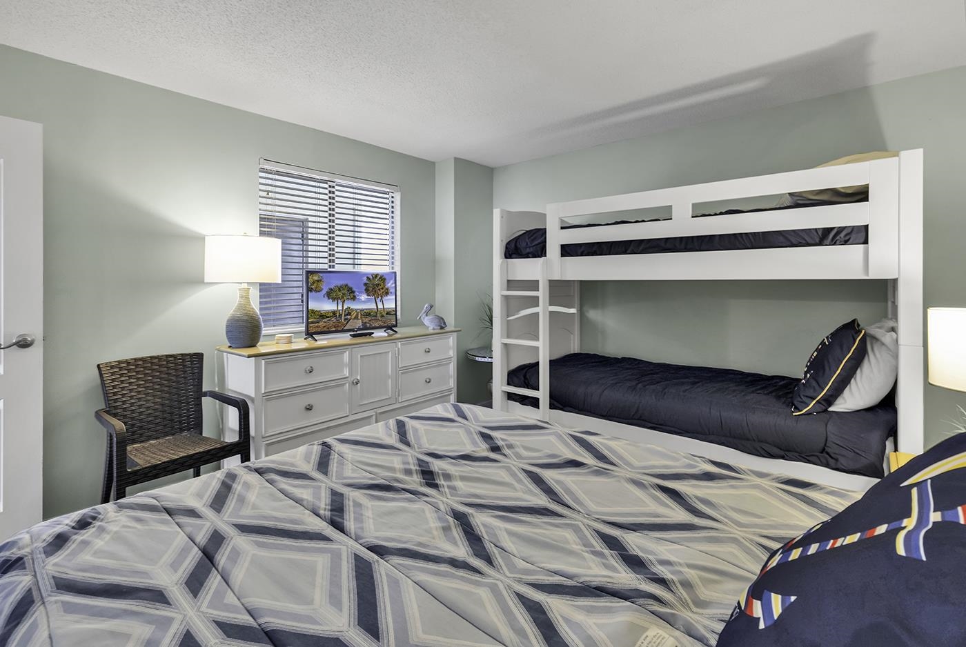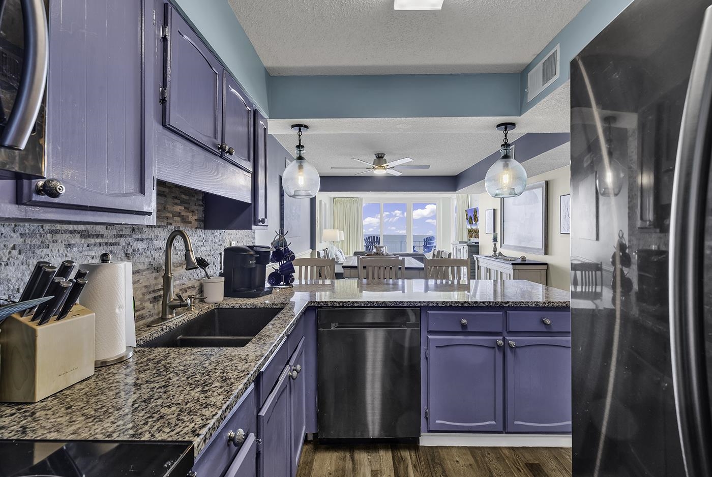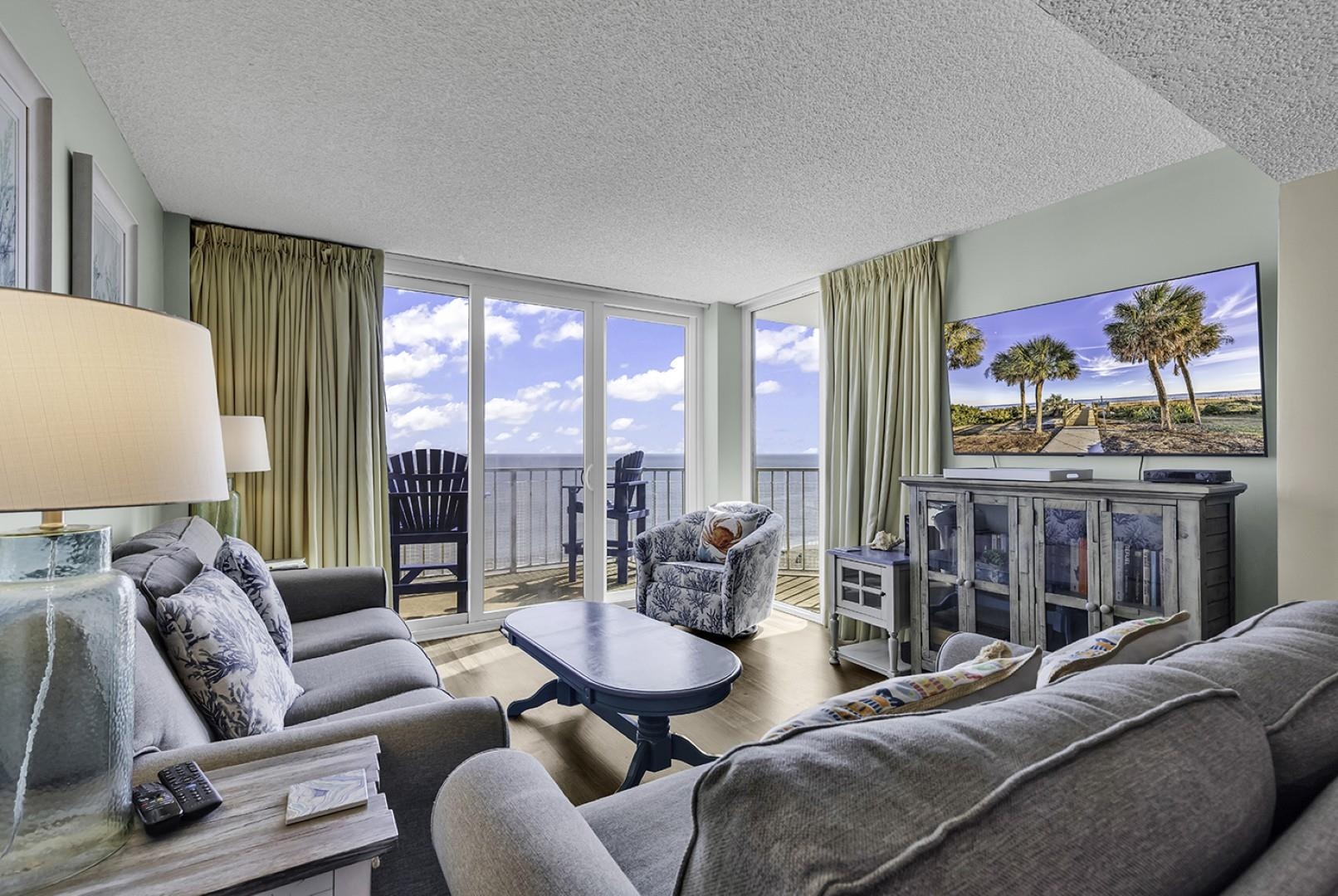 Experience coastal living at its finest in this stunning oceanfront, top-floor condo in the highly sought after Windy Hill section of North Myrtle Beach. Perfectly positioned less than a mile from Barefoot Landing, you're just minutes from premier shopping, dining and entertainment along the Intracoastal Waterway, offering everything from waterfront restaurants and live music to summer fireworks and year round events. This fully furnished, turnkey unit is designed for both relaxation and smart investment. What truly sets this property apart is its rare and highly versatile lockout design- giving you the flexibility to use or rent it as a 3 bedroom, 2 bedroom or 1 bedroom configuration. Whether you're maximizing rental income, hosting guests, or enjoying a private retreat, this layout adapts beautifully to your needs. The lockout suite includes its own kitchenette, creating the perfect setup for multifamily stays or dual rental opportunities. Step out on your partially covered oceanfront balcony and take in the expansive coastline views--enjoy sunrise while sipping your coffee in the shade or unwind in the evening with the sound of waves and a sky full of stars. The spacious primary suite features private balcony access, offering a peaceful escape with breathtaking views anytime of the day. Whether you are searching for a second home, investment property, or the perfect blend of both--this oceanfront gem delivers.