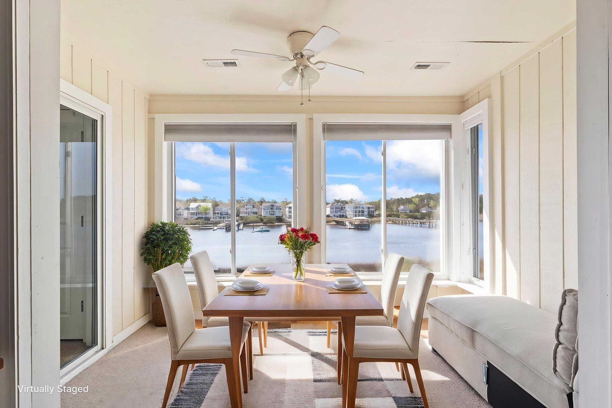 This stunning top floor 2 bedroom, 2 bath condo is all about the views, natural light, and easy coastal living, and it is priced to sell. Perfectly positioned along the Intracoastal Waterway, this home is filled with beautiful sunlight that reflects off the water and pours into the living spaces. The updated kitchen features granite countertops, all white appliances, and stylish cabinetry, seamlessly opening into a bright and spacious living area complete with a custom granite topped bar, perfect for entertaining. Just off the living room, you will find a fully enclosed Carolina Room, offering a cozy, sun drenched retreat ideal for morning coffee, reading, or simply relaxing while taking in peaceful views of boats, marshland, and wildlife. Both bedrooms are generously sized with ample closet space, while the primary suite is privately tucked away in the back of the unit, creating a quiet escape with serene water views and its own sitting area. The primary bedroom also features sliding doors that lead directly into the Carolina Room, offering easy access and a seamless indoor outdoor feel. Additional highlights include a washer and dryer, plus a convenient outdoor storage closet right outside the unit, perfect for golf clubs or beach gear. Located in the friendly Spinnaker Bay community, you are just steps from East Port Golf Course and only minutes from restaurants, beaches, and all the attractions of the Grand Strand. Residents also enjoy access to a community pool, perfect for cooling off and unwinding. If you have been searching for low maintenance waterfront living with charm, comfort, and unbeatable views, this is one you do not want to miss. Do not miss your opportunity to own your own piece of paradise!