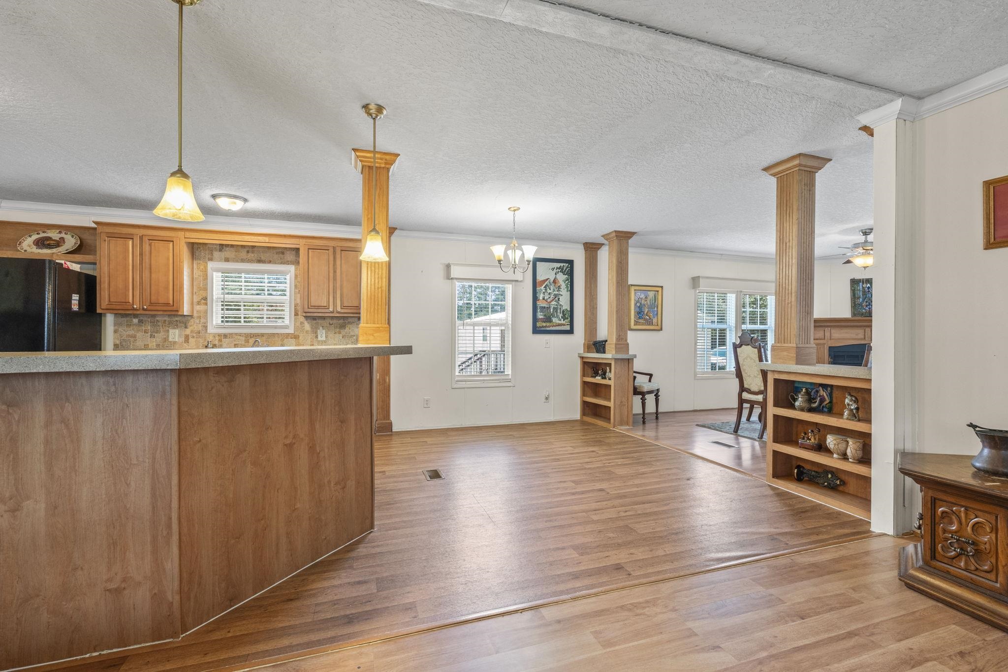Welcome to 911 Old Magnolia Drive at Carolina Tides (formerly Conway Plantation)! This spacious 4-bedroom, 2-bath home is located in a well-kept manufactured home park with exciting new amenities on the way! From the welcoming screened-in front porch to the open living spaces inside, this home is designed for comfort and entertaining. The formal living area flows into an open kitchen with a center island/bar, and a dining area with an LP gas fireplace. Off the kitchen, a breakfast nook offers the perfect spot for casual meals. The impressive primary bedroom, measuring 18' x 12.8', offers plenty of space for relaxation and privacy. It features an ensuite bath with double sinks, a custom-tiled walk-in shower, and a large walk-in closet. On the opposite side of the home, three additional bedrooms share a spacious second bathroom. The third bedroom, previously a bonus room, has its own side entranceideal for guests, a home office, or studio. Carolina Tides offers on-site management, a community pool, and upcoming amenities including a fitness center, expanded pool deck with grilling area, multi-use court, dog park, firepit, game patio, and more! Conveniently located just minutes from CMC Medical Center, Coastal Carolina University, and a short drive to historic downtown Conwayplus, you're only 20 minutes from the beaches and attractions of the Grand Strand! The lot lease includes trash pickup and amenities. Come see all that this community has to offer!