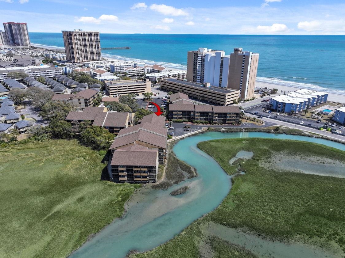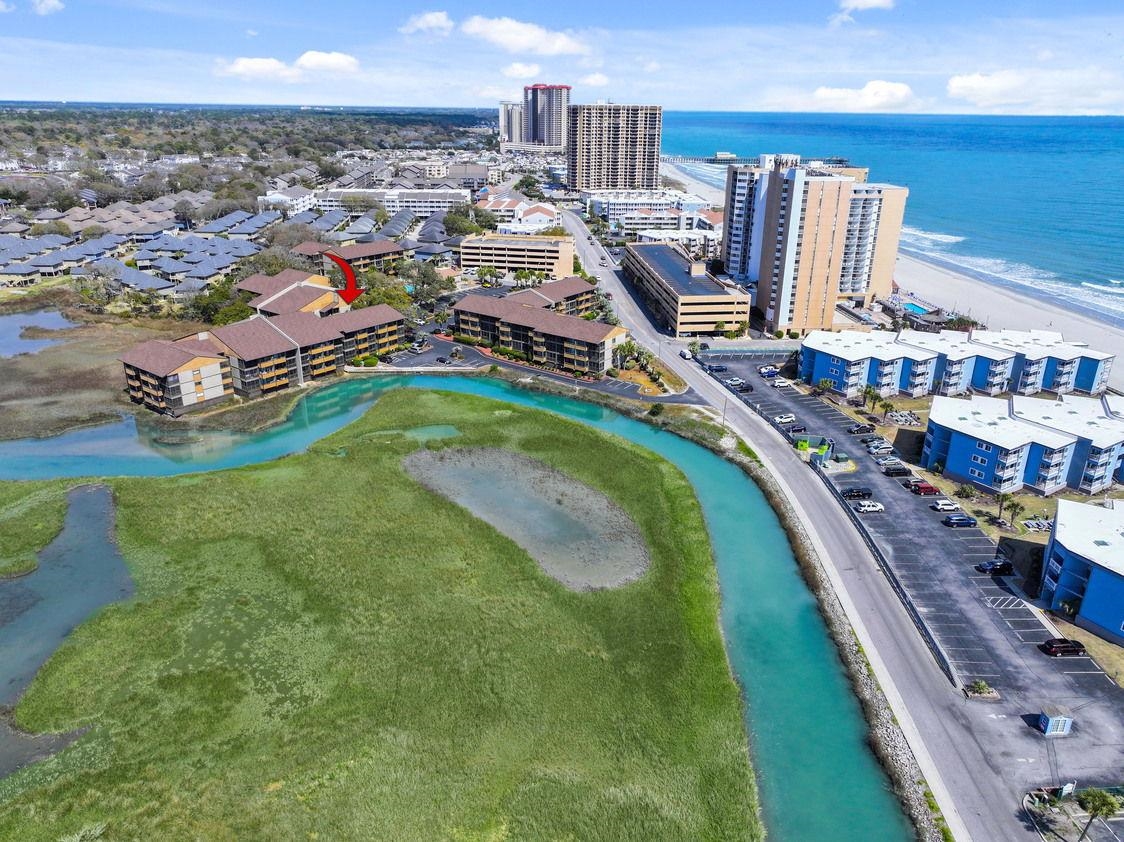If you are ready for some fun in the sun, take a look at this wonderful, well maintained 2 bedroom 2 bath condo in the Mariners Cove complex, only steps from the white sandy beach. This condo features laminated wood, tile & carpet flooring, smooth flat ceilings, crown moulding, stylish furnishings, and a living/dining room combo with a sliding glass door that opens up to the specular marsh view from your screened balcony. The family friendly kitchen is equipped with a stainless steel appliance package, quartz counter tops, tile back splash, ample cabinet spaces, and a delightful breakfast bar. The primary bedroom showcases a sliding glass door that opens up to the private primary bedroom balcony the limited ocean views, closet spaces, access to the primary bath hosting a single sink vanity, a comfort station, and a classic step-in shower. This peaceful condo is completed with an additional bedroom, a full guest bath, a laundry closet with a stackable wash & dryer, and extra closet spaces. This condo affords you easy access to the beach and golfing along with all of the other activities and happenings in Myrtle Beach including fun eateries, award winning off-Broadway shows, public fishing piers, and intriguing shopping adventures along the Grand Strand. Conveniently located to your everyday needs, including grocery stores, banks, post offices, medical centers, doctors offices, and pharmacies. Check out our state of the art 3-D Virtual Tour. Floor plans are generated from a virtual tour camera and are for estimate purposes only. Square footage is approximate and not guaranteed. Buyer responsible for verification of all information.