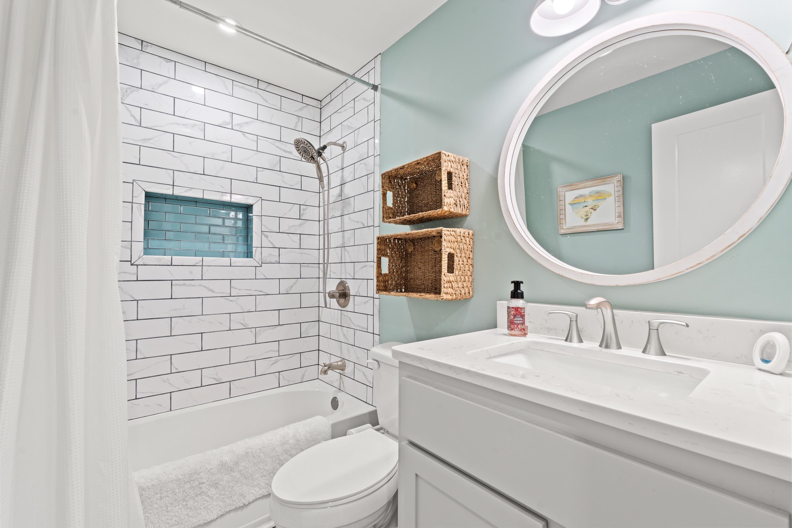 This could be your home at the beach! Beautifully updated and meticulously maintained this 2BR/2BA end-unit condo on the 3rd floor is in a boutique building with only 24 units. Located directly across the street from the beach with easy public access and outdoor showers. Enjoy ocean views from the bright primary bedroom that has an en suite bath. Remodeled in 2022 with updates and new furnishings, including a sectional sleeper sofa for additional guests. Kitchen upgrades feature stainless steel appliances and granite countertops. Both bathrooms updated with new vanities, toilets, lighting, fixtures, and flooring. Primary bath has tiled shower with glass doors; guest bath has tub/shower with tiled walls. Additional improvements include new interior doors, hardware, cabinet knobs, light fixtures, and ceiling fans in both bedrooms. Honeycomb blackout shades offer options of full view or total privacy. Full-size washer/dryer. HVAC and ductwork were replaced June 2025; living room and primary bedroom windows were recently replaced Feb 2026. The building offers a pool with sun deck and elevator. The private ground floor storage room is not your ordinary closet style, but a large room that's ideal for pool and beach gear and anything else you may want to store. Close to shopping, restaurants and just a short walk to the point with ocean & marsh views. Nearby is a nature preserve with walking trails. Ideal as a second home, investment property, or primary residence.
