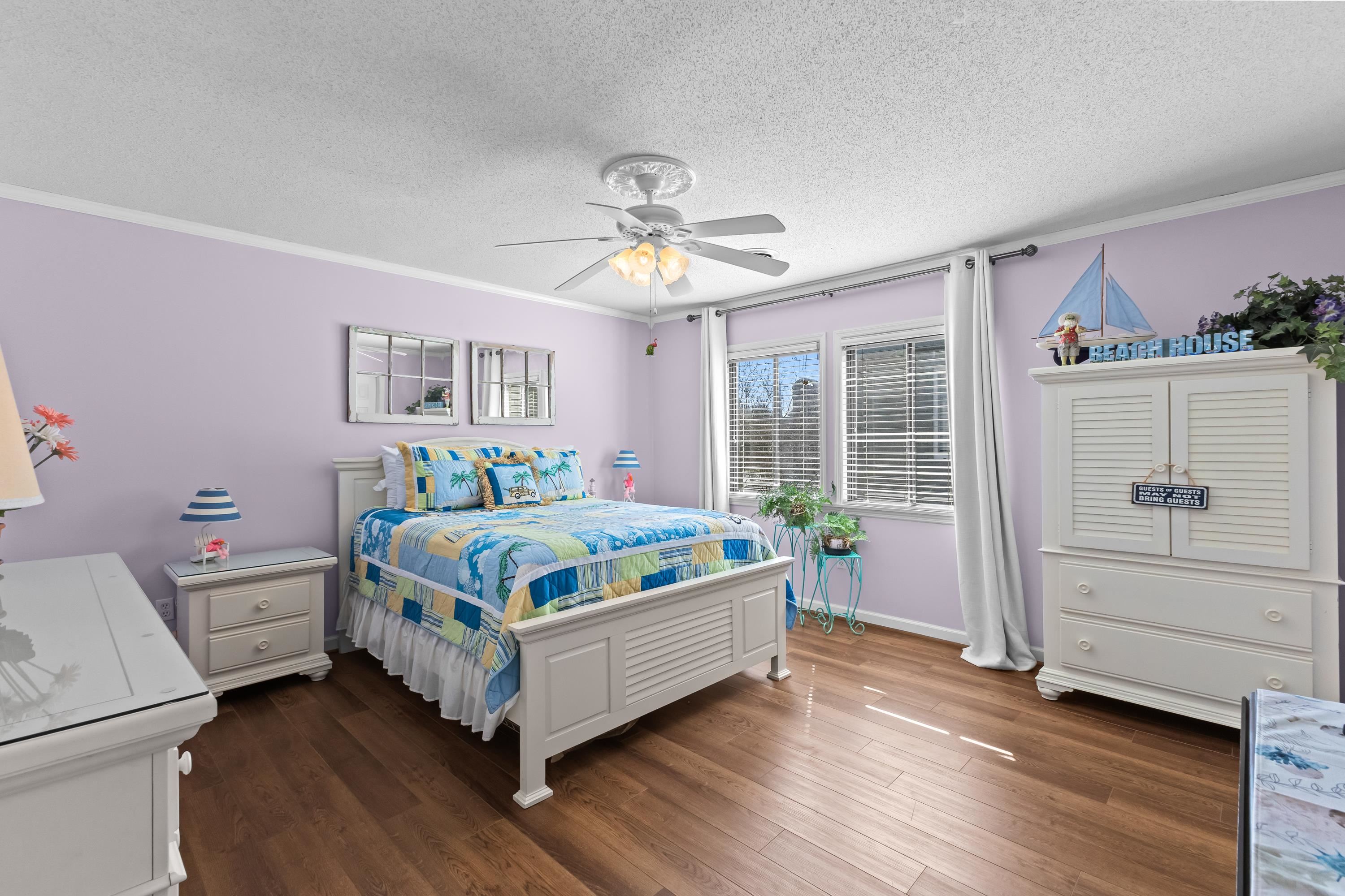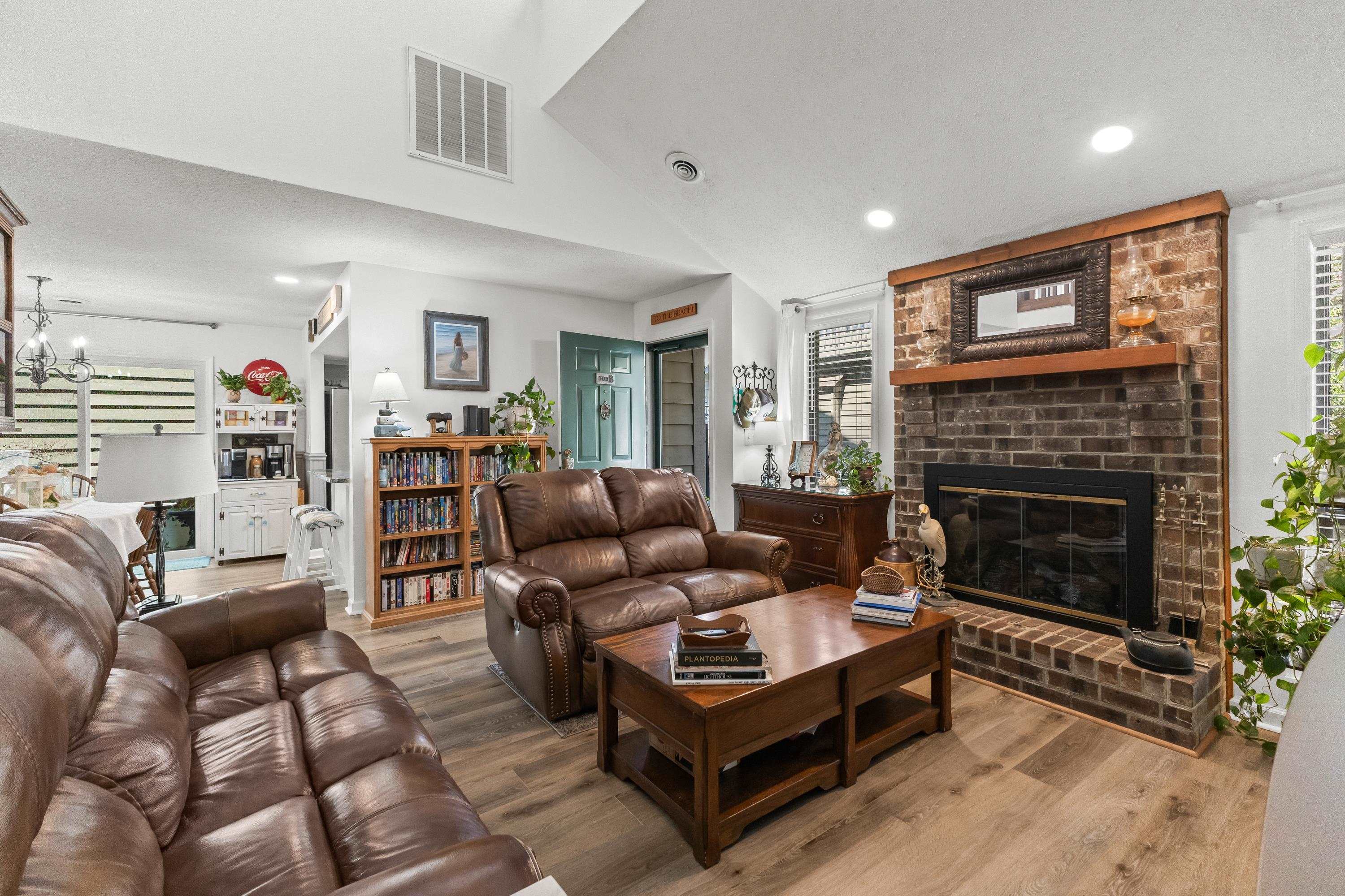 Just a short walk to the beach in the heart of North Myrtle Beach, this inviting 3-bedroom, 2-bath home perfectly combines comfort, style, and an unbeatable location. Enjoy easy access to popular restaurants, shopping, and grocery storesall reachable by golf cart. Inside, the spacious living area features soaring vaulted ceilings and a cozy fireplace, creating a warm and welcoming atmosphere. The updated kitchen boasts granite countertops and stainless steel appliances, ideal for both everyday living and entertaining. The primary suite is conveniently located on the main level and includes a walk-in closet and private en suite bath. Upstairs, youll find two additional bedrooms, one of which offers its own private balconyperfect for catching the coastal breeze. Step outside to a generous patio space with endless potential for entertaining, relaxing, or designing your own outdoor kitchen, making this home a true coastal getaway.