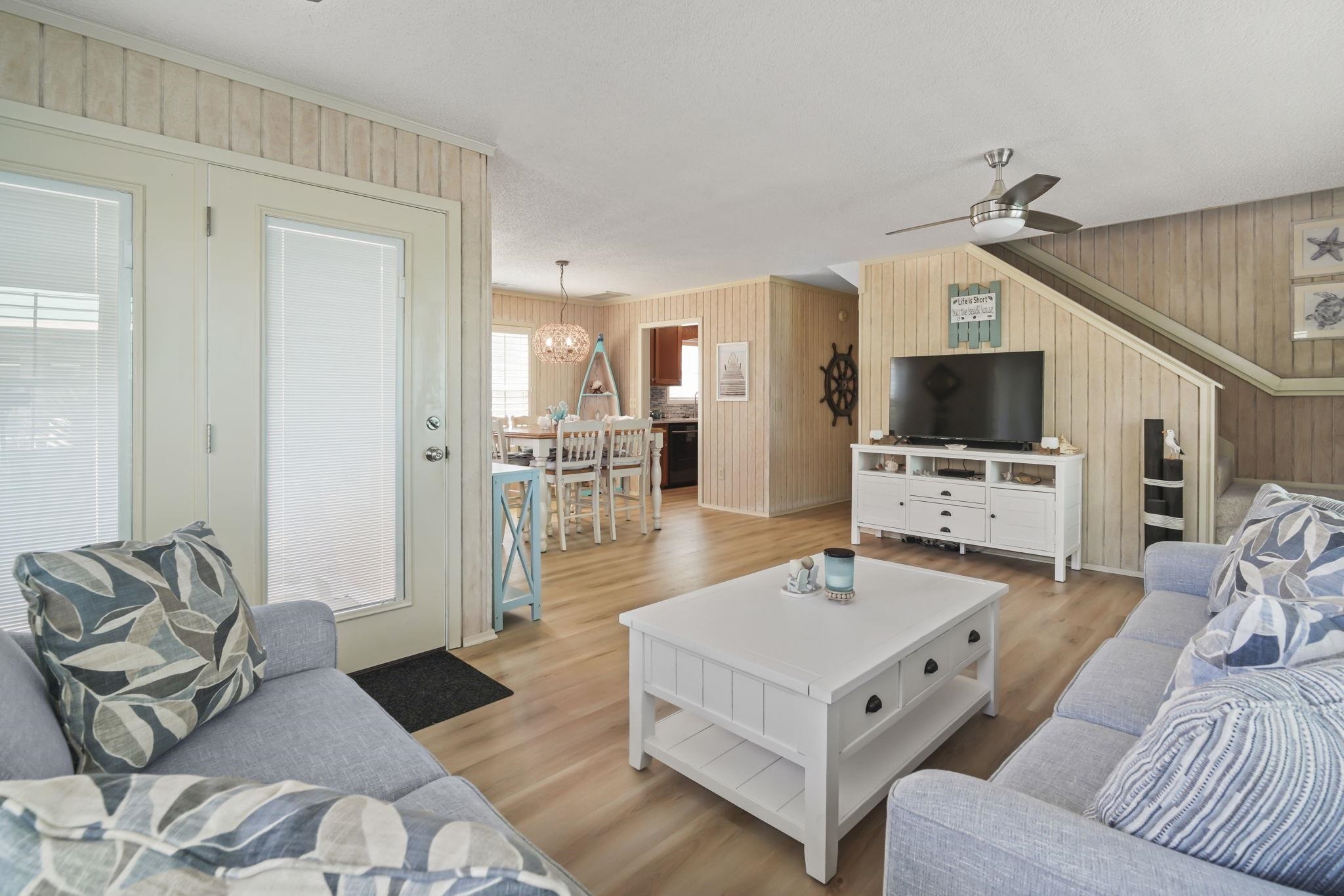 Experience coastal living at its finest in this move-in ready raised beach house in Surfside Beach, offering 3 bedrooms, 2 full baths, and 1 half bath, all with beautiful ocean views. This well-maintained home has been thoughtfully updated with a new HVAC system, fresh interior paint, new furniture, new toilets, and a completely renovated primary bathroom, giving you peace of mind and modern comfort from day one. The elevated design captures coastal breezes and scenic views, while the open-concept living area is filled with natural light, perfect for relaxing or entertaining. Step outside to enjoy ocean views from your deck, ideal for morning coffee or evening unwinding. The spacious layout includes a comfortable primary suite, along with two additional bedrooms for family or guests. The raised construction also provides ample covered space underneath for parking, storage, or outdoor gatherings. Just behind the home, enjoy convenient access to the community pool, perfect for cooling off after a day at the beach or spending time with guests. Located just steps from the beach and a short drive to all the dining, shopping, and entertainment of Myrtle Beach, this home is perfect as a primary residence, vacation getaway, or investment property.