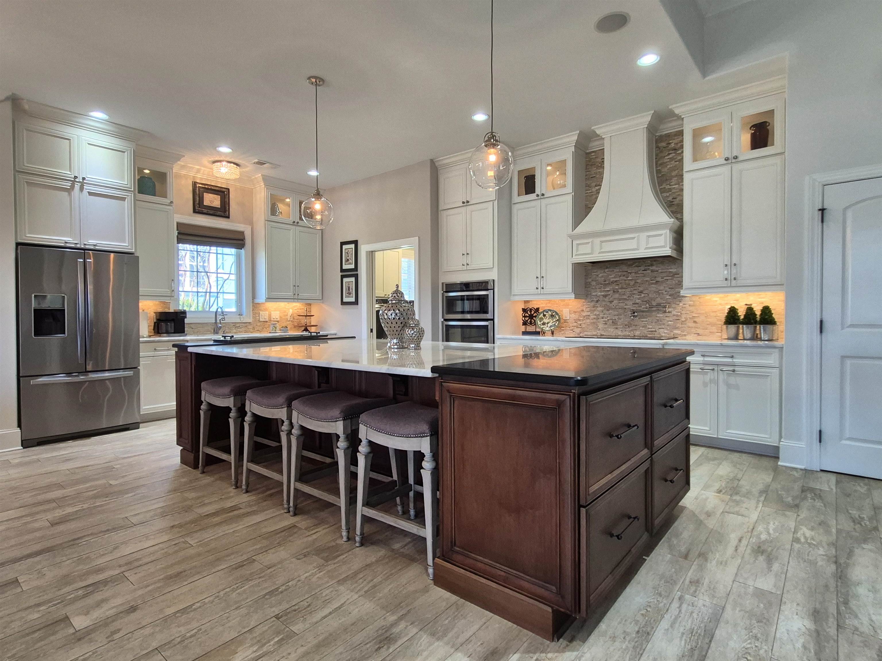 Enjoy single-level living at 8004 East Bay Court, a meticulously designed and maintained 3100+ square foot, 4 bedroom/2.5 bath home in the exclusive Waterway Palms Plantation, a gated Intracoastal Waterway community. On a perfect cul-de-sac and pond lot with an incredible view of the large pond, this house delivers on every level. Upon entering the impressive 8.5' tall double doors into the foyer, with its soaring ceiling, you're greeted with an expansive view through the great room and Carolina room. The great room is spacious and open, with coffered and tray ceilings delineating the spaces, and wood-look tile floors to pull it all together. The focal point of the living area is the elegant fireplace, perfectly framed by its marble surround and molding that merges with the coffered ceiling above. The Carolina room is open to the living area and boasts three large windows, flooding the house with light. The adjacent dining area is grounded by three more large windows, with two chandeliers hanging from the tray ceiling, and a picture-frame molding accent wall. The kitchen has an immense 11' x 5' breakfast bar/work island, with ample cabinetry, and a wide expanse of white Calcutta-like quartzite and black granite bookends on the island with book shelves on one end and a bank of drawers on the other. Built-in stainless appliances, a custom range hood, and lighted glass cabinetry to the ceiling complete this beautiful and efficient work space. And the pantry - this walk-in pantry is definitely up to the job of organizing all of your kitchen needs, and even has a closet within to hide your cleaning supplies. The screened porch is accessed by a glass door from the dining area, and has a stunning view of the pond plus another fireplace, raised to table height, within a stone surround. There's a built-in Napoleon propane barbeque with a separate searing grill and a granite counter in the fenced backyard to facilitate family meals either on the porch or on the generous paver patio. Back in the house, there are three bedrooms on the first floor and a bonus room/bedroom with it's own half bath on the second floor. The primary faces the back of the home to take advantage of that fabulous pond view and has five windows - three on the back wall and two others framing the bed. The adjoining bath has two sinks, each in its own cabinetry, and an open tile shower with a linen closet facing it, so you don't have to go far to grab a towel. The walk-in closet has plenty of hanging space, plus dedicated shelving for shoes and purses. Two guest bedrooms, each with large closets, are tucked on their own hallway and share a full bath. Off the kitchen lies the laundry room, with a convenient sink, more cabinetry and a marble-look quartz counter, plus a double-door closet. The stairs to the light-filled bonus room, which has it's own bath, are off the laundry room. The two-car garage has flooring tiles throughout, and is well-organized with hanging storage and an additional closet. Waterway Palms Plantation has resort-quality amenities, with an impressive clubhouse, a gym, tennis courts (currently being refurbished), a playground and a pool complex, with gazebos overlooking it all. There's a community boat ramp with day docks and boat storage, taking advantage of the community's unrivalled location on the ICW. The neighborhood is located within minutes of shopping, restaurants and hospitals, in the desirable River Oaks Elementary/Ocean Bay Middle/Carolina Forest High School attendance area, and about ten minutes to the beach and attractions of Myrtle Beach.