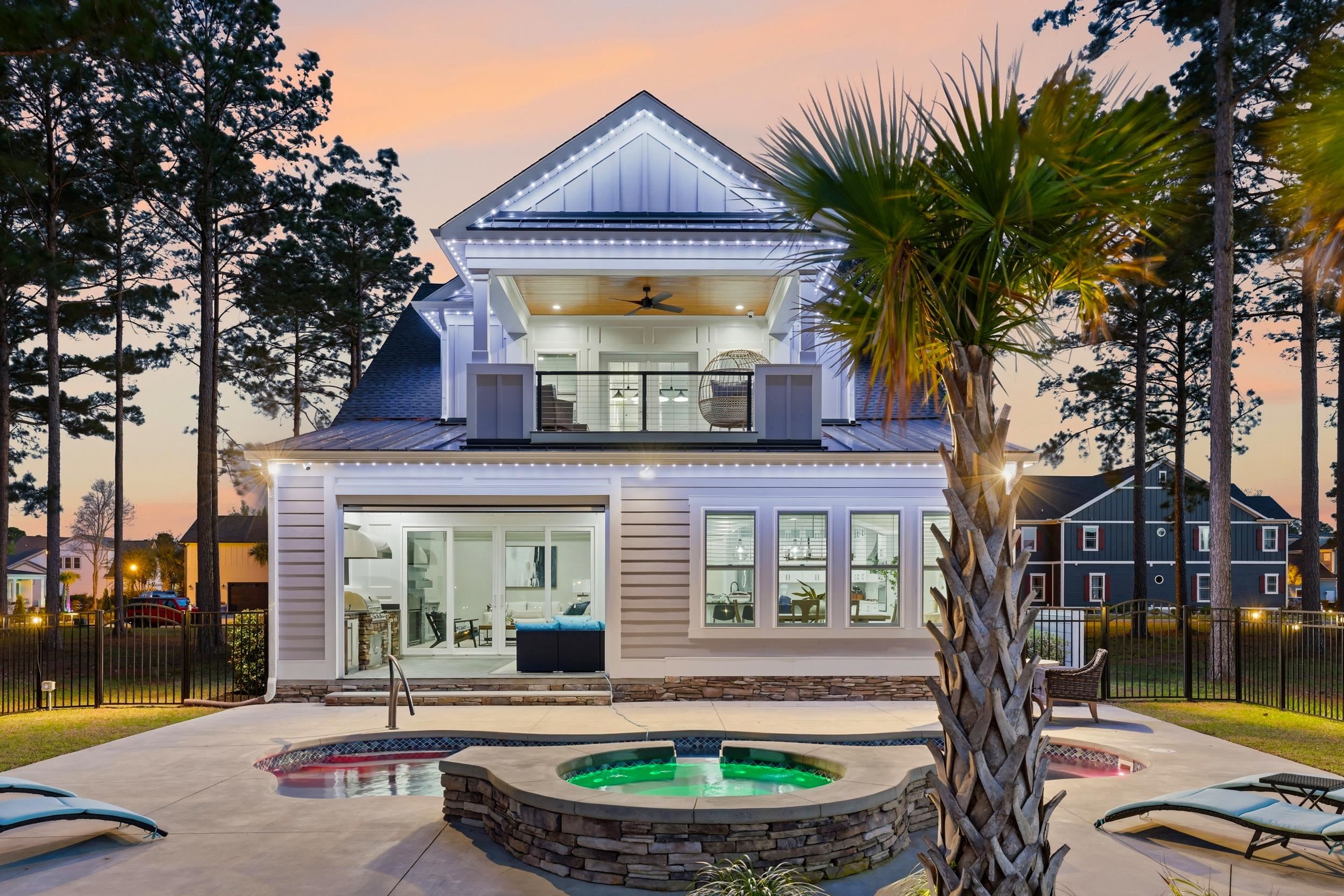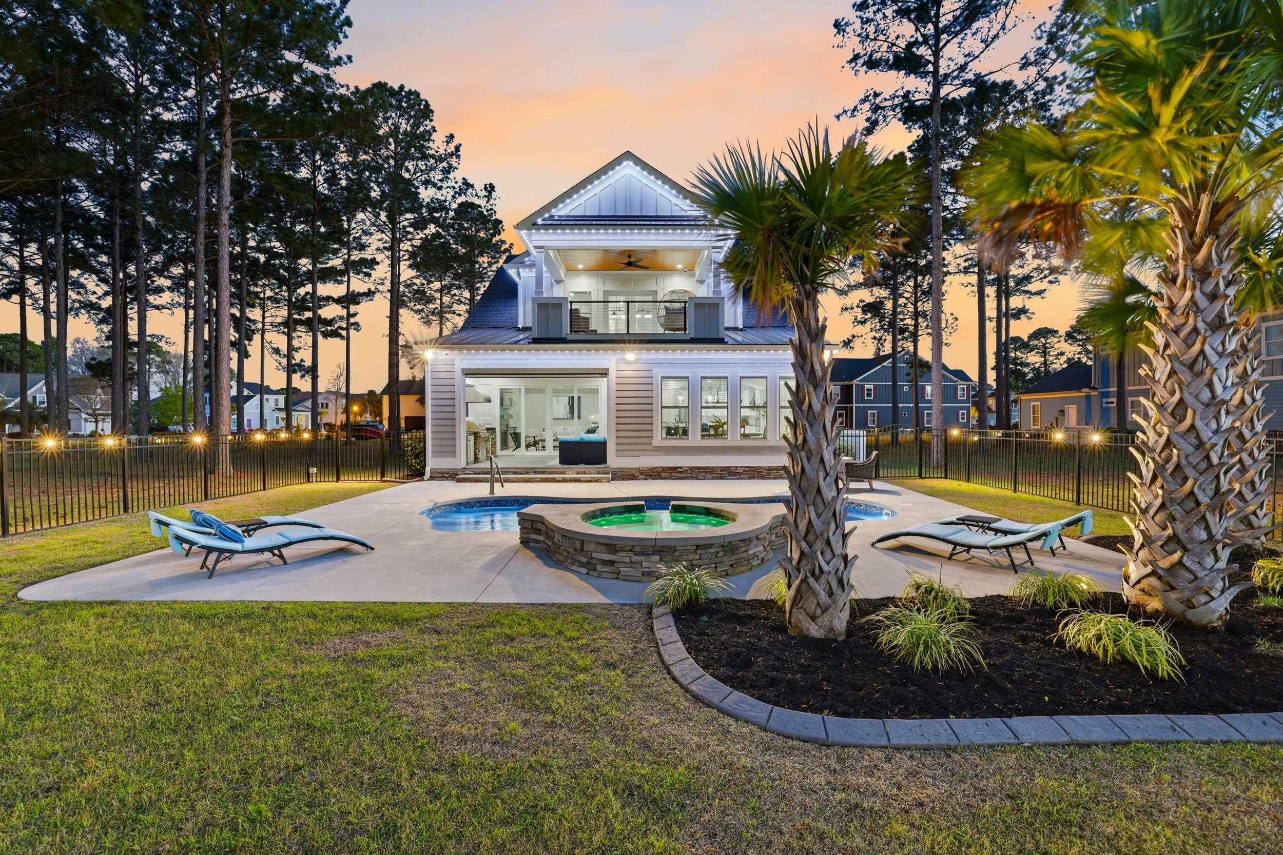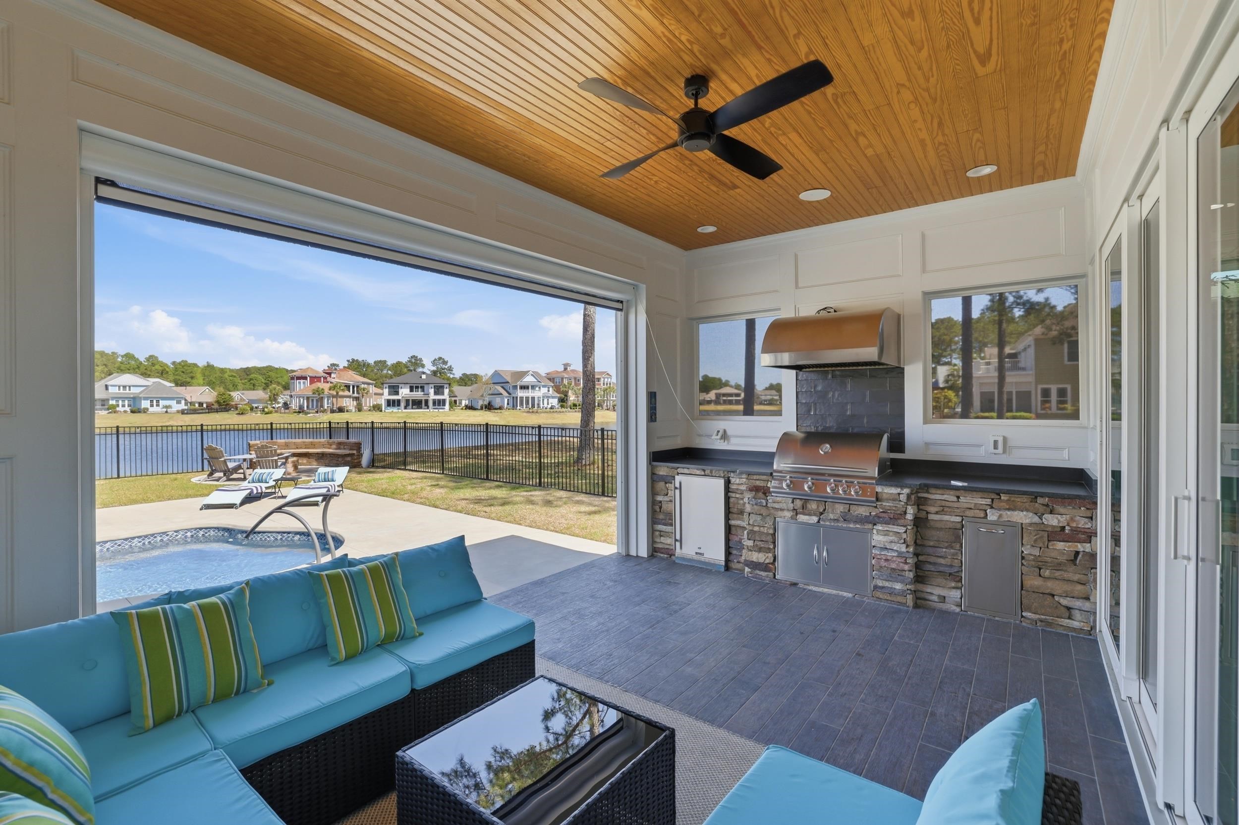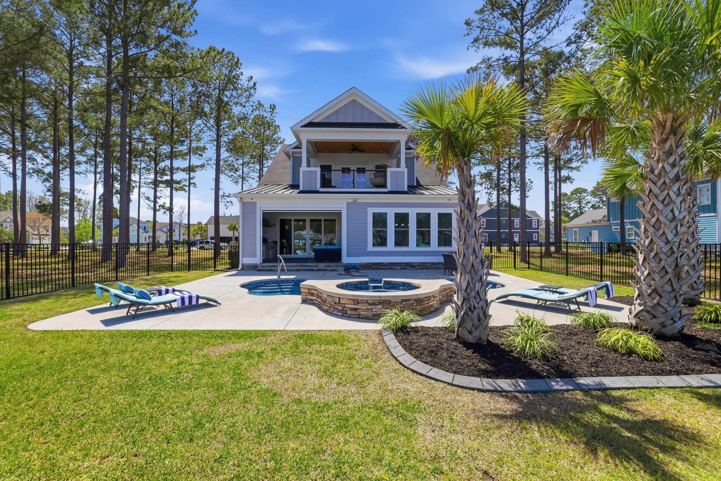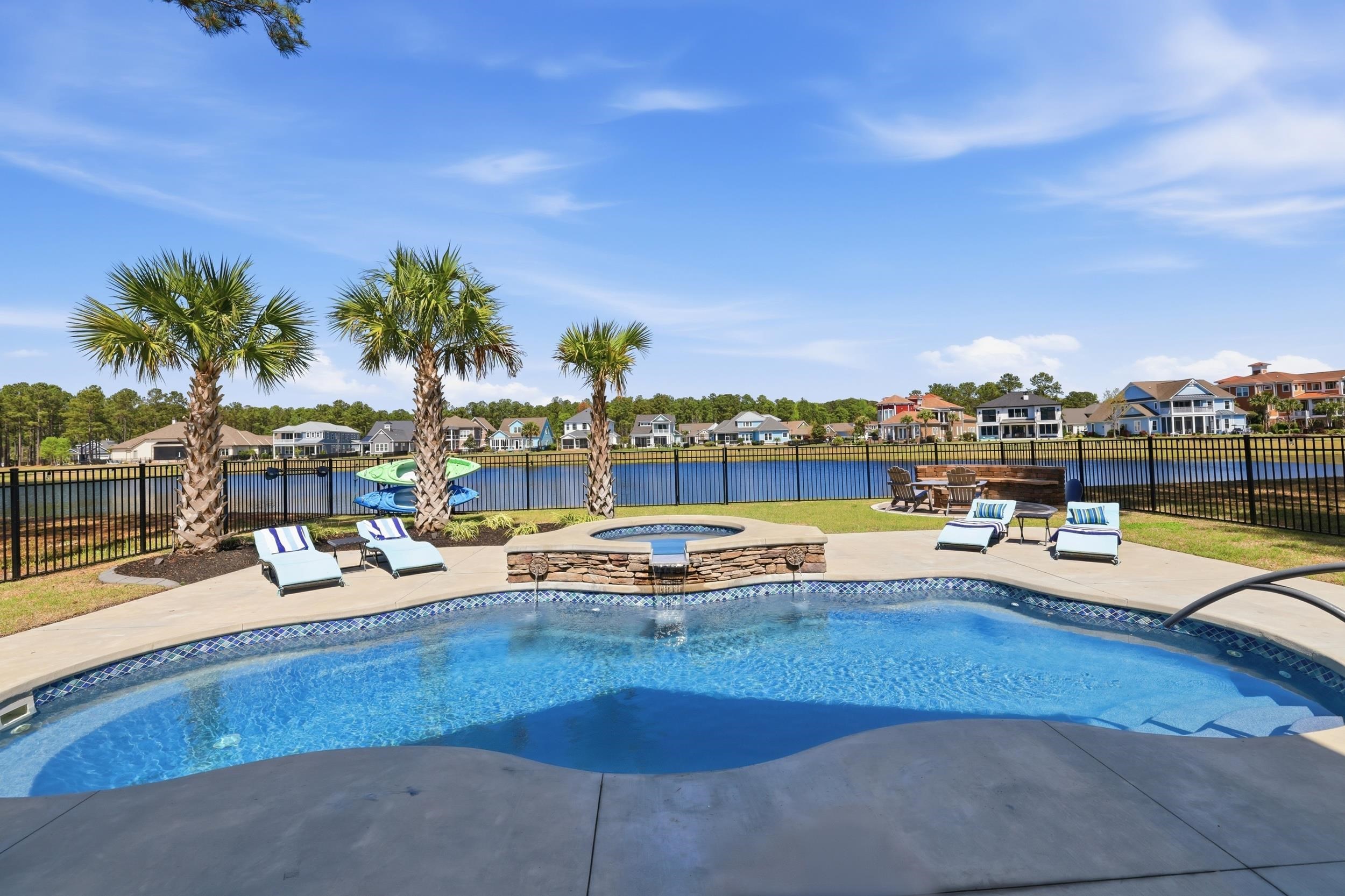 This thoughtfully designed custom home is located in the highly sought-after Waterbridge community. Built in 2022 and meticulously maintained, 1179 Fiddlehead Way offers an exceptional blend of elevated design, functional living, and resort-style private and community amenitiesall set against a serene lake backdrop. From the moment you enter, youre welcomed by a beautiful foyer featuring a barrel ceiling, setting the tone for the craftsmanship and attention to detail found throughout. Soft maple flooring flows seamlessly through the main living areas and into the primary suite, while matte black finishes, custom trim work, bullnose corners, and 8-foot doors throughout the home add a modern, sophisticated touch. Four designated bedrooms provide plenty of space for the whole family. Youll find a spacious primary suite on the main level, along with a secondary bedroom and full bathroomideal for guests or multi-generational living. The primary suite is a true retreat, offering a large custom closet thoughtfully designed with built-in storage and organization, along with a spa-like bathroom featuring a generous custom-tiled shower, double vanity, and private water closet. The heart of the home is designed for both everyday living and entertaining. The kitchen is anchored by a large L-shaped island, finished with durable honed granite, that comfortably seats four. Cook with ease on gas cooktop and enjoy ample prep space on the white quartz countertops along the perimeter. Under-cabinet lighting, a custom-stained wood hood, a large pantry, and ample cabinetry set the standard. Just off the kitchen, a bright dining area is filled with natural light and showcases beautiful lake views. Grab a drink from the adjacent wet bar and relax in the modern yet cozy living room, which features a stunning fireplace with a modern stone surround and custom black mantle, flanked by custom shelving and base cabinetry. Eight-foot sliding glass doors open seamlessly to an all-seasons roomperfect for enjoying indoor-outdoor living year-round. Upstairs, two additional bedrooms provide privacy and flexibility, complemented by a large bonus roomapproximately 350 square feetand an adjacent flex space perfect for a home office, gym, or media room. Down the hall, a spacious recreation room features yet another wet bar and a powder bath for guests. French doors lead to a covered balcony with modern cable railing, offering an additional outdoor entertaining space with stunning aerial views of the backyard retreat and tranquil lake. The home is equipped with a four-zone sound system spanning both levels and exterior spaces, as well as security cameras, adding both convenience and peace of mind. The outdoor space is nothing short of exceptional. A custom pool with a water featurecapable of both heating and coolingtakes center stage. Unwind in the hot tub, gather around the fire pit overlooking the lake, or entertain with ease in the outdoor grilling area complete with a retractable electric screen, creating the ultimate four-season experience. Custom outdoor lighting sets the mood for evening entertaining, and the home, pool, and hot tub lighting can all be programmed to change colors with the seasons. The pool can also be heated or cooled with ease from your phoneenjoy it year-round. Situated directly on the lake, this home offers true waterfront livinglaunch your kayak right from your backyard and enjoy peaceful mornings or sunset paddles on the water. The side-load, two-car garage is equally impressive, featuring epoxy flooring, a slat wall system, tower cabinetry, and storage racks designed with organization in minda neat freaks dream! Located within one of Myrtle Beachs premier gated communities, residents of Waterbridge enjoy resort-style amenities including the largest residential community pool in South Carolina, tennis courts, pickleball courts, bocce, and a community dock. This is a must-seeschedule your showing today!